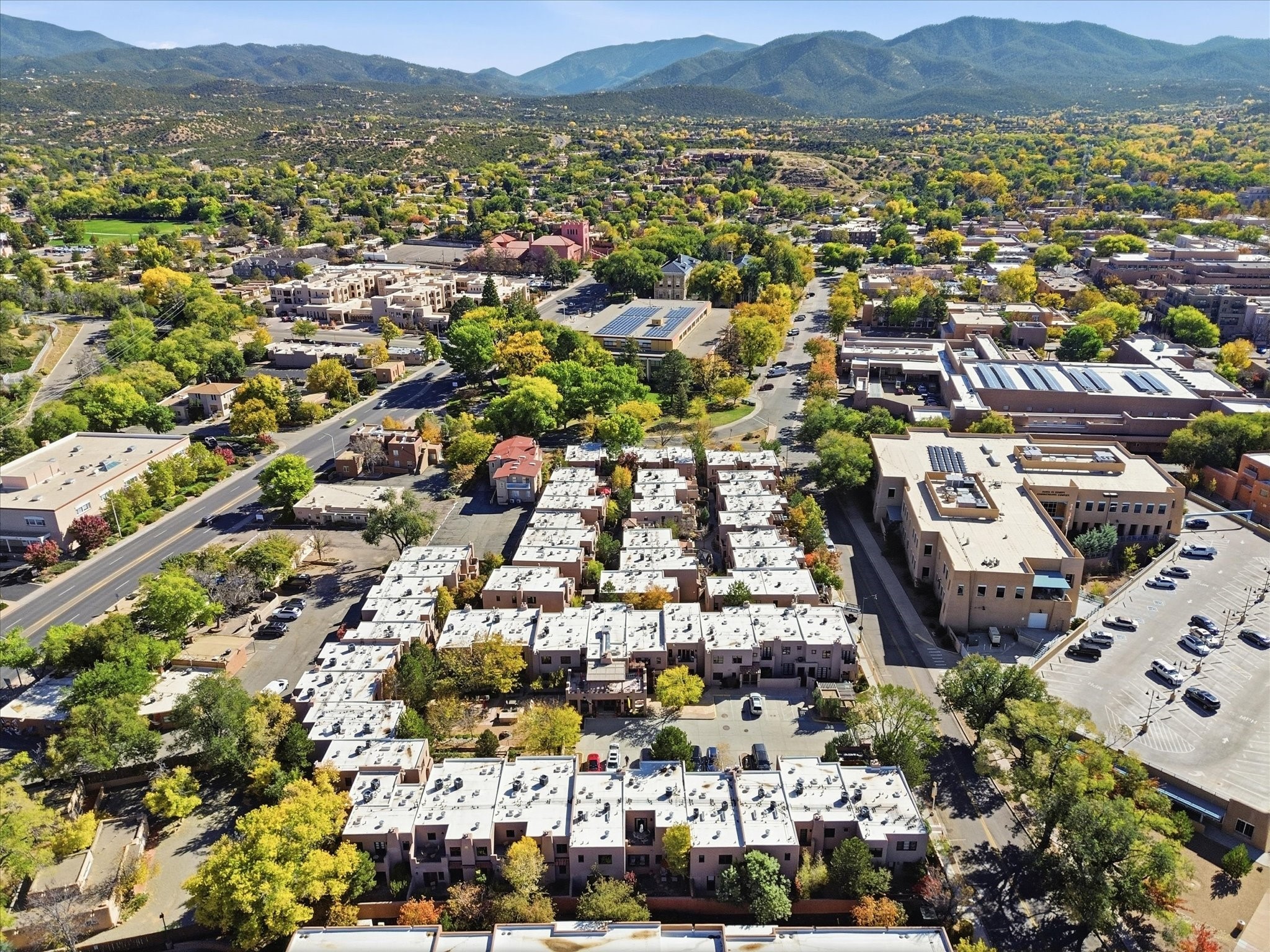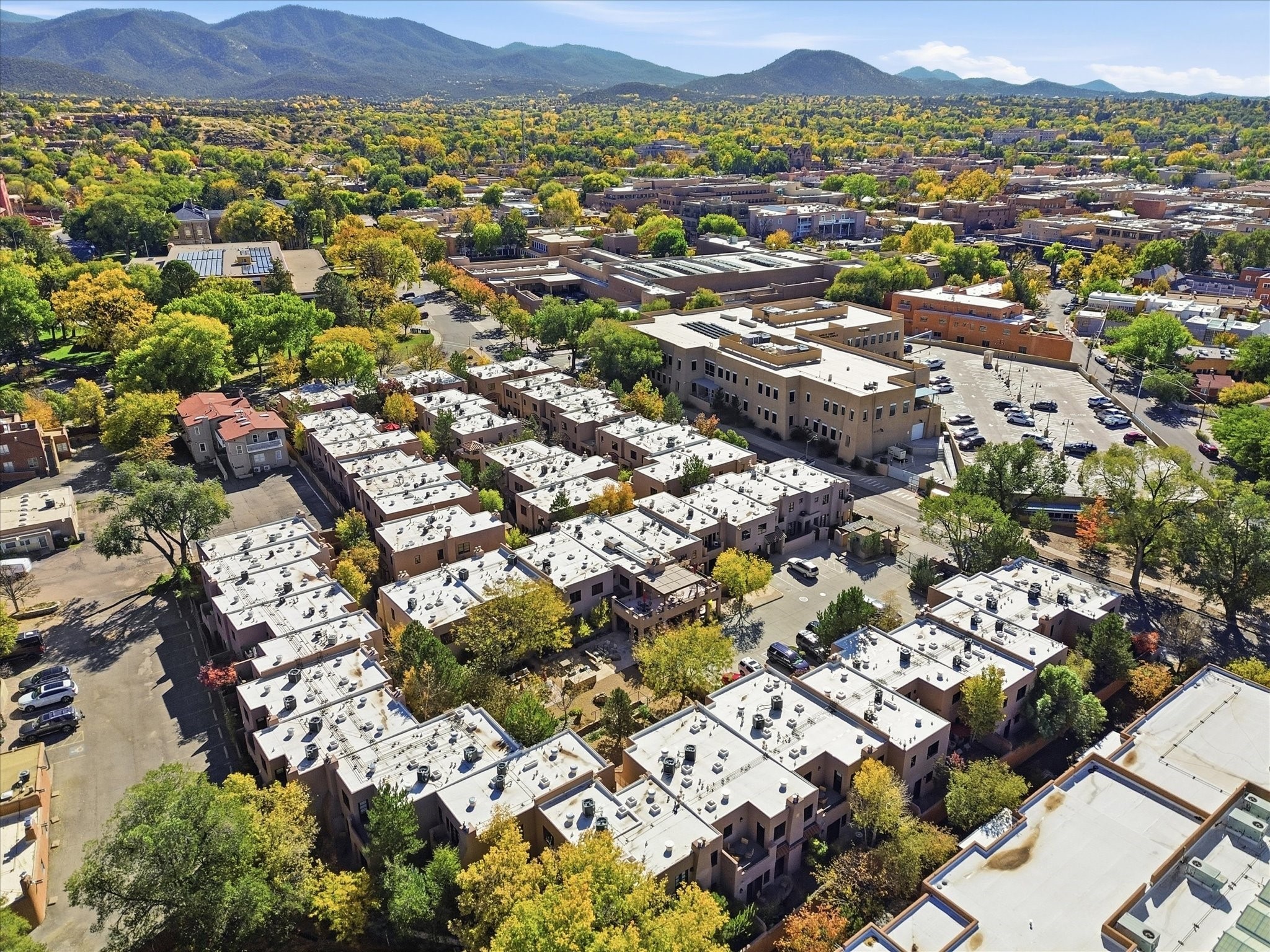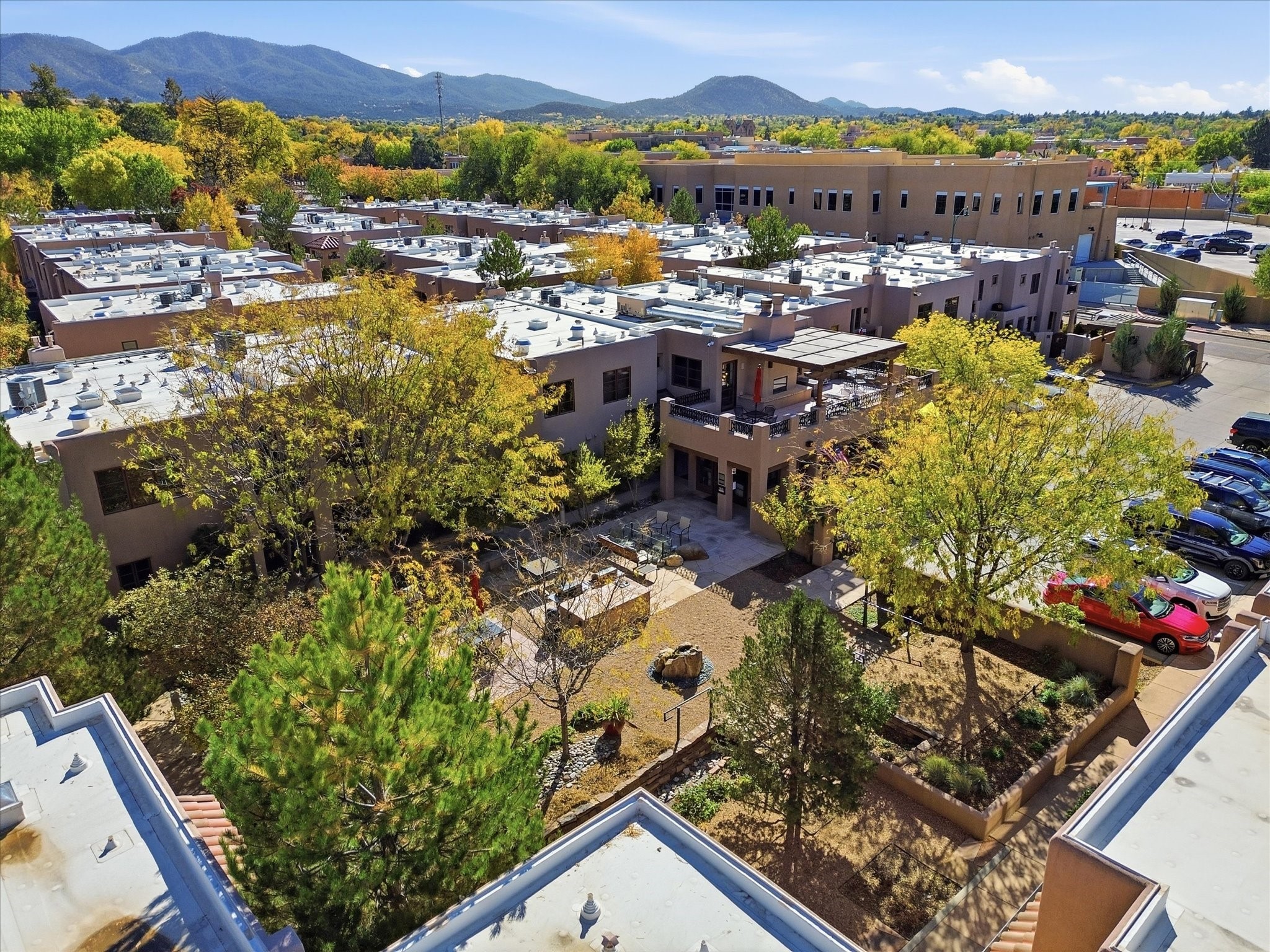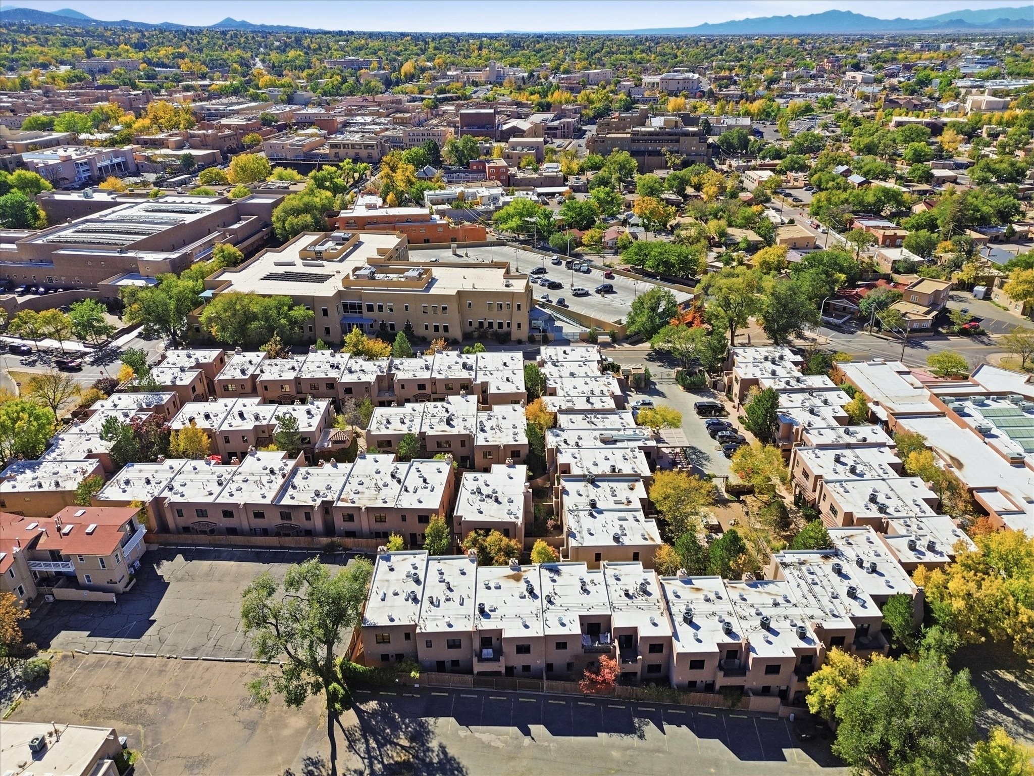 Welcome to El Corazn de Santa Fe, a gated community perfectly situated in downtown Santa Fe -- just minutes from the Plaza, local music, restaurants, and shopping. This two-bedroom, one-bath upper unit offers a seamless blend of style, comfort, and practicality for modern living. Step inside to an open concept living and dining area, perfect for relaxing or entertaining, with easy access to a private balcony where you can enjoy your morning coffee or Santa Fe sunsets. The kitchen is thoughtfully designed with ample built-in cabinets and appliances ready for daily use, plus a conveniently located laundry space for seamless movement. The unit features two bedrooms, including a primary bedroom with a built-in closet, and a remodeled full bathroom. The layout ensures comfort and privacy, while the second-story location provides quiet and scenic views from inside the unit. Residents of El Corazn enjoy an array of community amenities, including a rooftop open space at the clubhouse, a gym, and a barbecue area -- ideal for staying active, socializing, or simply relaxing outdoors.With downtown dining, shopping, and entertainment just moments away, this home perfectly balances city access with everyday comfort. Whether you're looking for a stylish downtown condo or a convenient retreat in Santa Fe, this unit is a must-see.