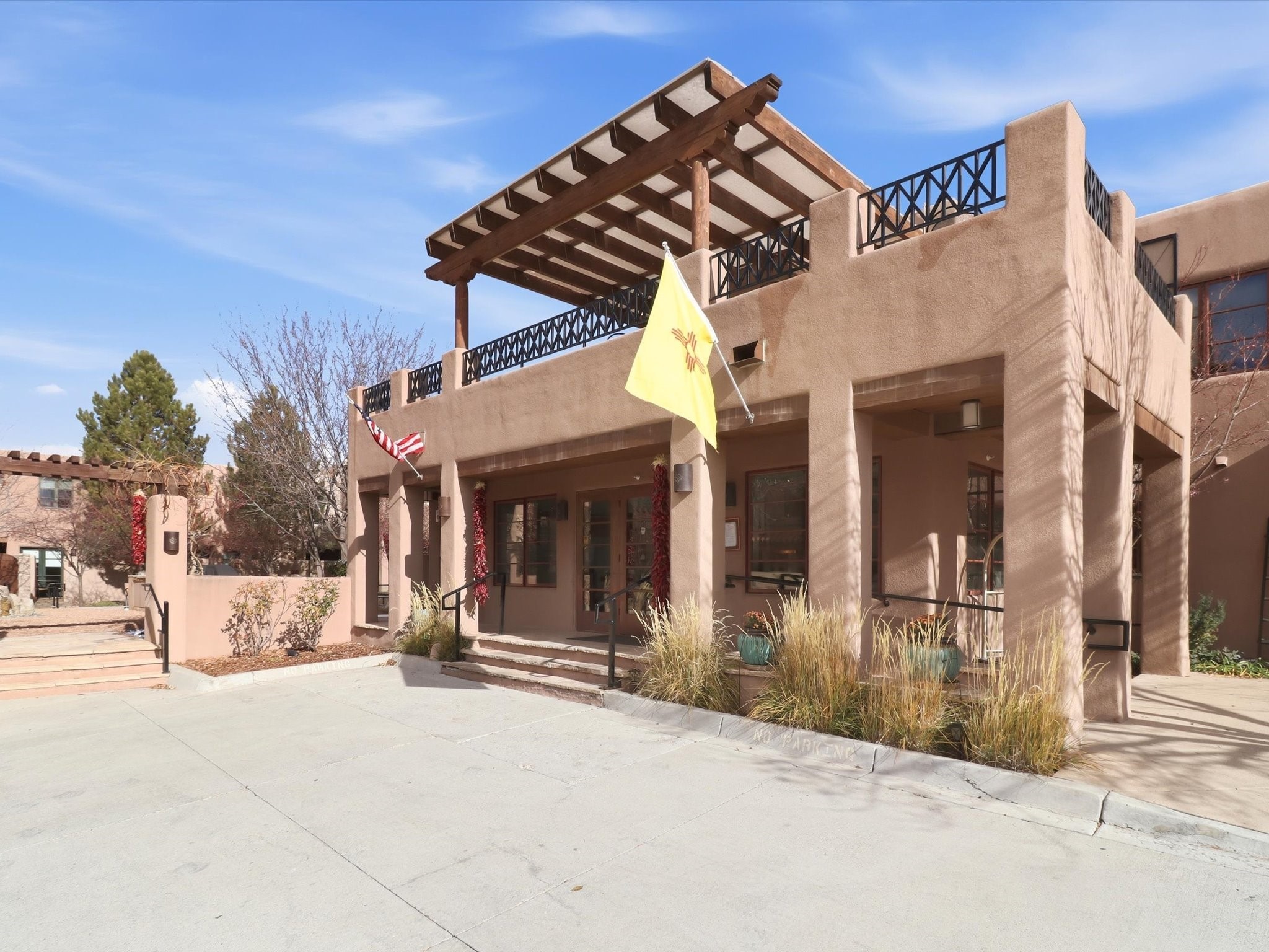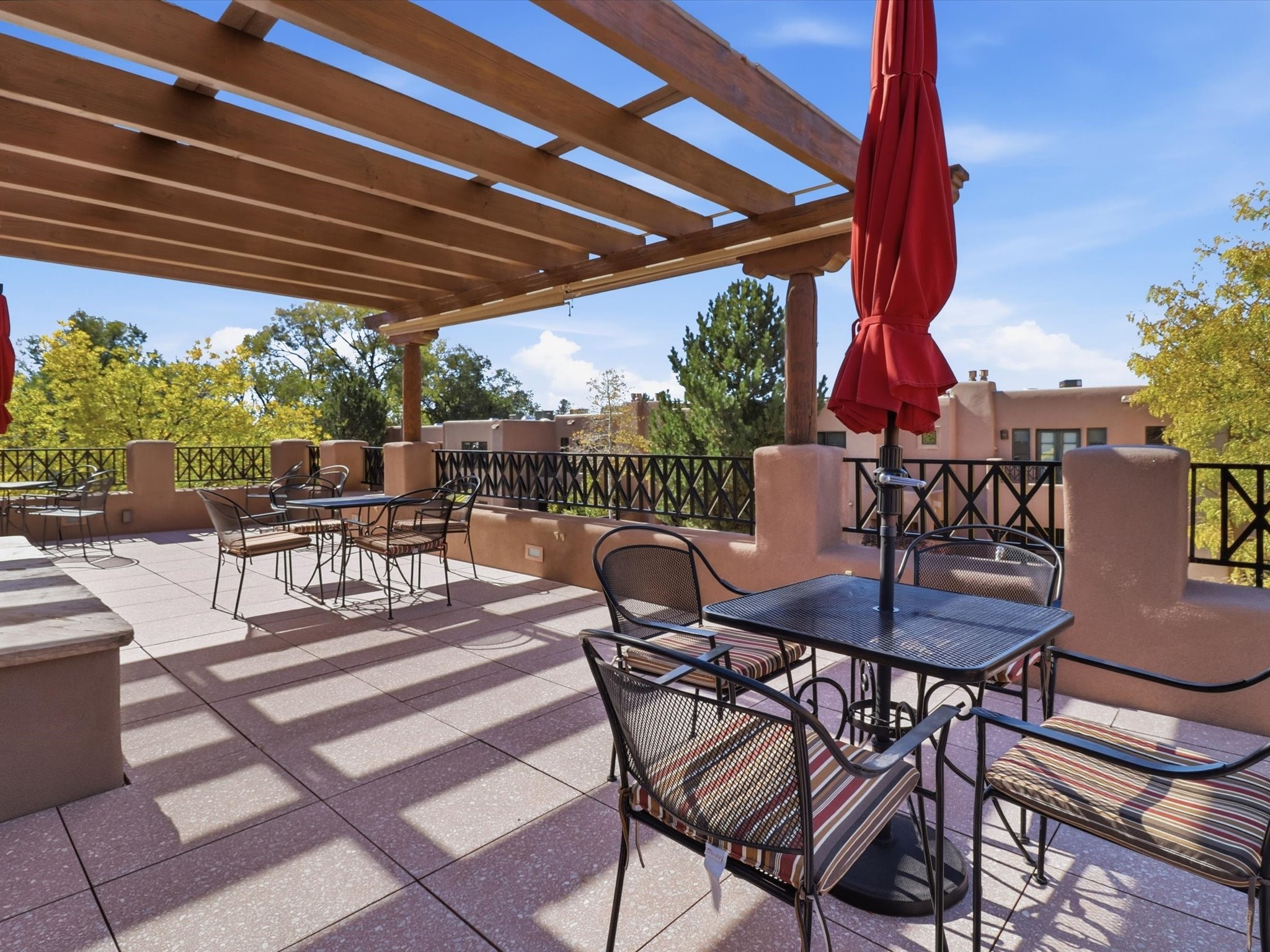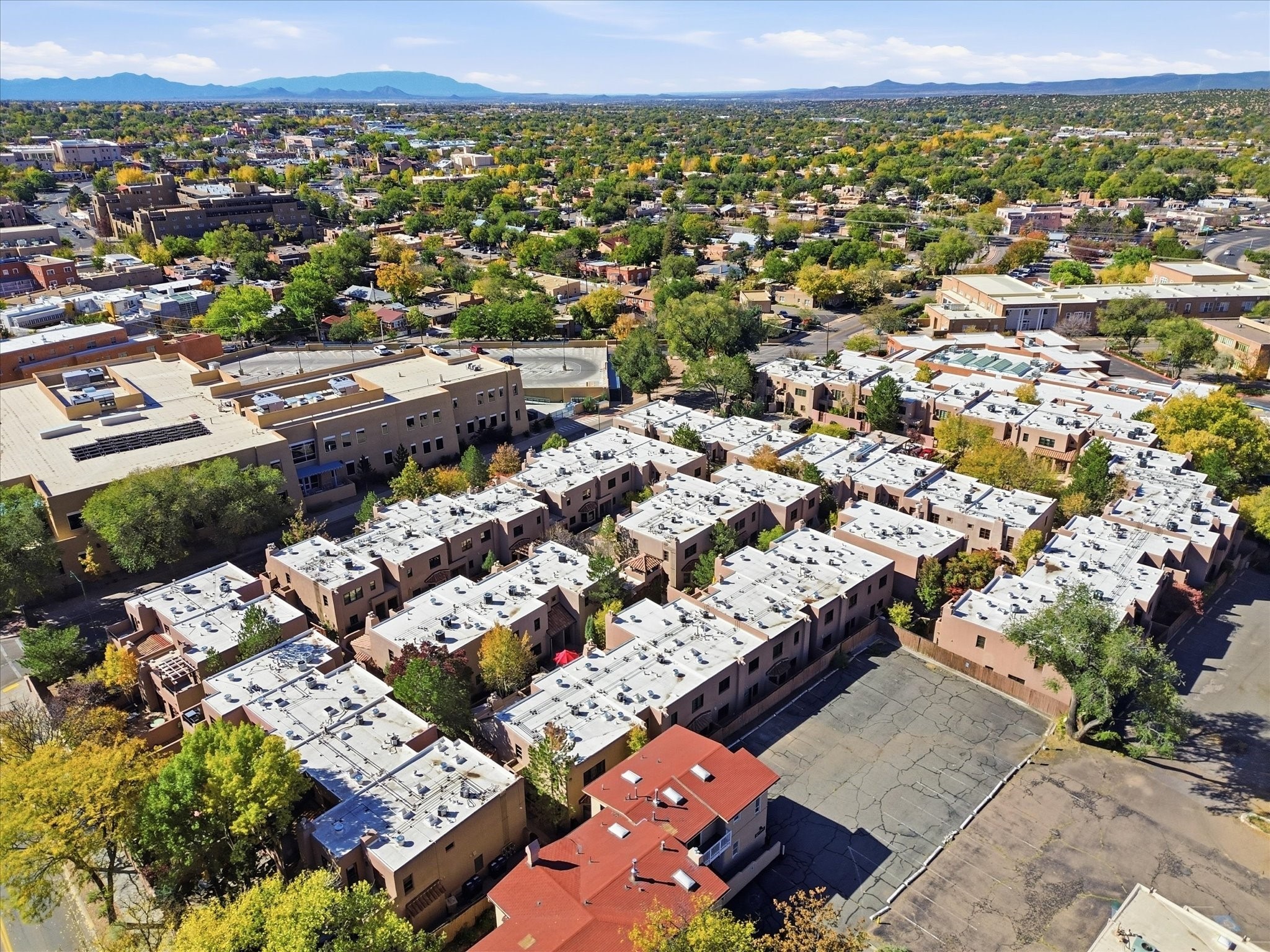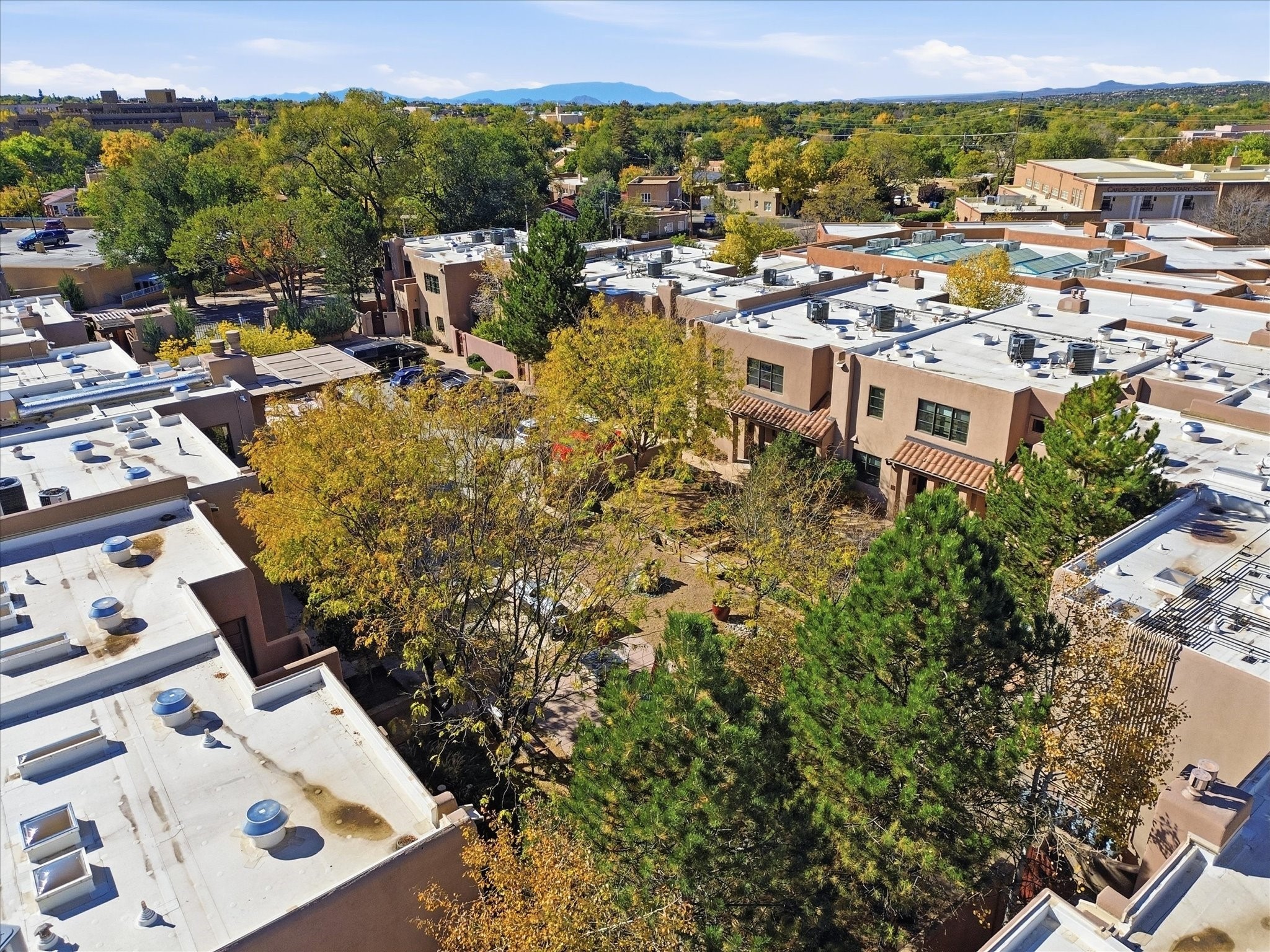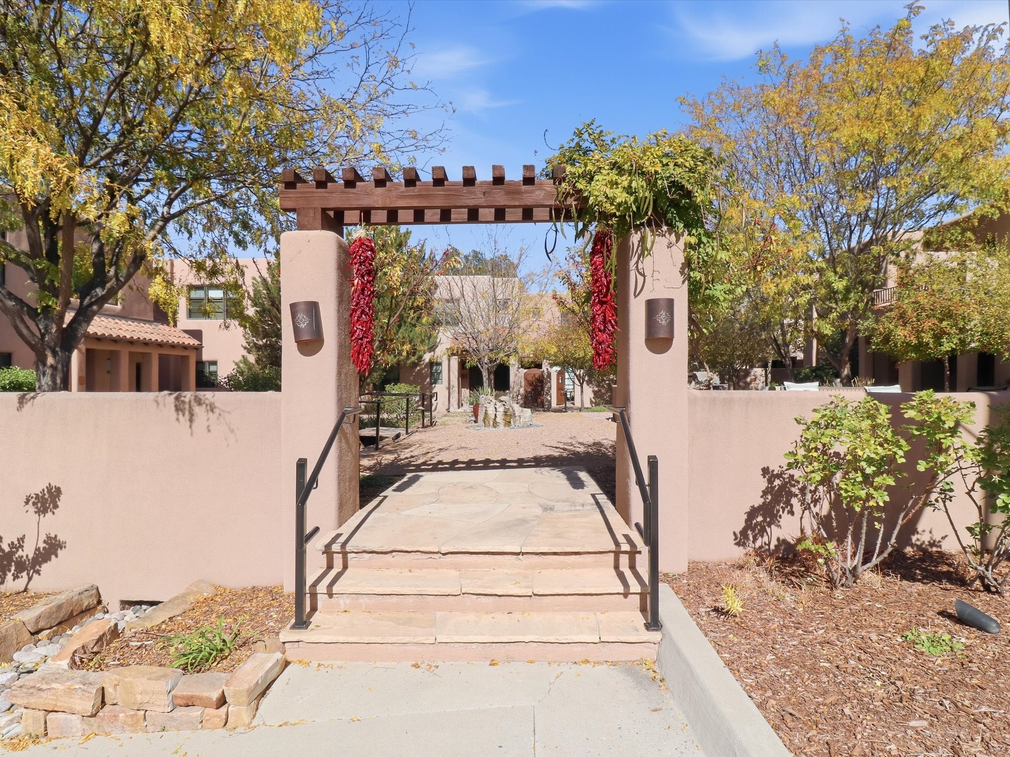 Welcome to El Corazn de Santa Fe, a gated community perfectly situated in downtown Santa Fe -- just minutes from the Plaza, local music, restaurants, and shopping. This two-bedroom, one-bath upper unit offers a seamless blend of style, comfort, and practicality for modern living. Step inside to an open concept living and dining area, perfect for relaxing or entertaining, with easy access to a private balcony where you can enjoy your morning coffee or Santa Fe sunsets. The kitchen is thoughtfully designed with ample built-in cabinets and appliances ready for daily use, plus a conveniently located laundry space for seamless movement. The unit features two bedrooms, including a primary bedroom with a built-in closet, and a remodeled full bathroom. The layout ensures comfort and privacy, while the second-story location provides quiet and scenic views from inside the unit. Residents of El Corazn enjoy an array of community amenities, including a rooftop open space at the clubhouse, a gym, and a barbecue area -- ideal for staying active, socializing, or simply relaxing outdoors.With downtown dining, shopping, and entertainment just moments away, this home perfectly balances city access with everyday comfort. Whether you're looking for a stylish downtown condo or a convenient retreat in Santa Fe, this unit is a must-see.