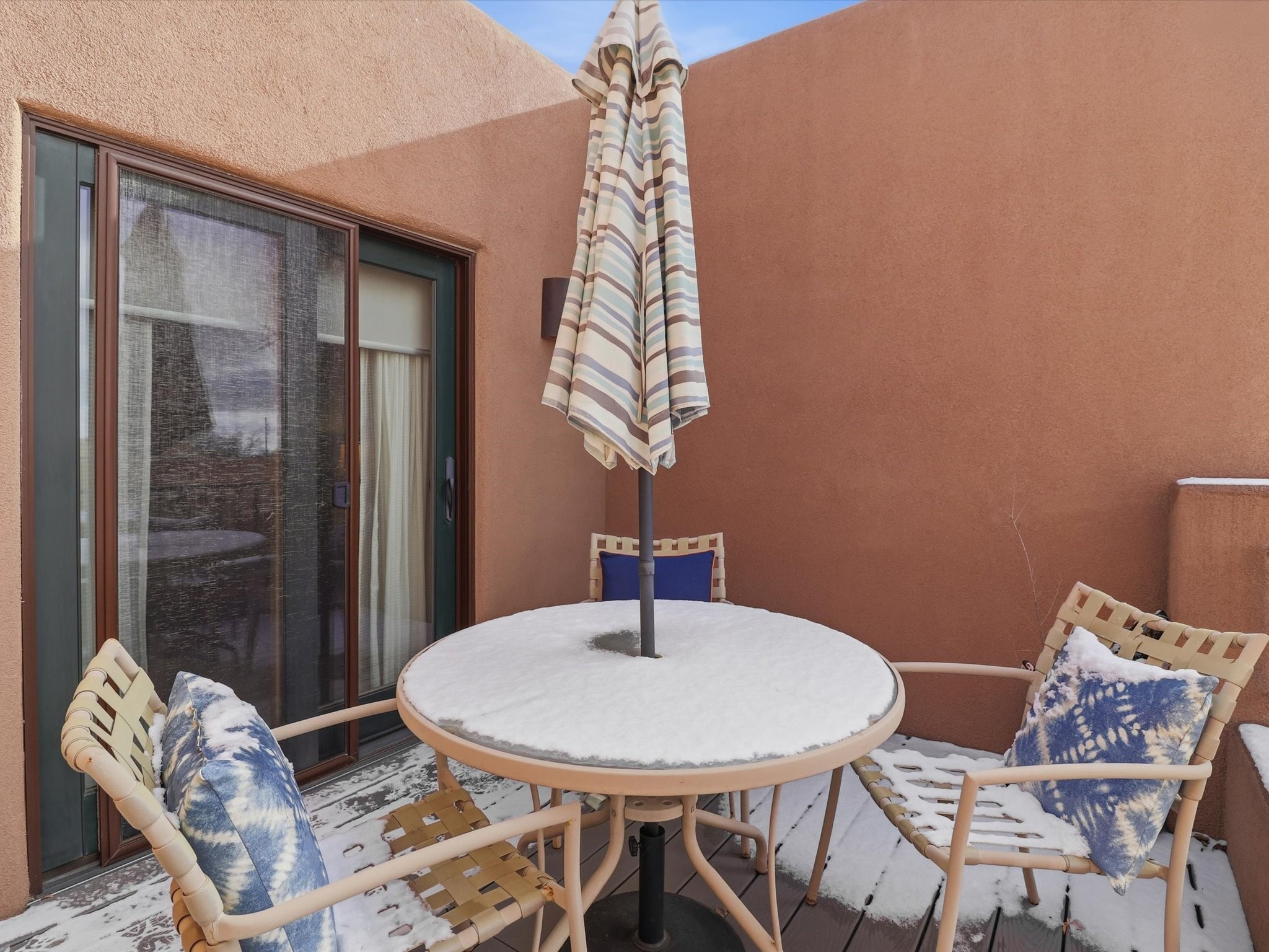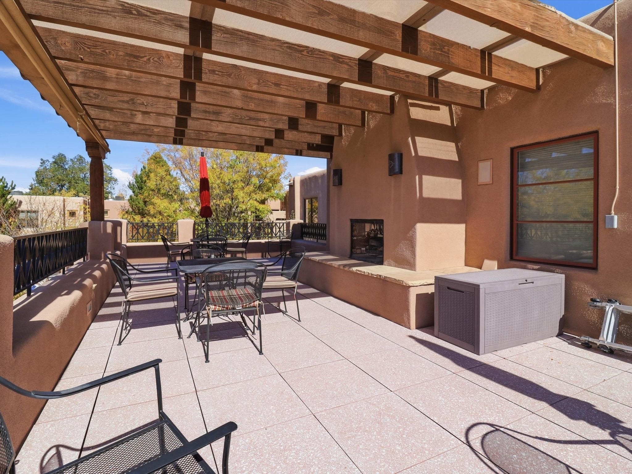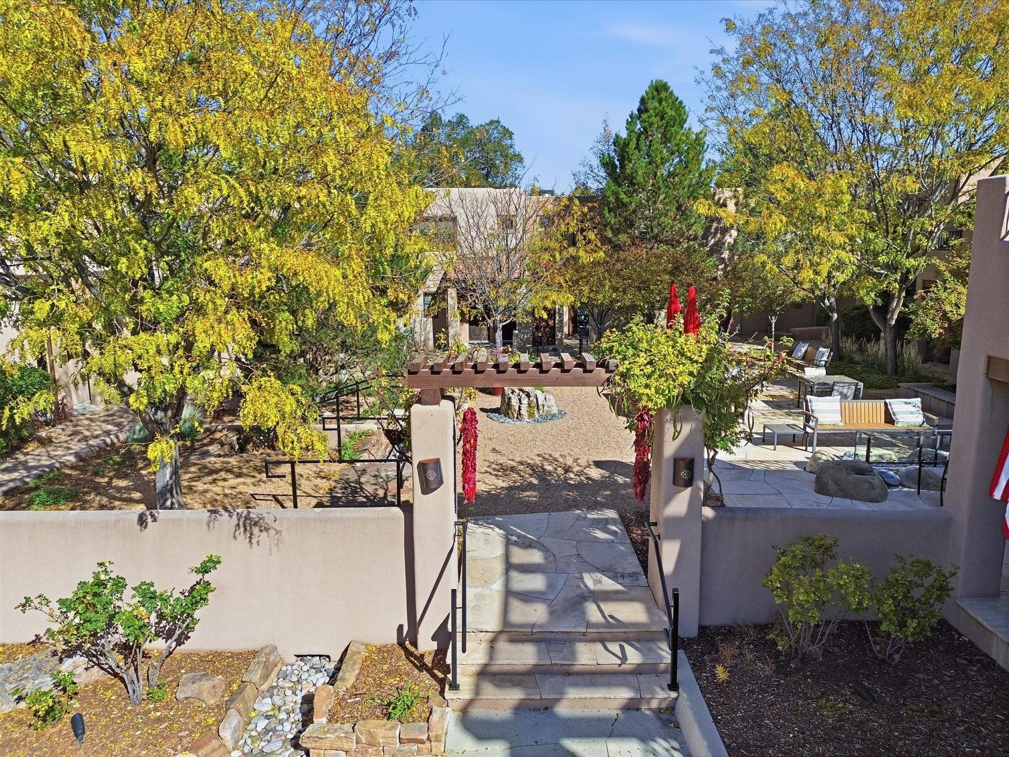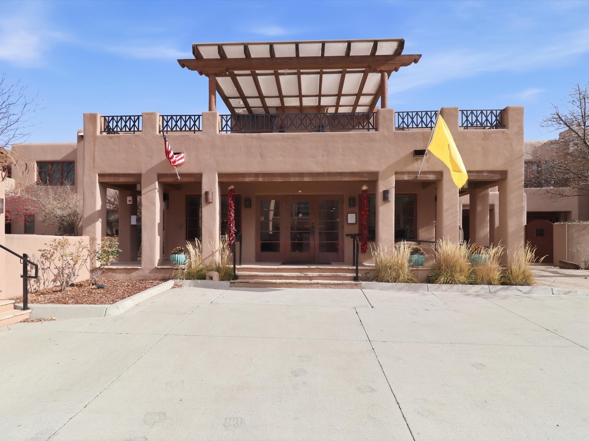 Welcome to El Corazn de Santa Fe, a gated community perfectly situated in downtown Santa Fe -- just minutes from the Plaza, local music, restaurants, and shopping. This two-bedroom, one-bath upper unit offers a seamless blend of style, comfort, and practicality for modern living. Step inside to an open concept living and dining area, perfect for relaxing or entertaining, with easy access to a private balcony where you can enjoy your morning coffee or Santa Fe sunsets. The kitchen is thoughtfully designed with ample built-in cabinets and appliances ready for daily use, plus a conveniently located laundry space for seamless movement. The unit features two bedrooms, including a primary bedroom with a built-in closet, and a remodeled full bathroom. The layout ensures comfort and privacy, while the second-story location provides quiet and scenic views from inside the unit. Residents of El Corazn enjoy an array of community amenities, including a rooftop open space at the clubhouse, a gym, and a barbecue area -- ideal for staying active, socializing, or simply relaxing outdoors.With downtown dining, shopping, and entertainment just moments away, this home perfectly balances city access with everyday comfort. Whether you're looking for a stylish downtown condo or a convenient retreat in Santa Fe, this unit is a must-see.