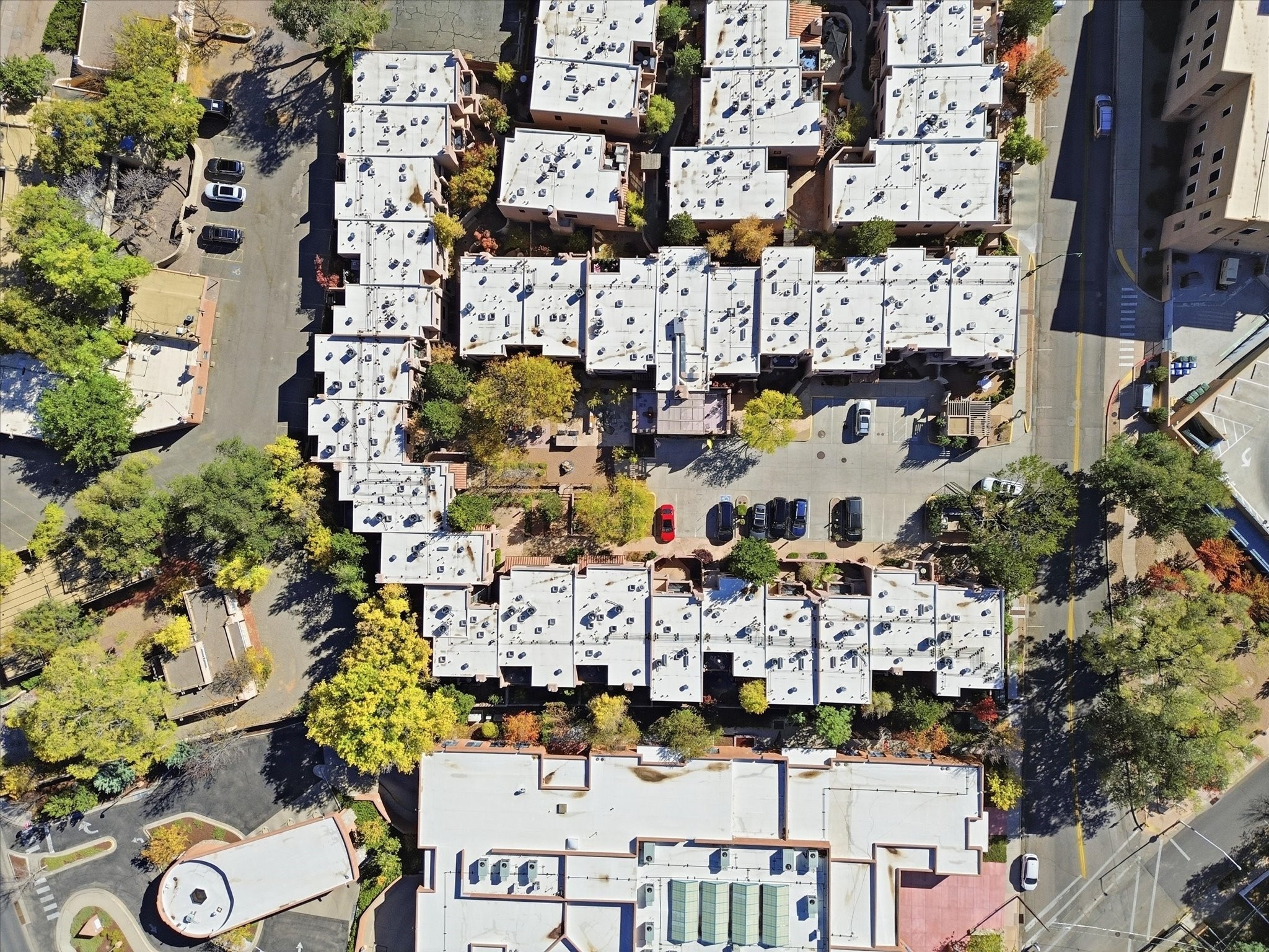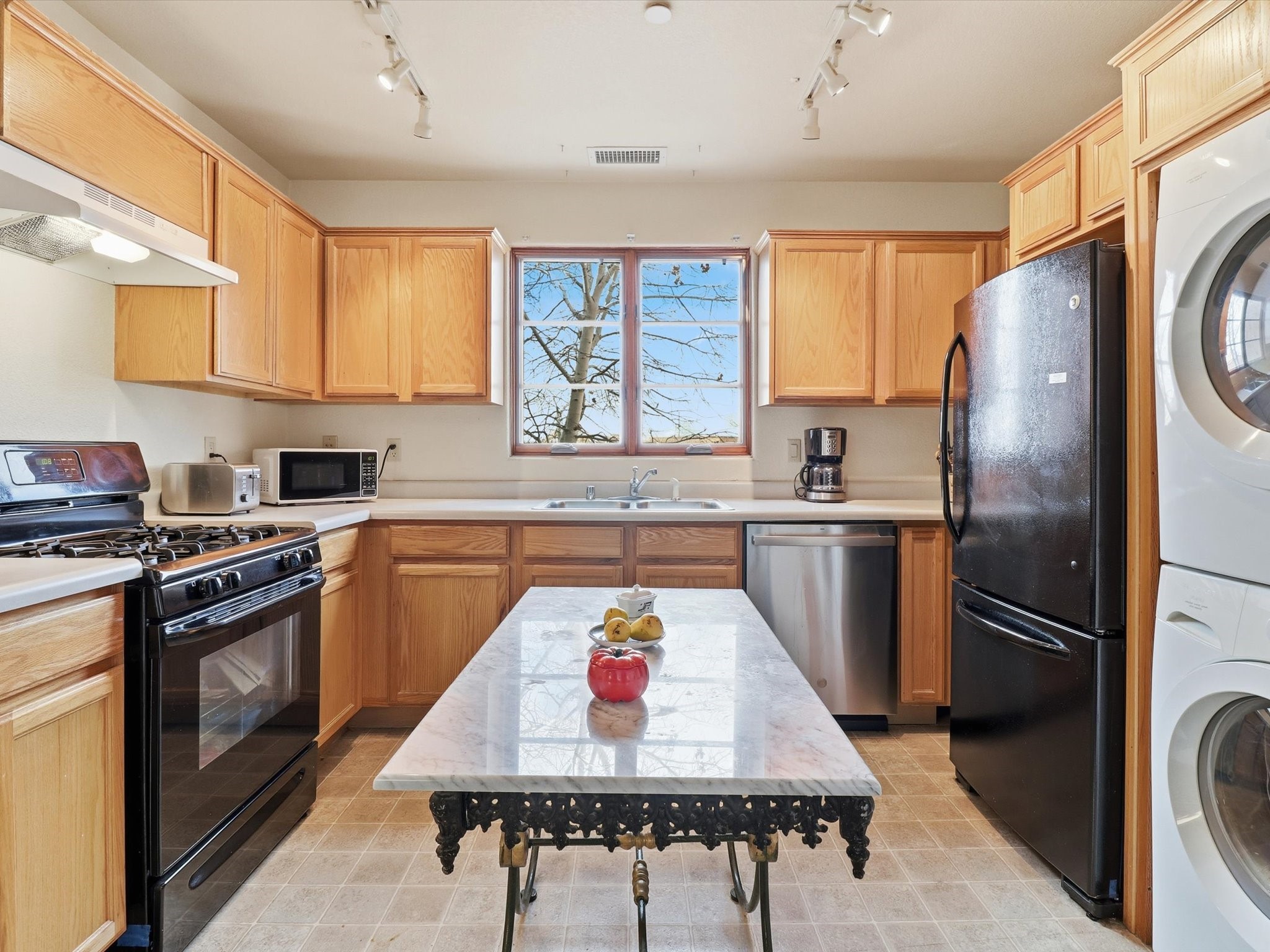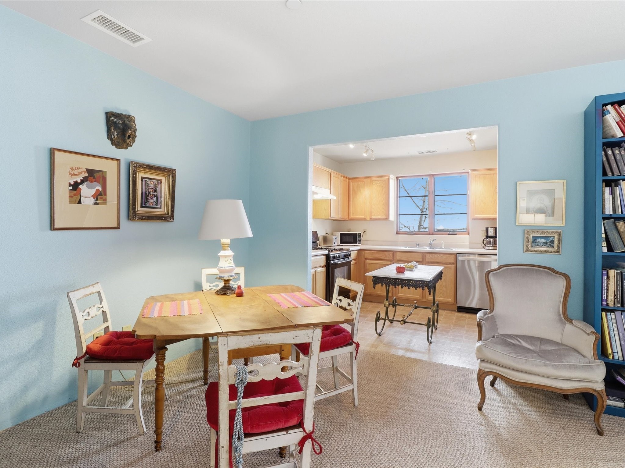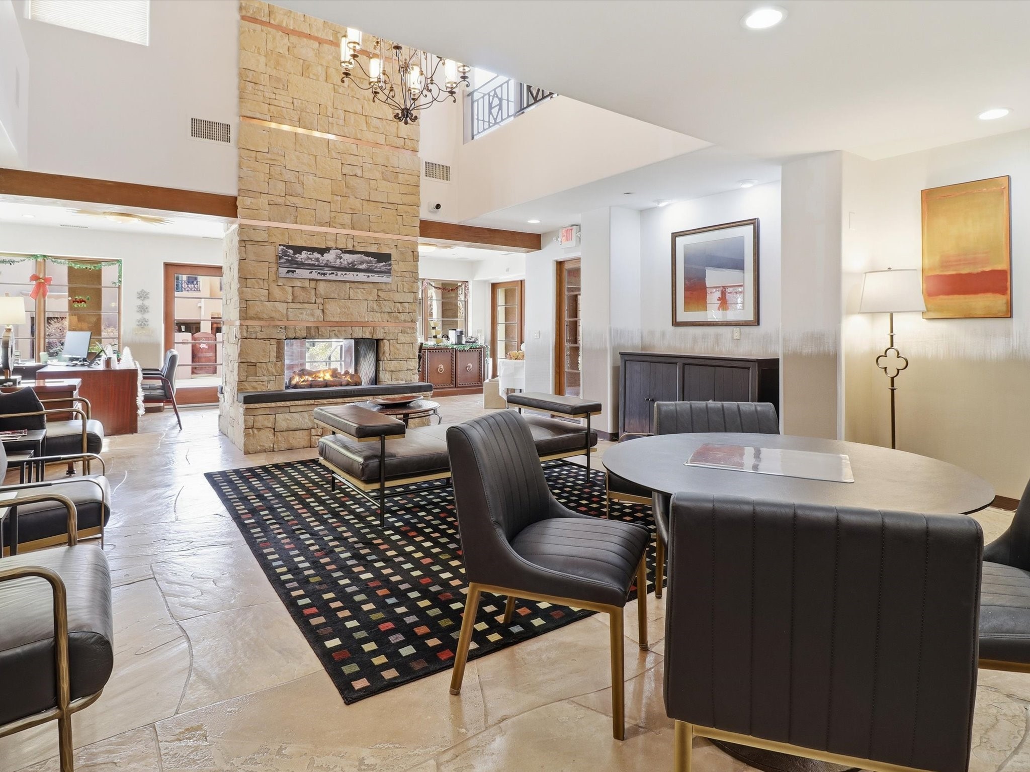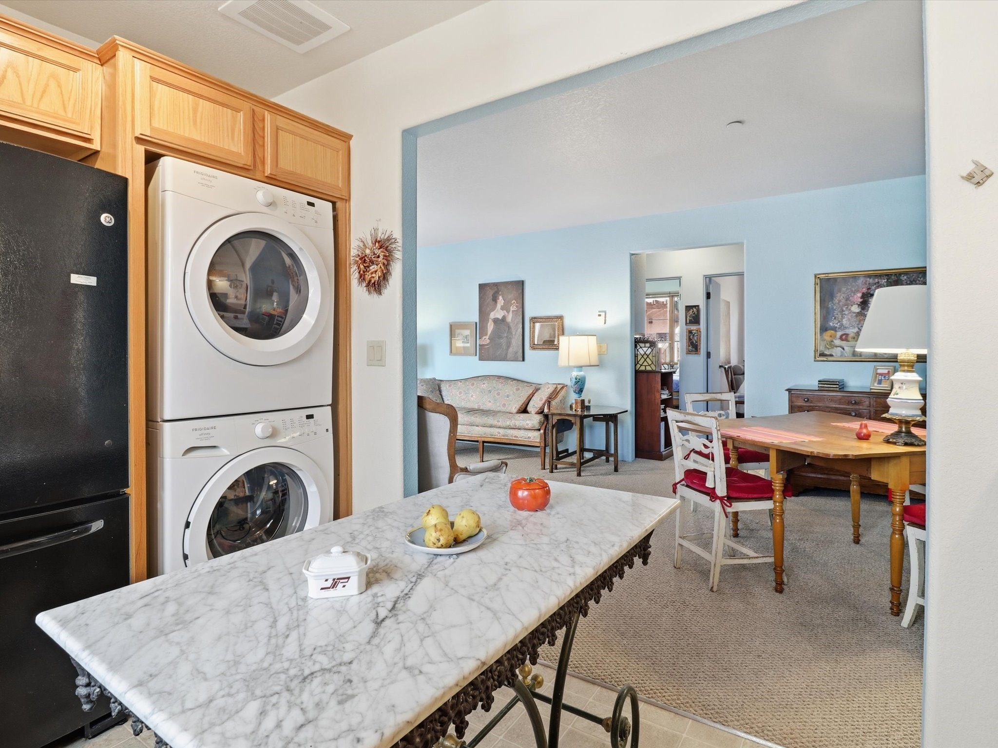 Welcome to El Corazn de Santa Fe, a gated community perfectly situated in downtown Santa Fe -- just minutes from the Plaza, local music, restaurants, and shopping. This two-bedroom, one-bath upper unit offers a seamless blend of style, comfort, and practicality for modern living. Step inside to an open concept living and dining area, perfect for relaxing or entertaining, with easy access to a private balcony where you can enjoy your morning coffee or Santa Fe sunsets. The kitchen is thoughtfully designed with ample built-in cabinets and appliances ready for daily use, plus a conveniently located laundry space for seamless movement. The unit features two bedrooms, including a primary bedroom with a built-in closet, and a remodeled full bathroom. The layout ensures comfort and privacy, while the second-story location provides quiet and scenic views from inside the unit. Residents of El Corazn enjoy an array of community amenities, including a rooftop open space at the clubhouse, a gym, and a barbecue area -- ideal for staying active, socializing, or simply relaxing outdoors.With downtown dining, shopping, and entertainment just moments away, this home perfectly balances city access with everyday comfort. Whether you're looking for a stylish downtown condo or a convenient retreat in Santa Fe, this unit is a must-see.