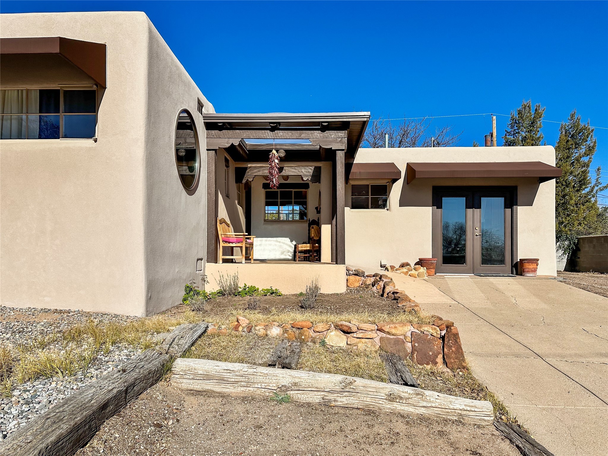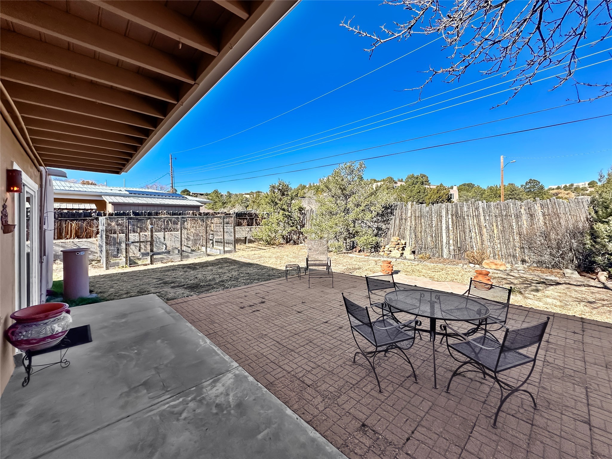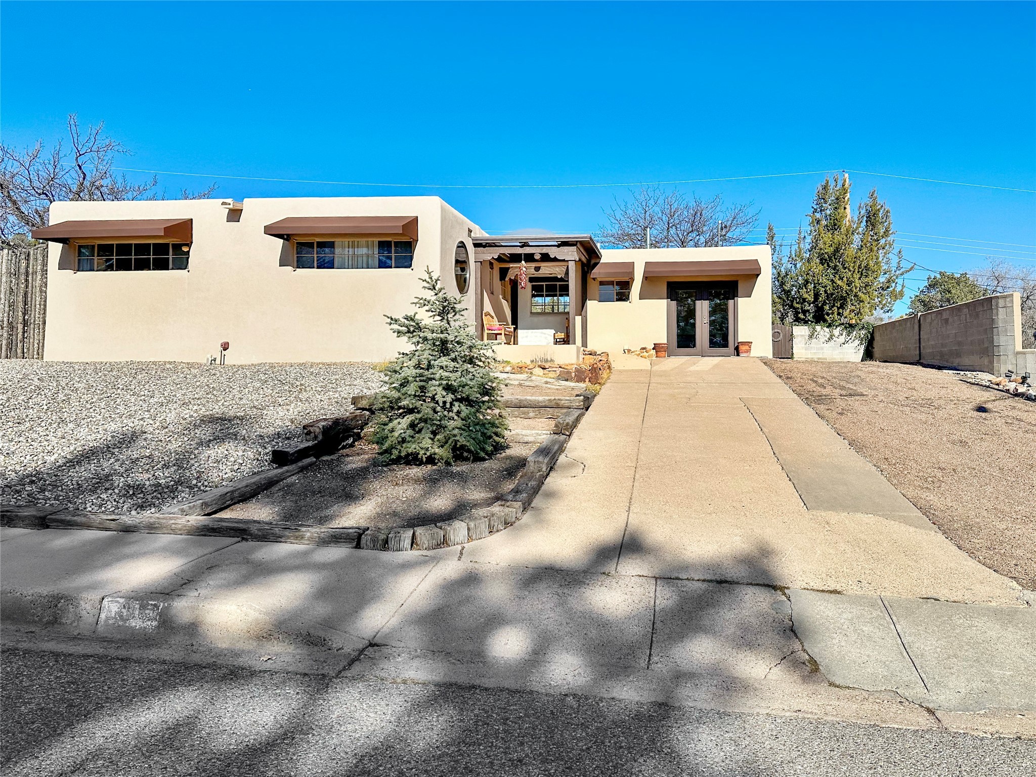 The best location in Casa Solana. Up on the hill overlooking the city with mountain views, this updated Stamm home has it all. An easy walk to the dog park and the community pool. Neighborhood shopping and restaurants, 1.5 miles from the Santa Fe Plaza. Three bedrooms, three baths, plus a bonus studio/office, or bedroom with an exterior entrance. Fantastic updates include a modern country kitchen with stainless steel appliances and a Wolf range. Beautifully finished light oak flooring, a two-sided fireplace. Walled backyard with a protected garden area, a large patio with mountain views. New Brai roof (2021 - 8-year warranty, includes annual inspections). On-demand hot water (2024). Ducted evaporative cooler. Mini split (heat/cool) in the studio. Reverse osmosis filtration in the kitchen. Countless updates and wonderful maintenance. Priced to sell. Schedule a showing today.