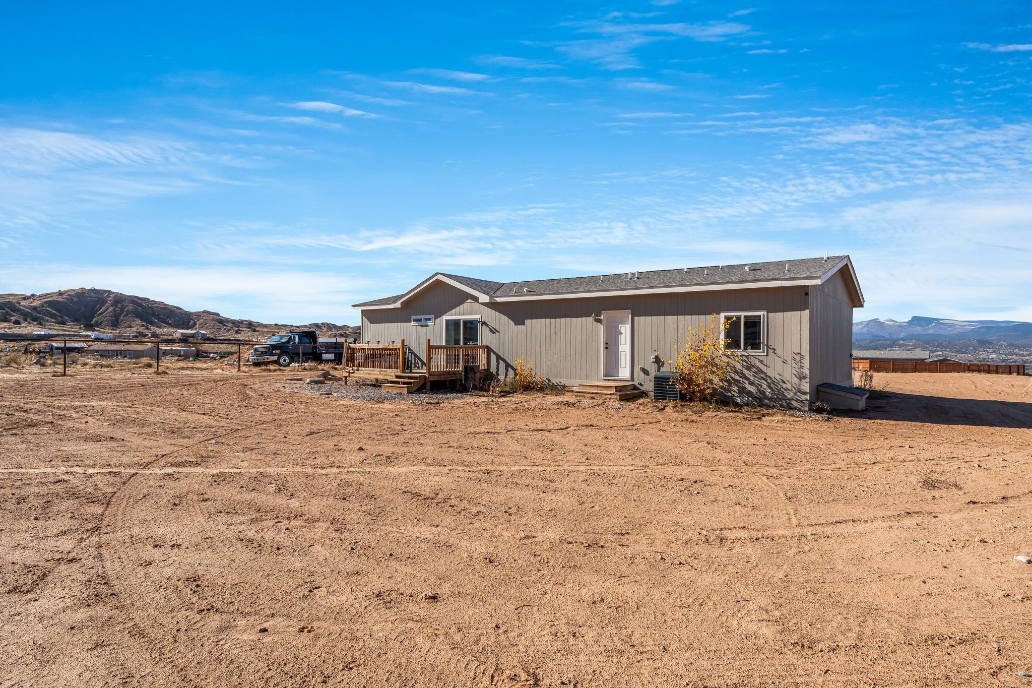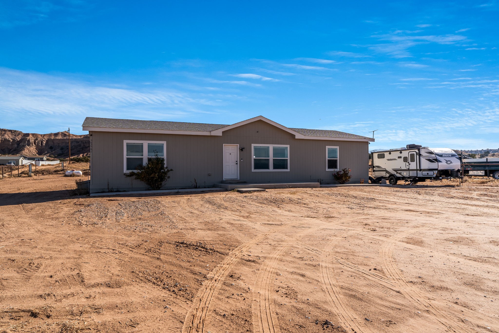 Enjoy wide open views of the Espaola Valley from this elevated .93-acre property. This 2020 modular home offers a comfortable layout with an open living, dining, and kitchen area designed for everyday living and entertaining. The kitchen features abundant cabinet space, an oversized pantry, and like-new appliances. A separate utility room provides additional storage and access to the backyard.The primary suite includes a walk-in closet and full bath with double sinks and a large soaking tub. Two additional bedrooms are located on the opposite side of the home for added privacy, each with its own walk-in closet. Refrigerated air keeps the home cool in the summer, and crown molding, recessed lighting, and modern finishes add a polished touch.The fully fenced property includes a metal pipe fence surrounding the entire lot and offers both sunrise and sunset views, along with nearby access to local trails. Convenient commute to Los Alamos and serviced by Santa Fe County water.