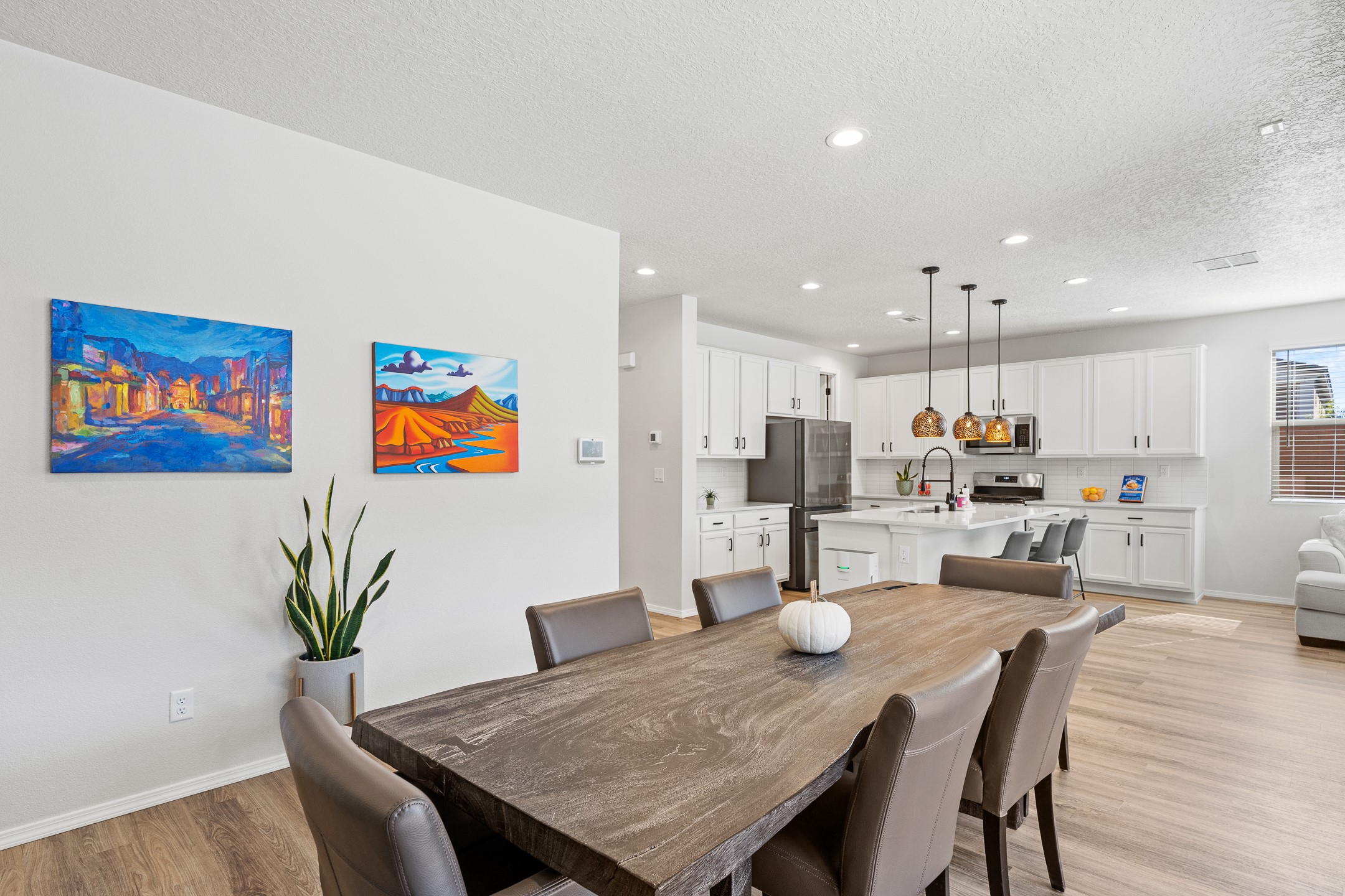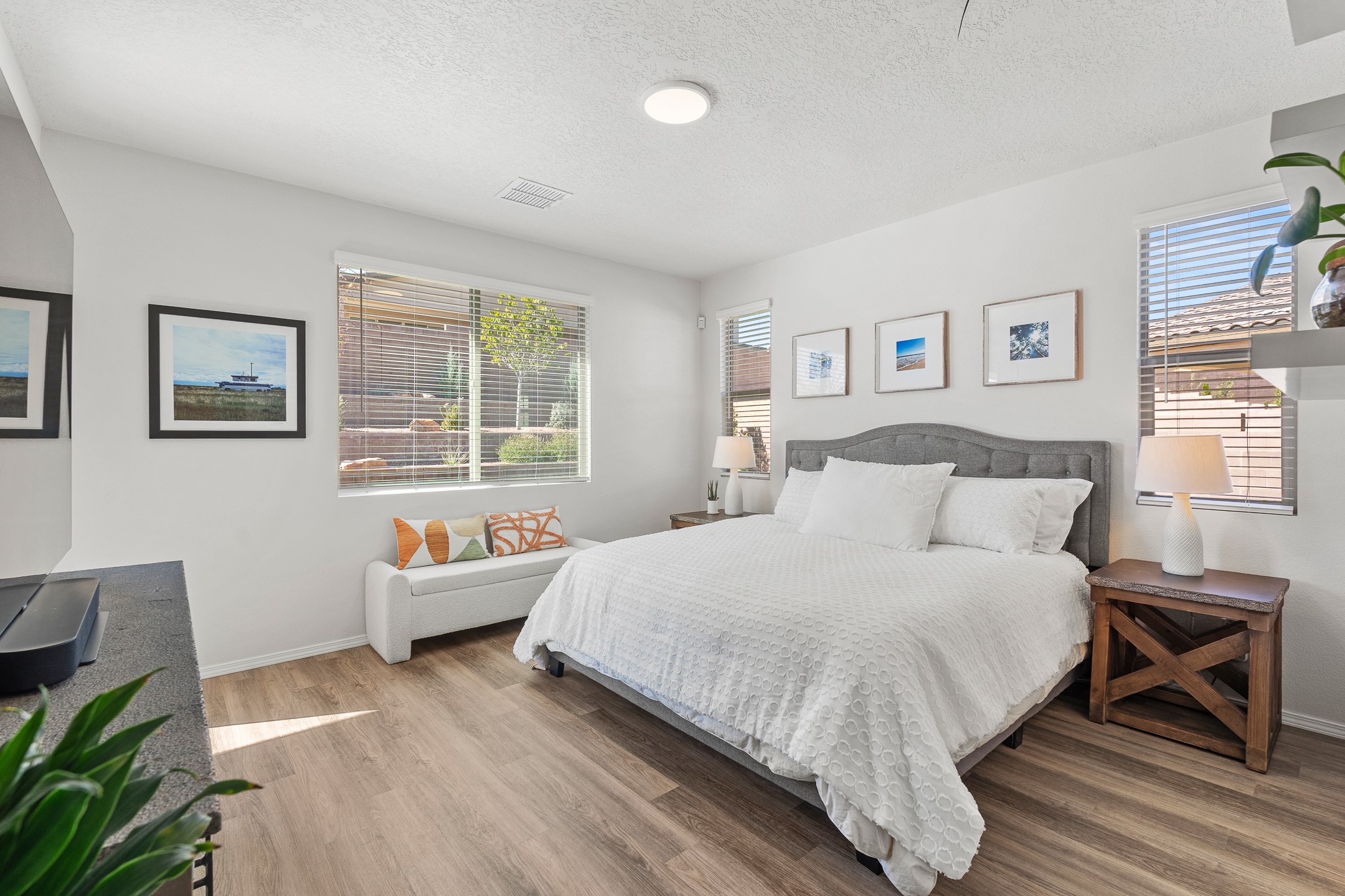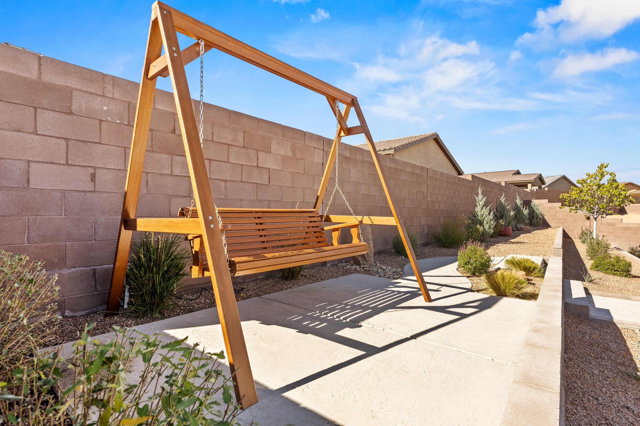 This better than new Copper plan includes an open floor plan with many owner upgrades. 3 Beds plus an office, walk-in pantry and a center island, open dining area and a generous great room. A covered patio for entertaining or just relaxing outside. The private owner's suite with large walk in closet and access to the back patio. You'll have no shortage of space for parking and storing your vehicles with a 2-car garage and an oversized RV garage. $35k upgraded large corner lot fully landscaped, hot tub, heated and cooled garage with Epoxy flooring, upgraded refrigerator, all window coverings. Across from neighborhood park. A master-planned community, indoor and outdoor pools, fitness center, parks, 2,200 acre preserve with hike/bike trails and mountain Views.