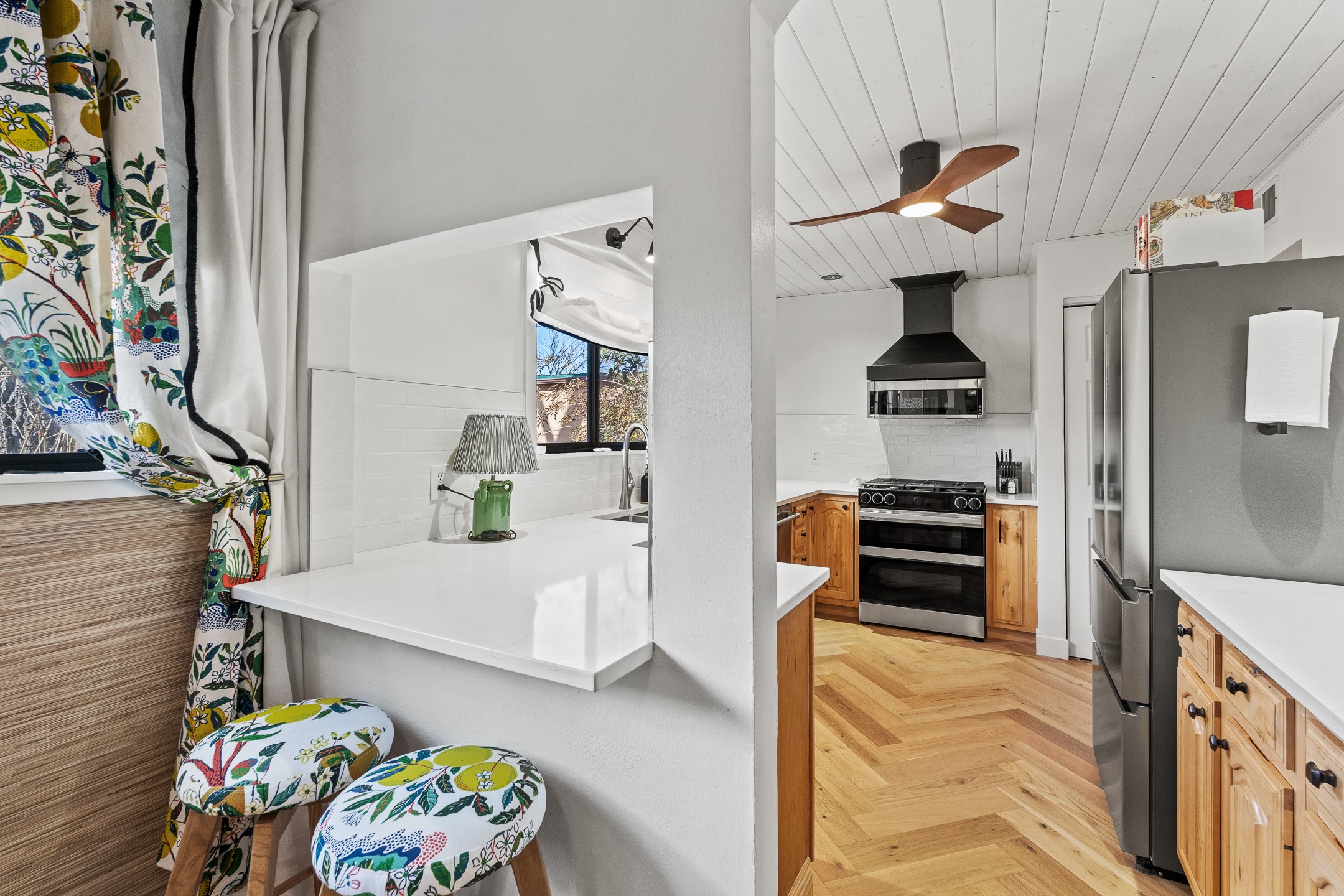 Completely remodeled and stylishly true to its mid-century roots, this three bedroom one bath house in Barrio La Canada with an attached one bed one bath is sure to wow. So much in this house has been improved or upgraded, there's nothing left to do but enjoy. The long list of upgrades includes but is not limited to new HVAC, appliances, kitchen counter tops, doors, flooring, walls and ceilings, as well as a new electrical panel and a roof sealing. The attached casita has its own entrance and yard and is just as charming as the primary. A shed in the back provides extra storage. Two miles from the plaza and short walk from the Santa Fe River, this move in ready home is convenient to everything. Priced at stated value from a recent (November 2025) appraisal.