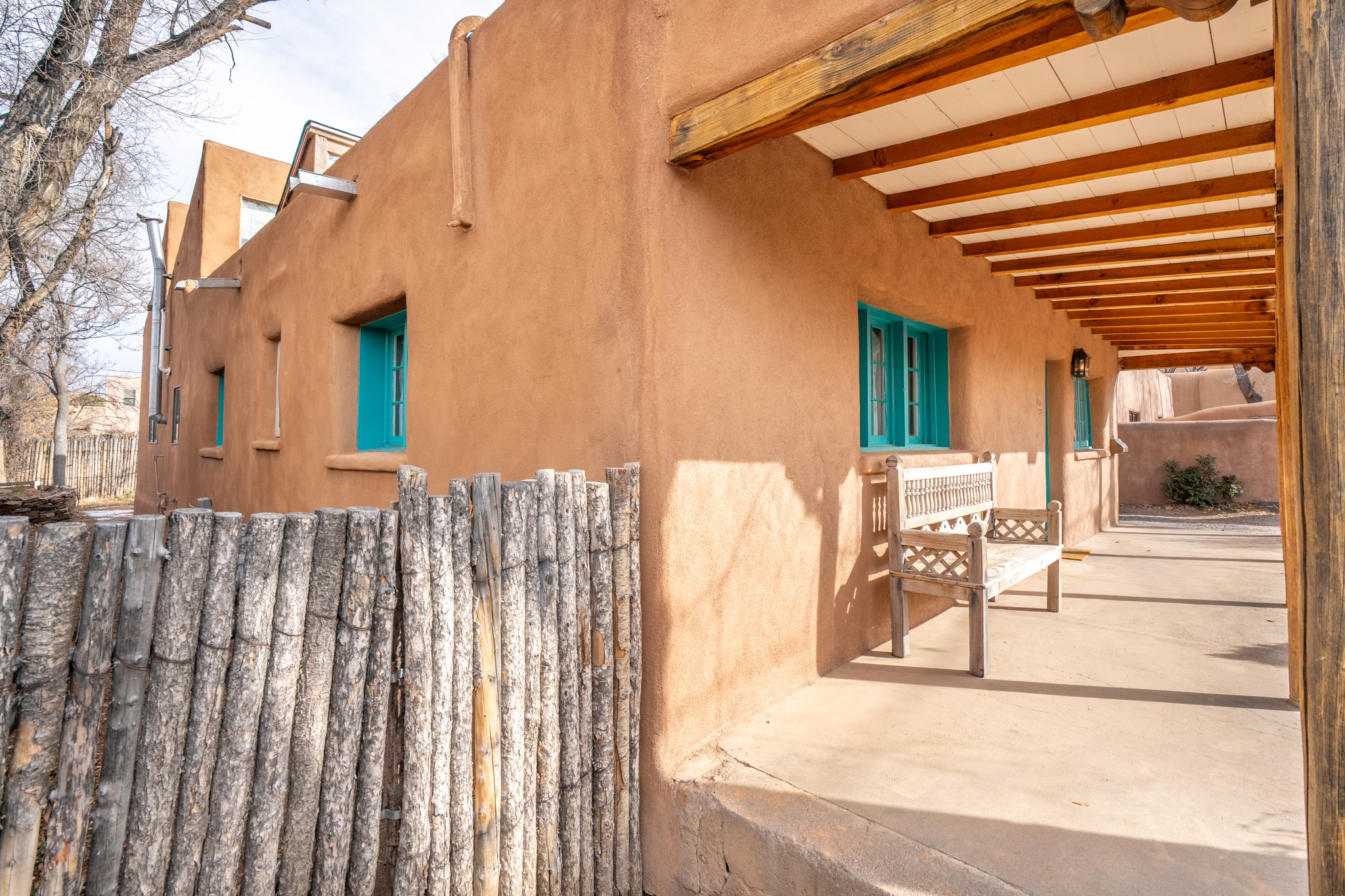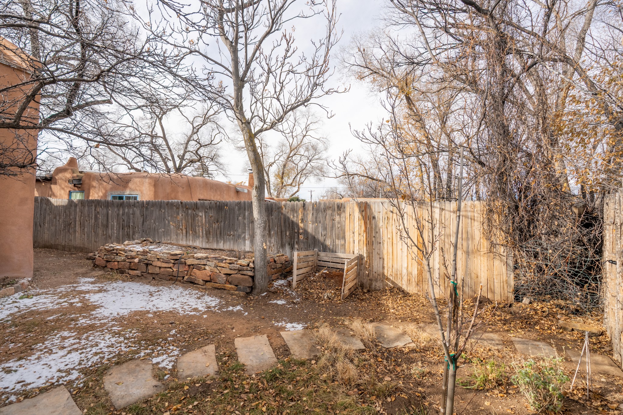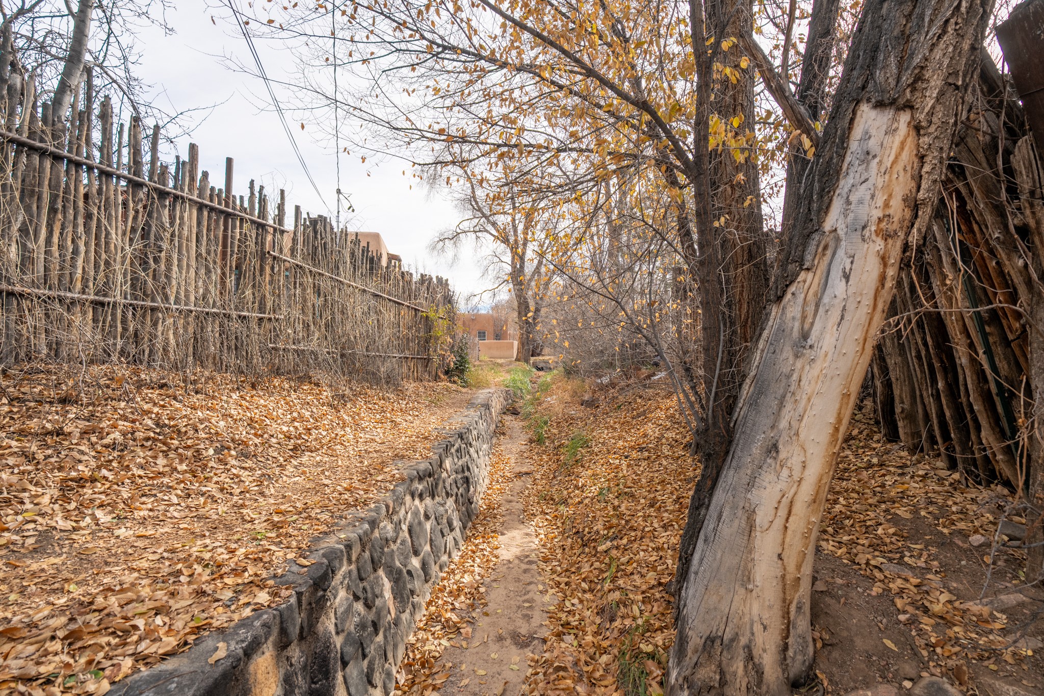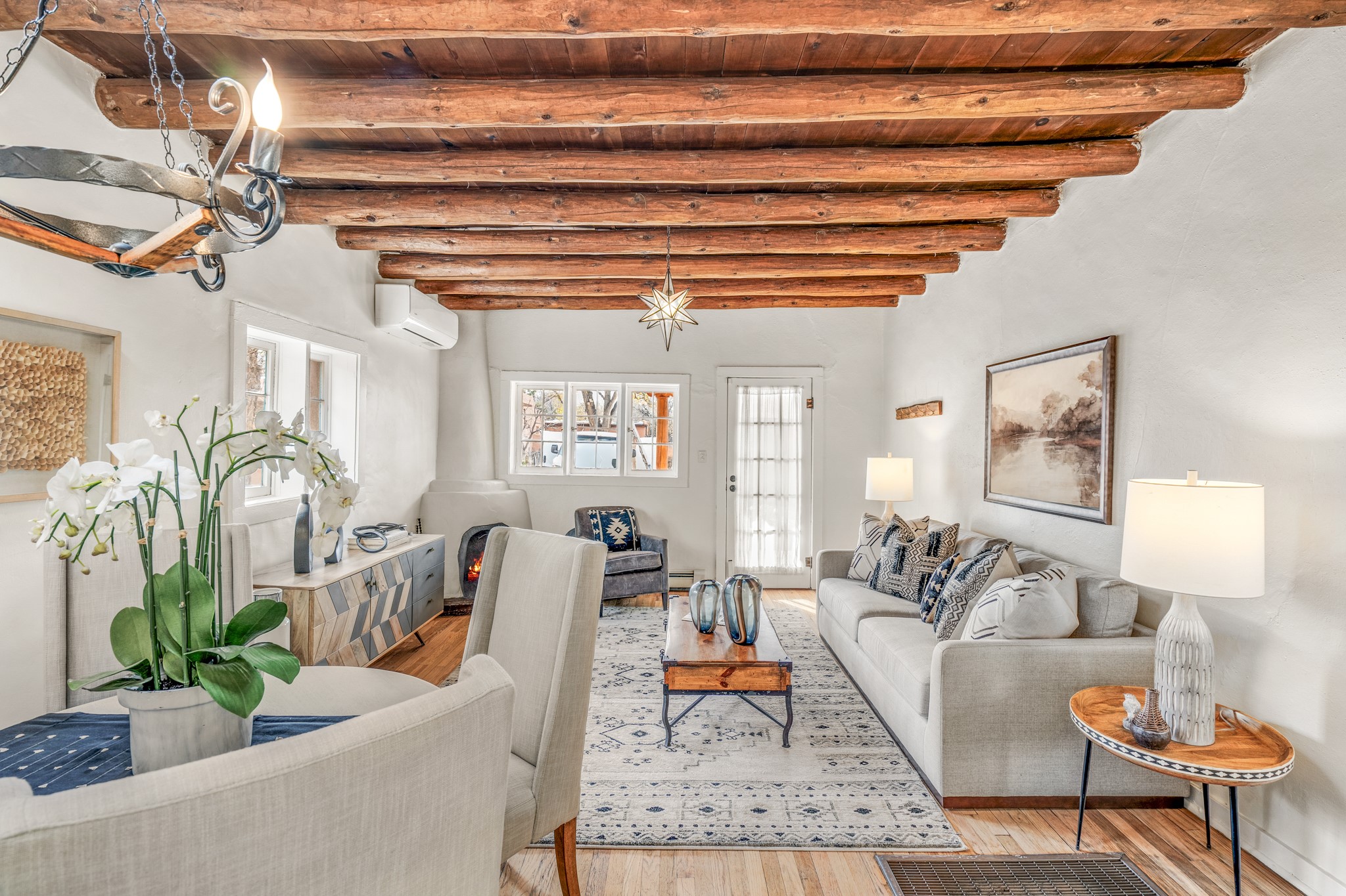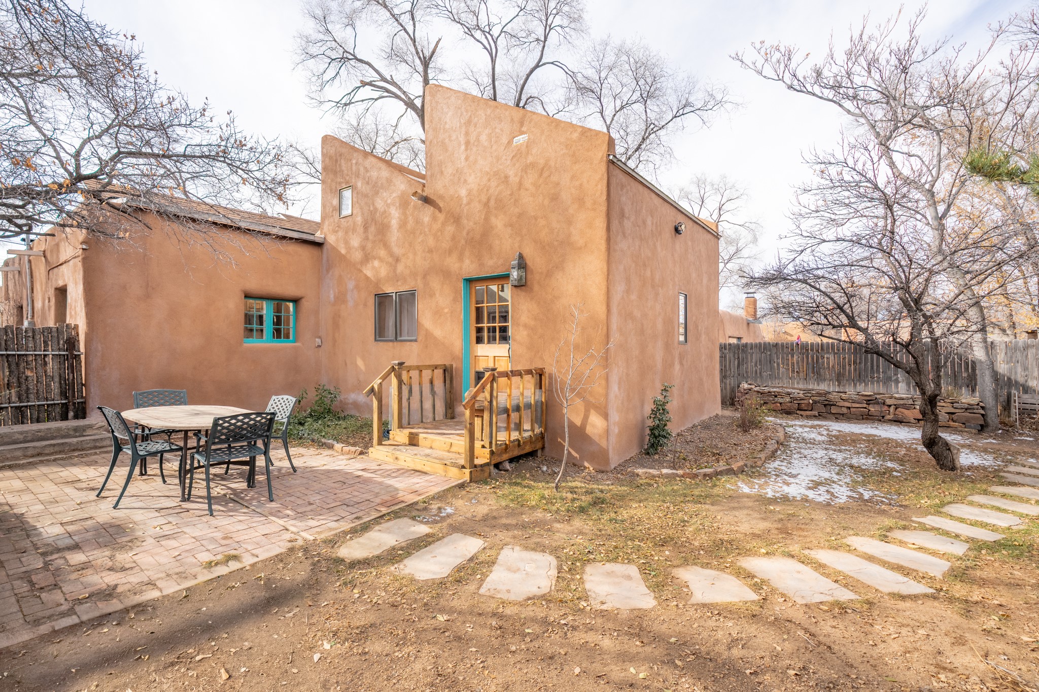 Discover authentic Santa Fe charm and exceptional walkability in this sweet downtown property, perfectly situated in the heart of the Historic District. Set on a quiet, dead-end street, this inviting home offers a rare blend of privacy, character, and proximity--just moments from Canyon Road, the Plaza, grocery, neighborhood cafs, food trucks, galleries, and everyday conveniences.A lush, fully landscaped backyard provides direct access to the treasured Acequia Madre pathway, creating a serene oasis filled with mature fruit trees, including apricot, pear, and apple, all maintained by a drip-irrigation system. Enjoy a spacious, shaded back patio ideal for relaxing or entertaining, along with a welcoming front patio perfect for morning coffee.Inside, the home features 3 bedrooms and 2 baths, with classic Santa Fe finishes throughout, including newly refinished hardwood floors, divided-light windows, vigas and beams, adobe walls, and a cozy kiva fireplace. The updated kitchen offers granite countertops, new cabinetry, and newer appliances, and the primary bathroom has been tastefully remodeled. A rear addition includes a loft-style bedroom that opens directly to the backyard, creating a flexible and airy retreat.Recent improvements include fresh interior paint, a new roof with a transferable warranty, new stucco, and new mini-splits for year-round comfort. Light, bright, and thoughtfully maintained, this home captures the essence of Santa Fe living.Cozy, comfortable, and move-in ready--make this charming downtown retreat yours today.