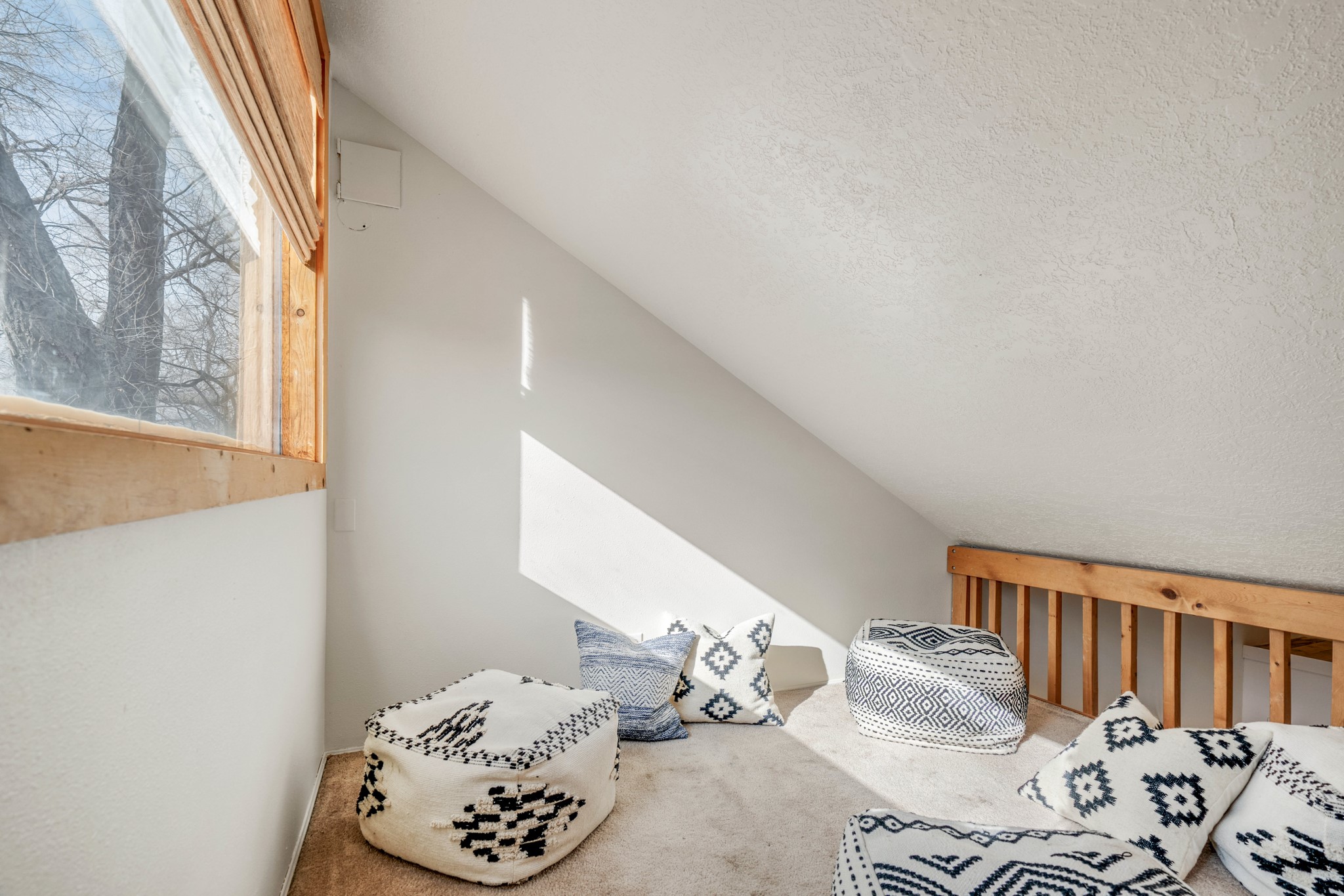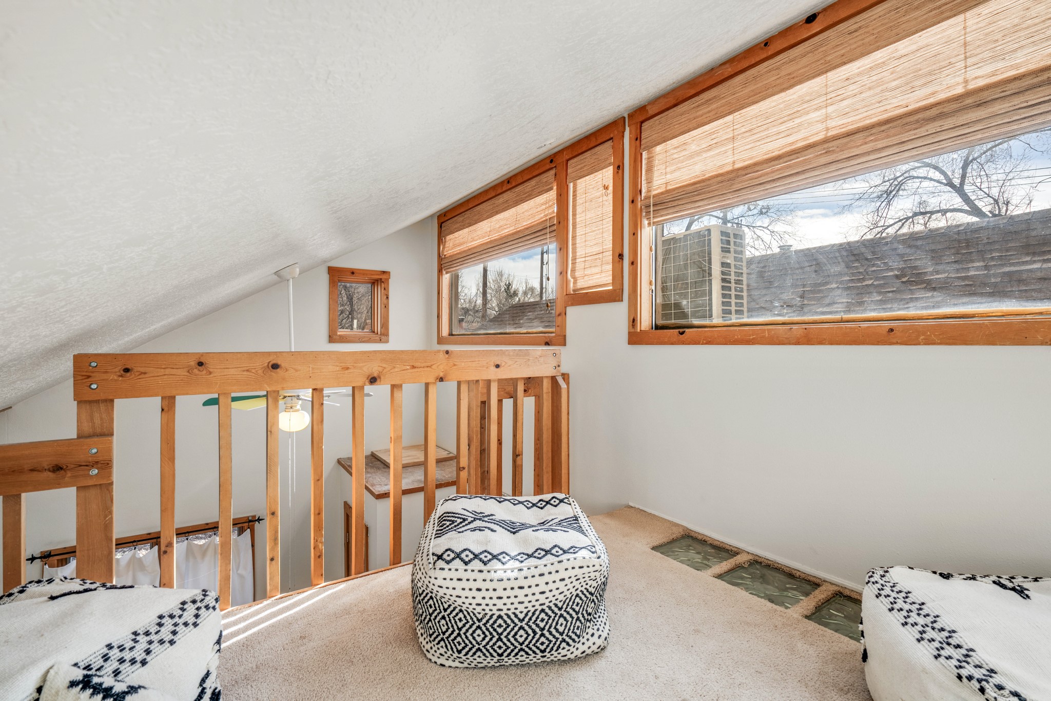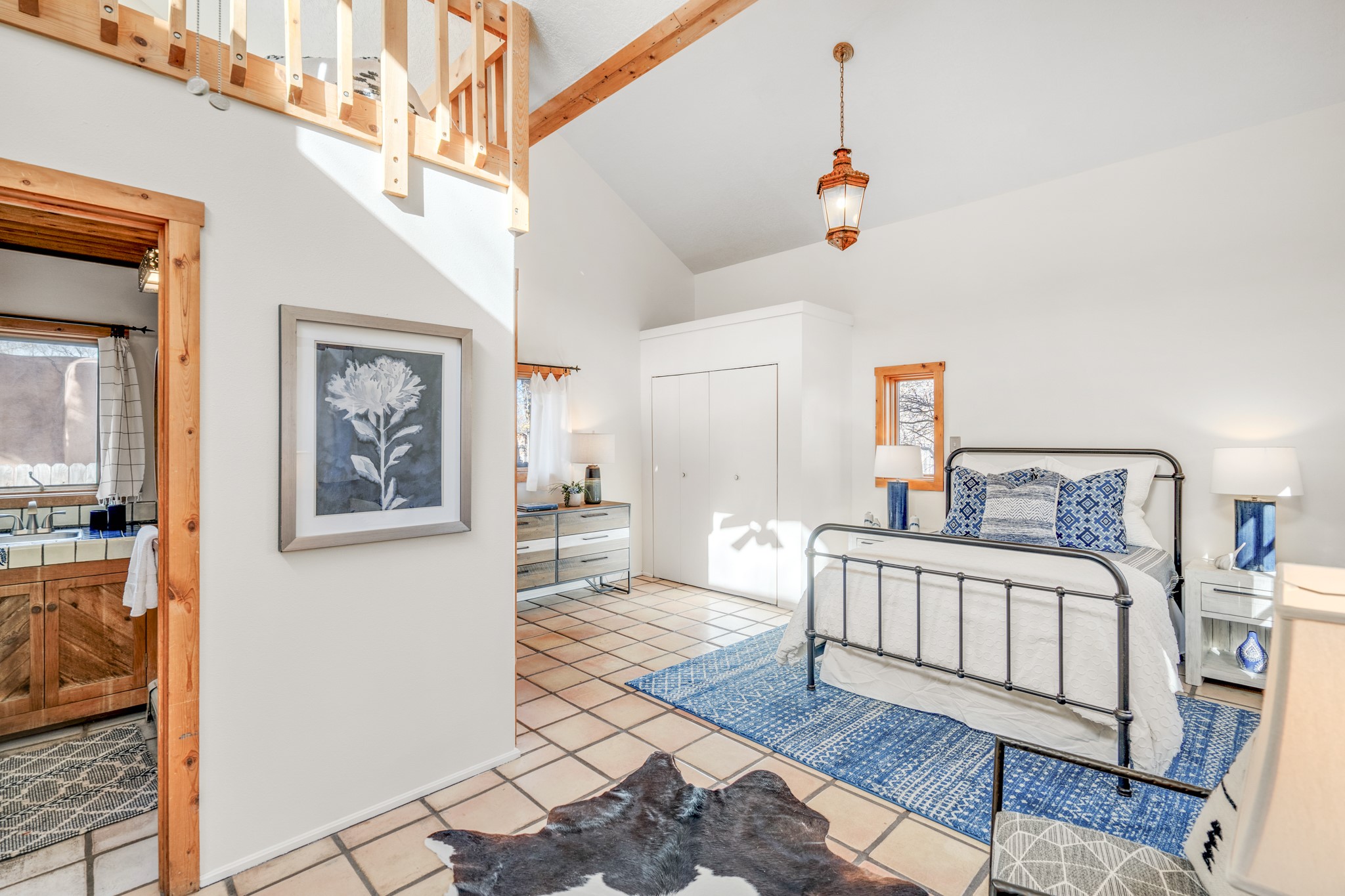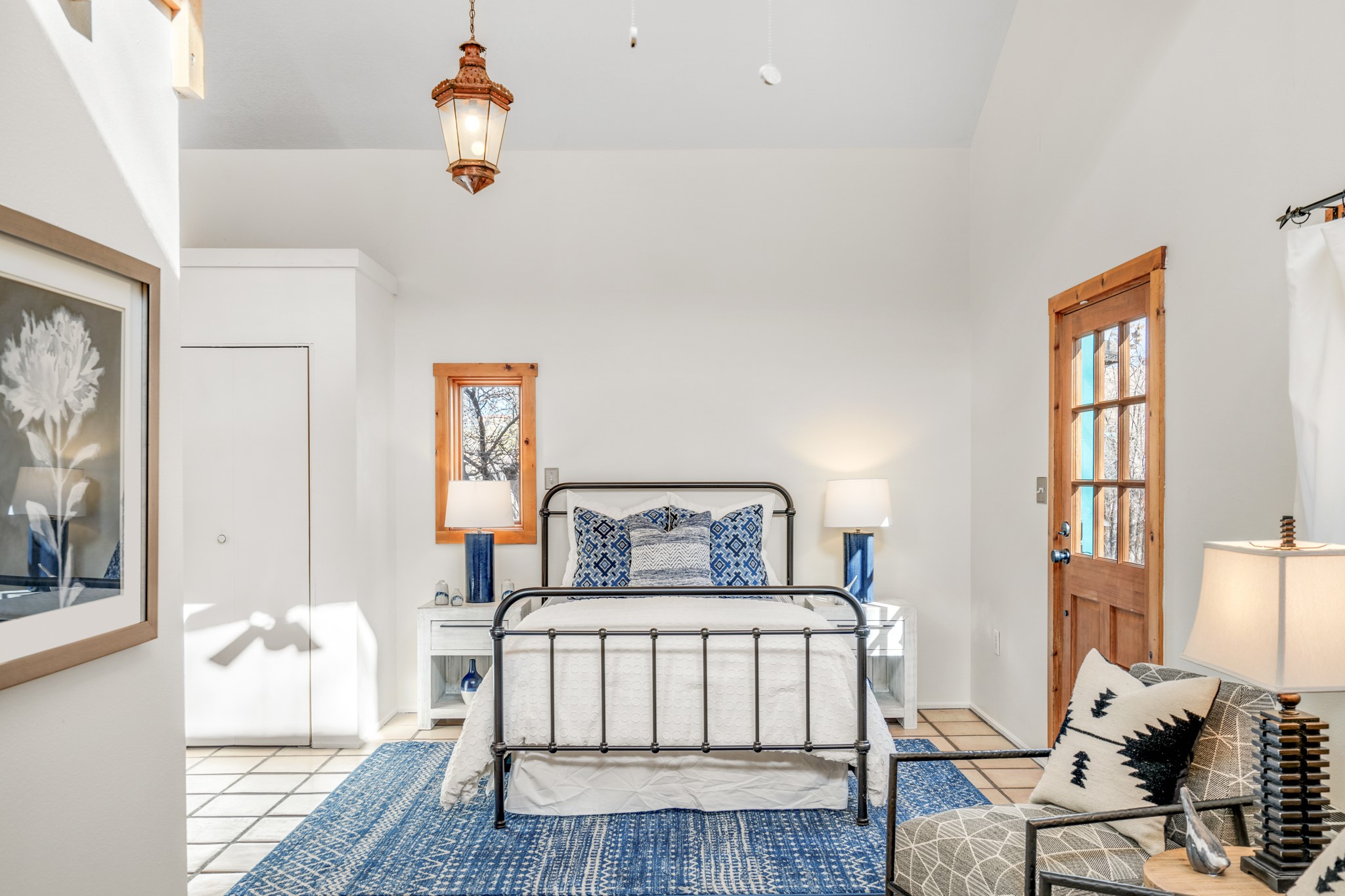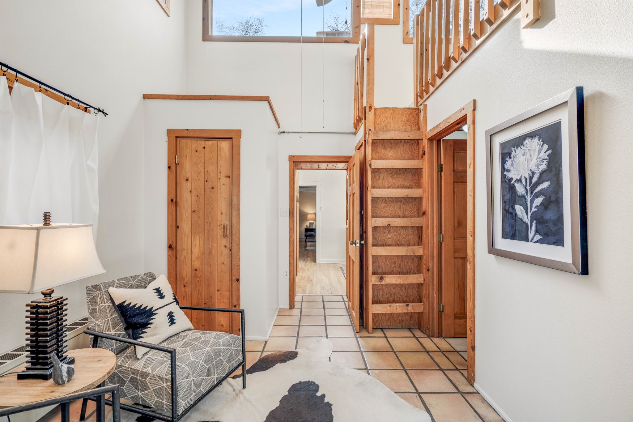 Discover authentic Santa Fe charm and exceptional walkability in this sweet downtown property, perfectly situated in the heart of the Historic District. Set on a quiet, dead-end street, this inviting home offers a rare blend of privacy, character, and proximity--just moments from Canyon Road, the Plaza, grocery, neighborhood cafs, food trucks, galleries, and everyday conveniences.A lush, fully landscaped backyard provides direct access to the treasured Acequia Madre pathway, creating a serene oasis filled with mature fruit trees, including apricot, pear, and apple, all maintained by a drip-irrigation system. Enjoy a spacious, shaded back patio ideal for relaxing or entertaining, along with a welcoming front patio perfect for morning coffee.Inside, the home features 3 bedrooms and 2 baths, with classic Santa Fe finishes throughout, including newly refinished hardwood floors, divided-light windows, vigas and beams, adobe walls, and a cozy kiva fireplace. The updated kitchen offers granite countertops, new cabinetry, and newer appliances, and the primary bathroom has been tastefully remodeled. A rear addition includes a loft-style bedroom that opens directly to the backyard, creating a flexible and airy retreat.Recent improvements include fresh interior paint, a new roof with a transferable warranty, new stucco, and new mini-splits for year-round comfort. Light, bright, and thoughtfully maintained, this home captures the essence of Santa Fe living.Cozy, comfortable, and move-in ready--make this charming downtown retreat yours today.