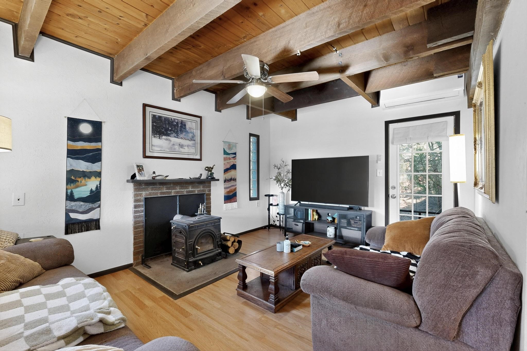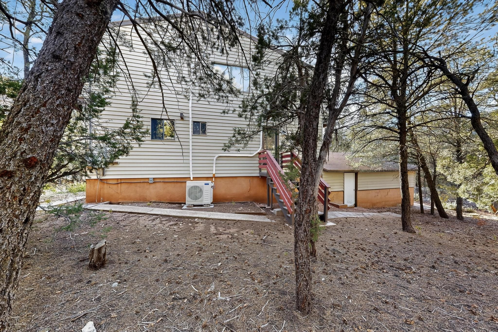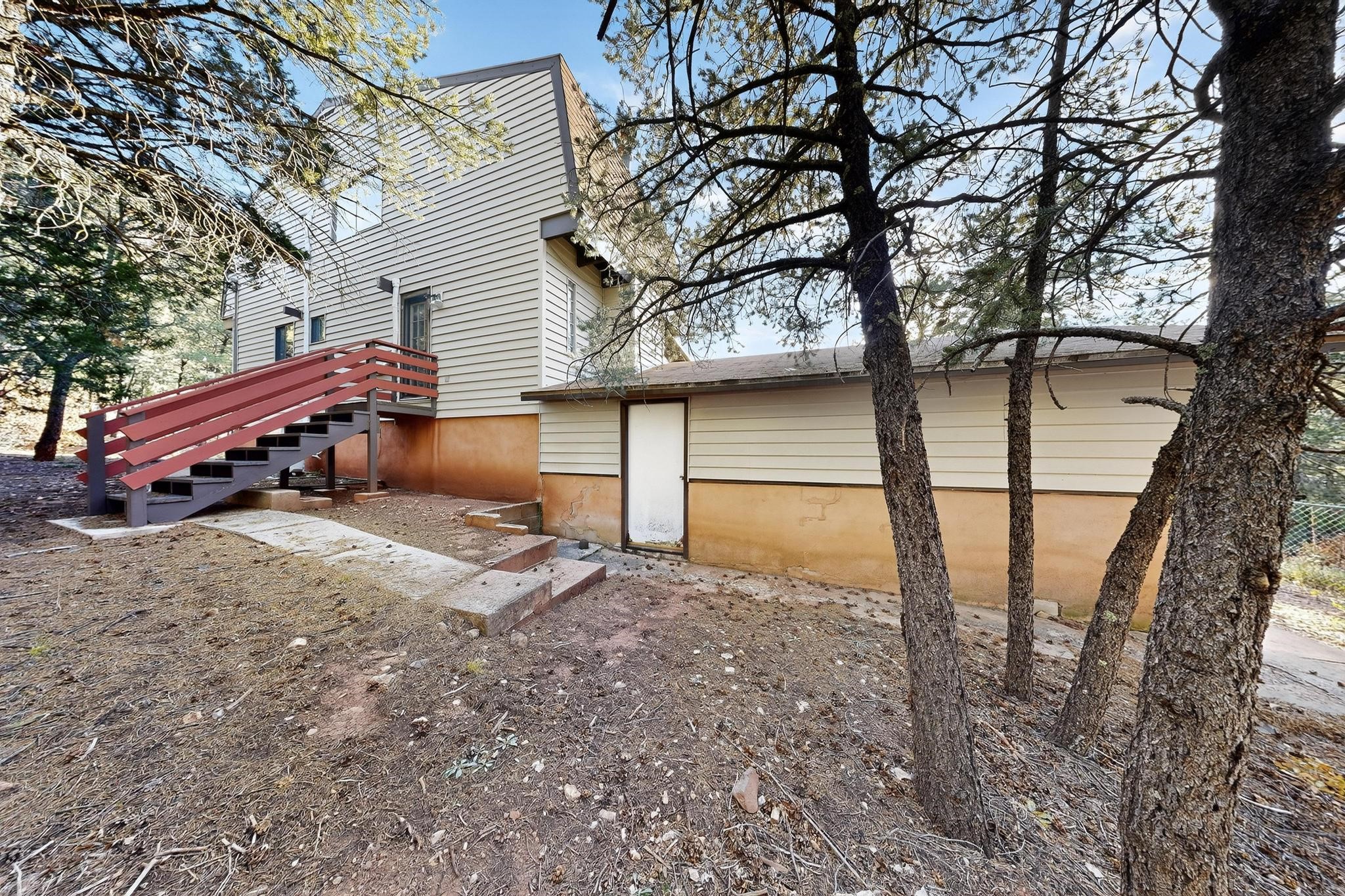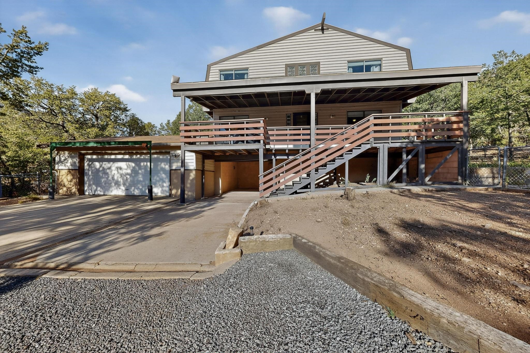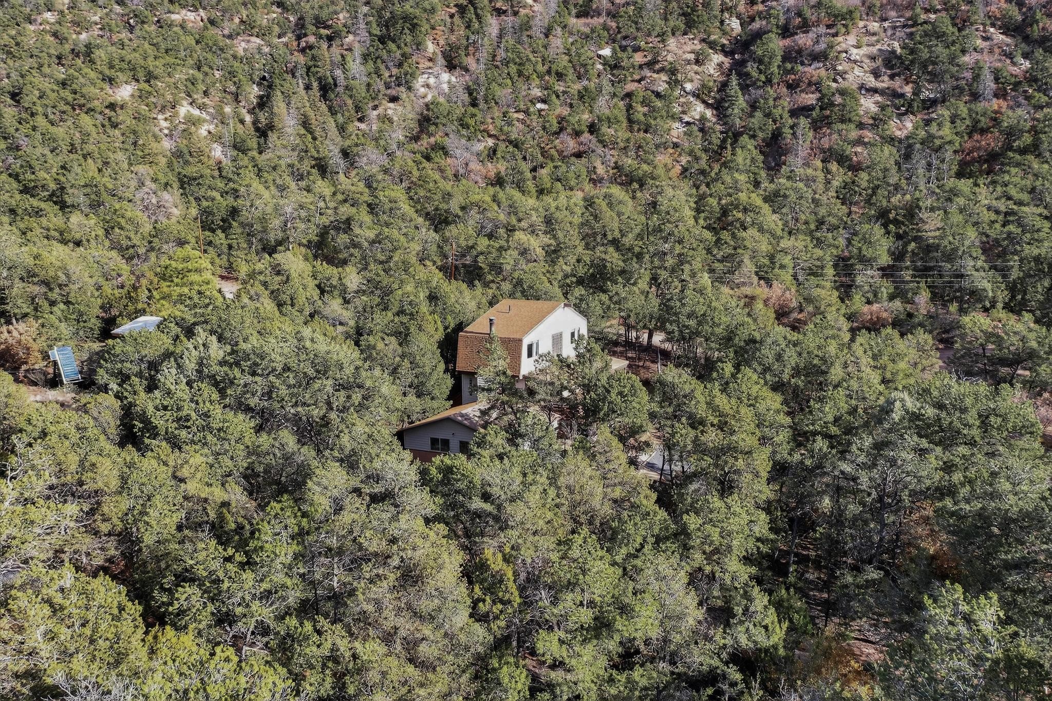 Nature lovers' dream home alert! Escape from the hustle and bustle in this clean, cozy mountain retreat with spectacular unobstructed views of the majestic Jemez Valley. Nestled in the pines, this hard-to-find gem of a home offers modern comforts with the mini-split system, or warm up next to the wood-burning stove, relish the abundant natural light throughout, and sip your morning coffee in the country kitchen or entertain guests in the tucked-away bar/recreation area in the basement. Upstairs you'll find two generously sized bedrooms with perfectly positioned viewing windows. You'll be seeing yourself right on home, soaking up the fresh air on your oversized covered deck, staying busy in your attached 2-car garage/workshop, or taking the short walk to the river! A MUST SEE!