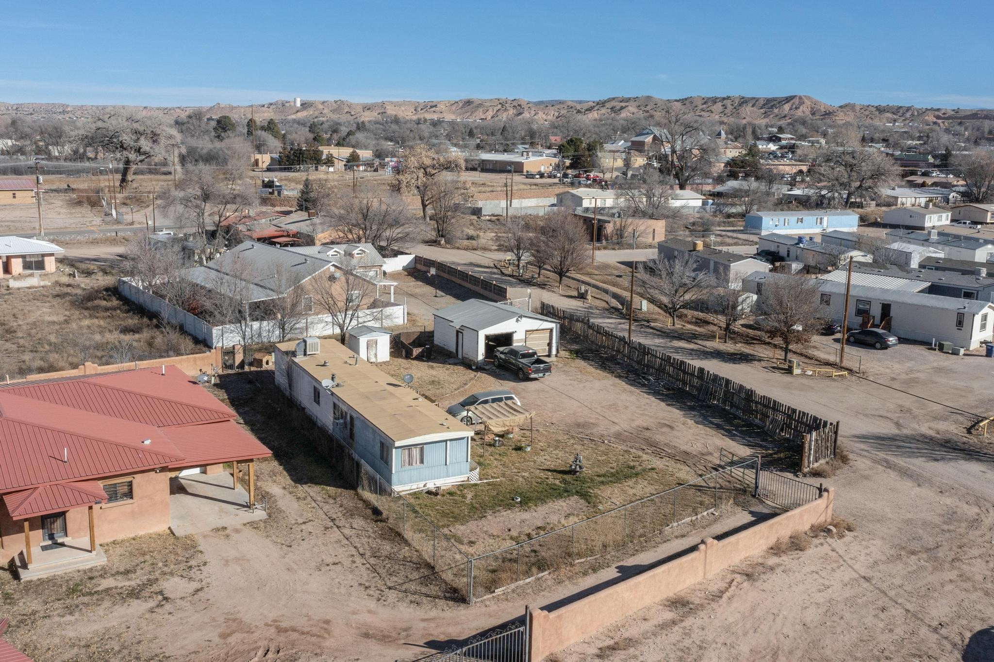 Residential lot with utilities in place and a 588 sq. ft. garage on site. This property offers an excellent opportunity for a new build or bring in your manufactured home. Conveniently located in Santa Cruz with easy access to Espaola, and just a short drive to Los Alamos and Santa Fe. Great potential in a central and accessible location. The mobile home currently on the lot does not convey.