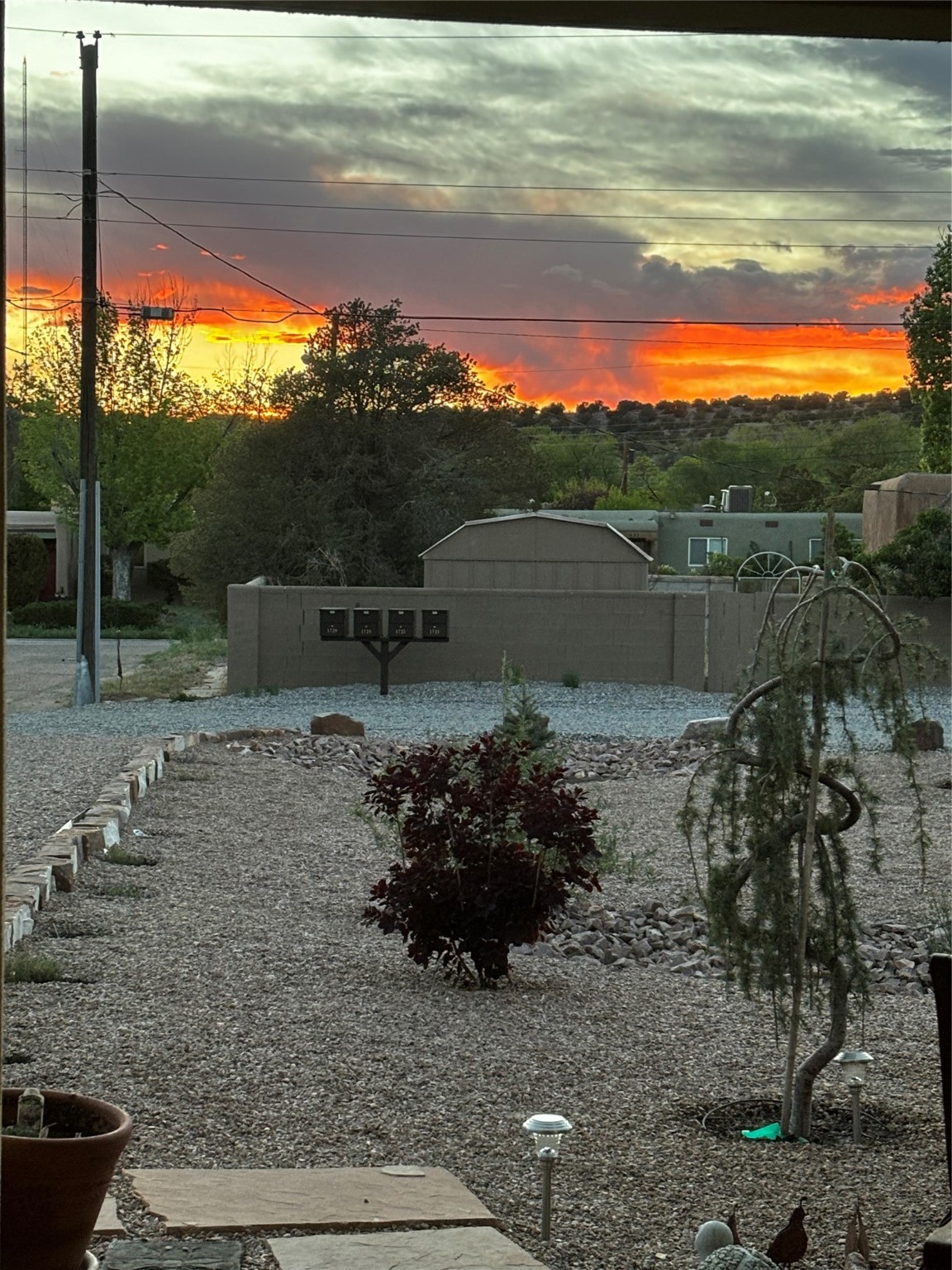 Built in 2022 by Arete Homes of Santa Fe, this beautifully designed single-level 3BD/2BA home offers 1,685 sq. ft. of light-filled living just minutes from The Plaza. Set on a 0.22-acre lot, it enjoys rare privacy, space, and a landscaped backdrop that feels like a hidden oasis. The open-concept kitchen, living, and dining area flows effortlessly into the beautifully hardscaped backyard--complete with flagstone patios, raised garden beds, and lush plantings. The kitchen is the social heart of the home, featuring stone countertops, brand-new stainless steel appliances (Bosch refrigerator and dishwasher/ Thermador oven and microwave), a central island with bar seating, and a sink perfectly placed for both prep and conversation. The living room is anchored by a gas kiva fireplace and rich hardwood floors, which extend throughout the main living areas and bedrooms. Two generous guest bedrooms share a well-appointed full bathroom off the main hallway. The private primary suite is ideally sited in the Northeast corner of the home, offering views of the backyard, abundant natural light, a spacious walk-in closet, and a serene en suite bath with double vanities and a large walk-in shower. Additional highlights include forced air heating and central air conditioning, a full laundry room with utility sink, and a coveted attached two-car garage. New construction opportunities in downtown Santa Fe are exceptionally rare--1728 Callejon Melinda presents a unique chance to enjoy the ease of newer construction in a quiet, tucked-away location near everything Santa Fe has to offer.