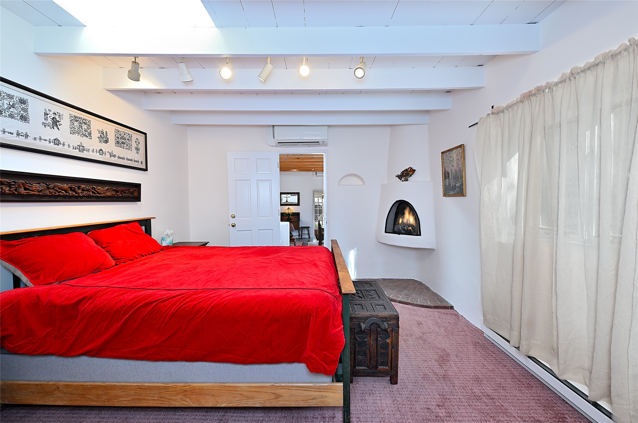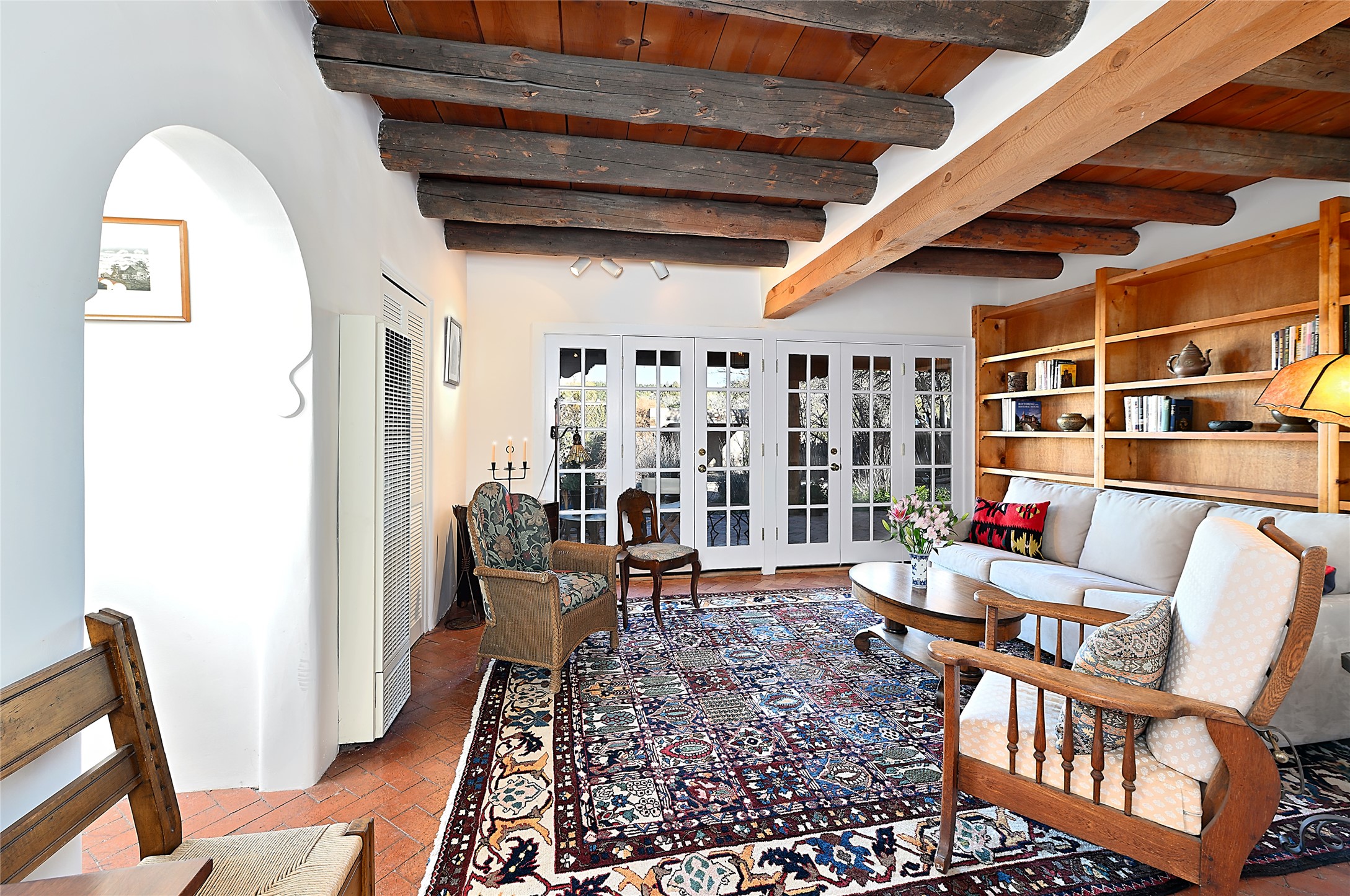 A gated driveway leads to wide pastoral views, with a open Sangre de Cristo mountain backdrop. The french doors and widow banks intake outside''s grandeur within quiet adobe walls. It's a pleasant, short stroll on "The Camino" to Canyon Road, plus all that downtown Santa Fe has to offer. Prime location with authentic Santa Fe style.