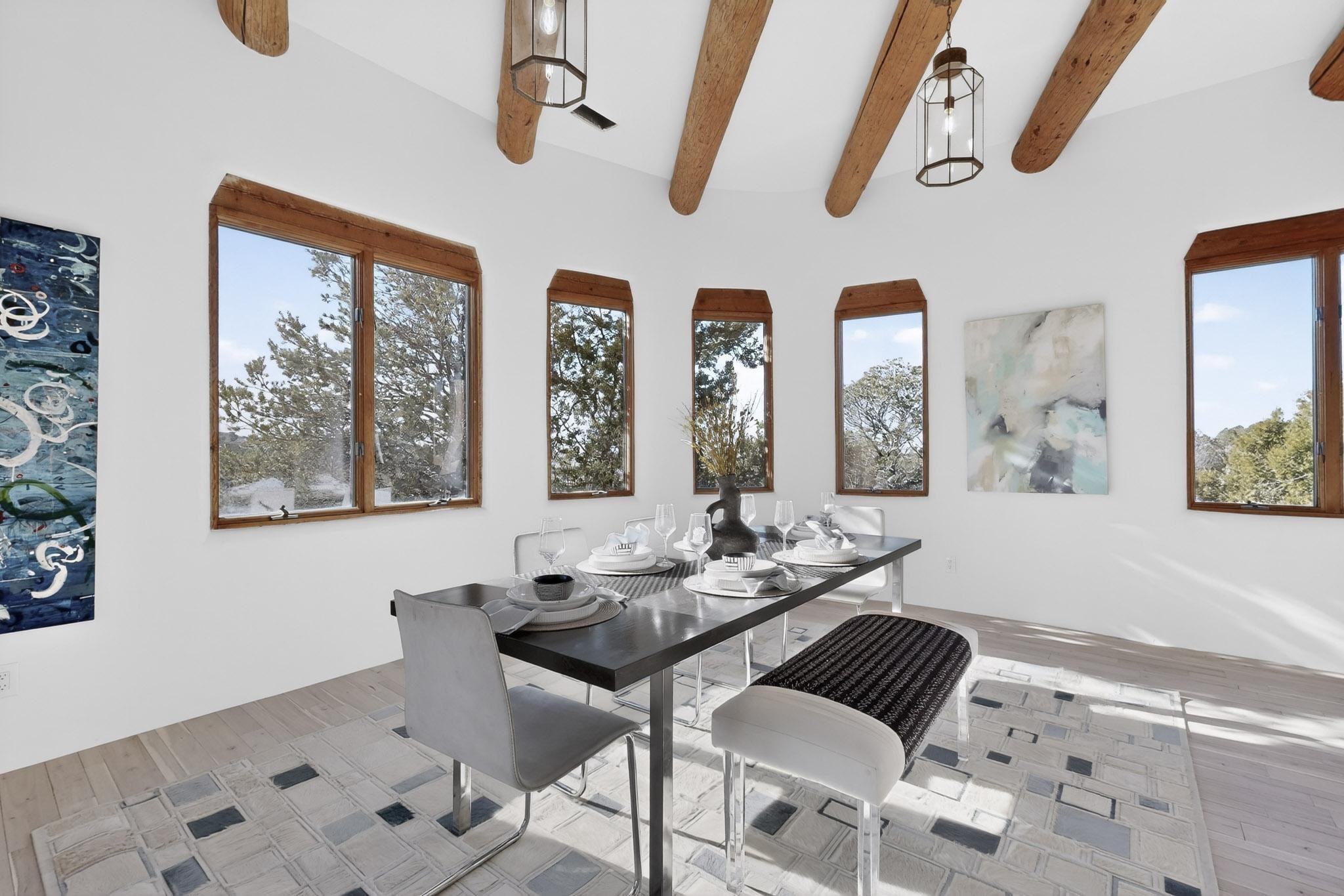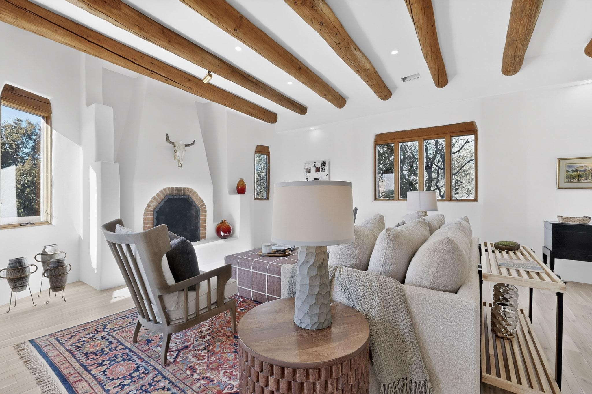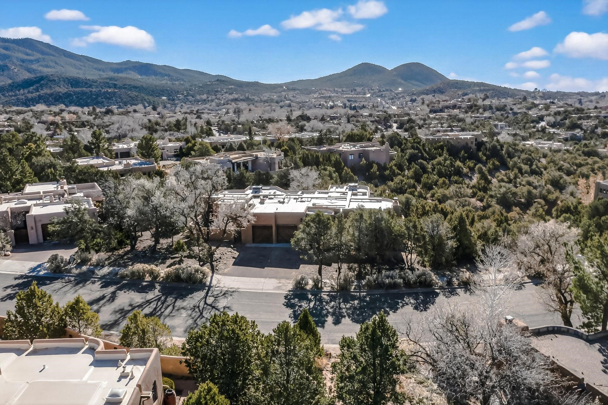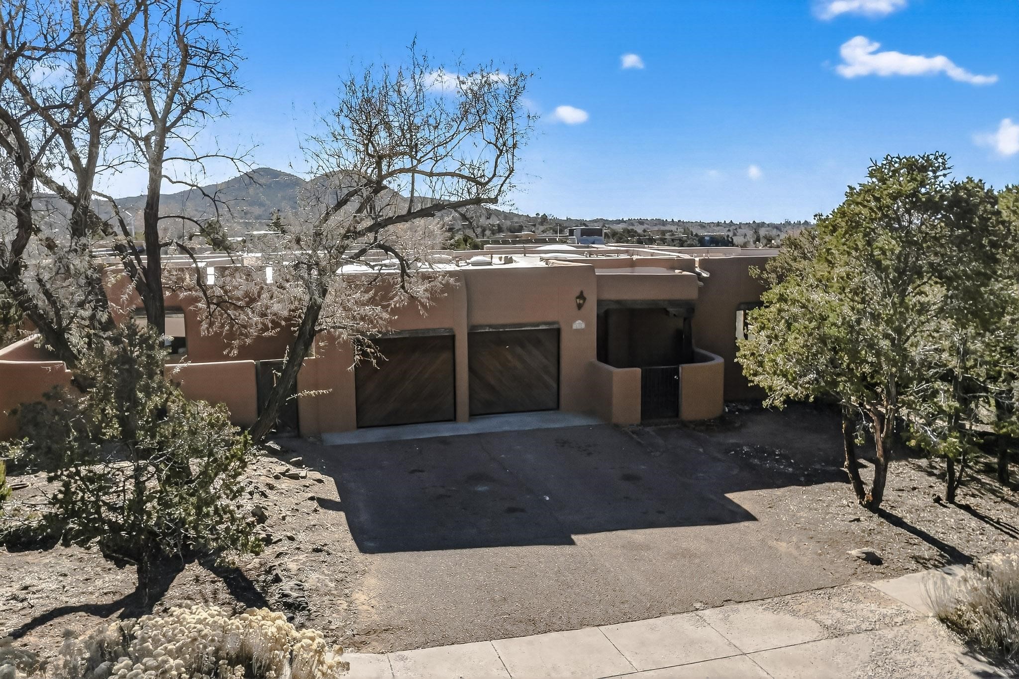 Commanding an elevated position in one of Santa Fe's most coveted locations, this impeccably reimagined residence offers a rare blend of refined luxury, privacy, and inspiring views. Thoughtfully curated for sophisticated living, the home features three bedrooms--or two bedrooms plus a private office--and three beautifully appointed bathrooms, ideal for both gracious entertaining and serene everyday comfort. The interior has been extensively and meticulously remodeled, showcasing new hardwood flooring throughout, a chef's kitchen adorned with custom cabinetry, quartz countertops, and a full suite of new, high-end appliances, and spa-inspired bathrooms finished with contemporary materials and elegant detailing. The result is a timeless, light-filled interior that seamlessly balances modern design with Santa Fe's distinctive character. There is a new HVAC system, forced air heating and central AC, to provide year round comfort. There is an outlet for your EV charging center in the garage. This turnkey property in an exceptional location with understated sophistication represents a distinguished offering in the Santa Fe market.