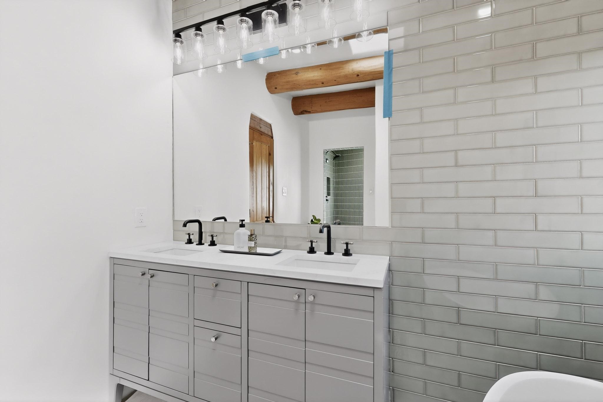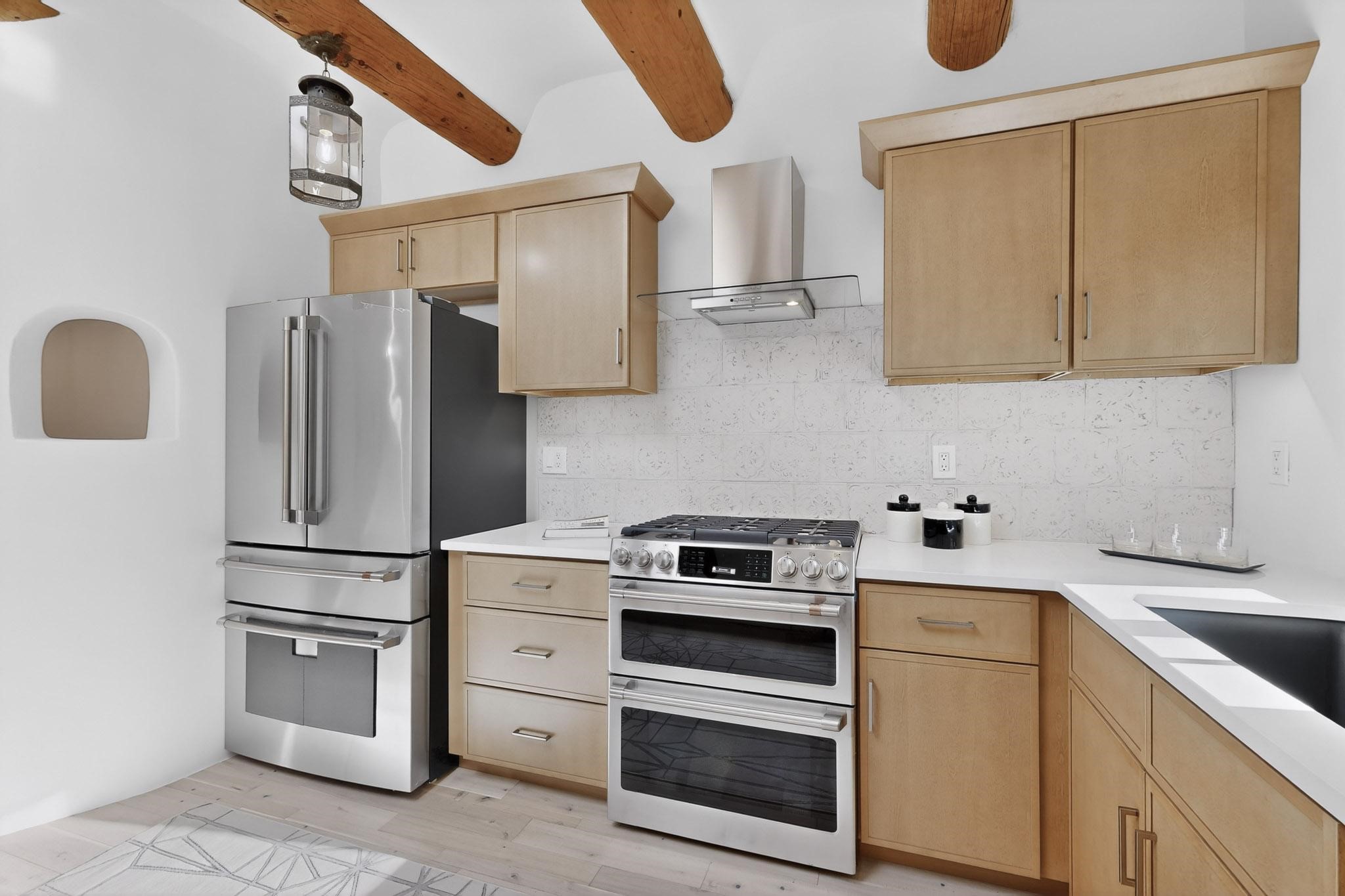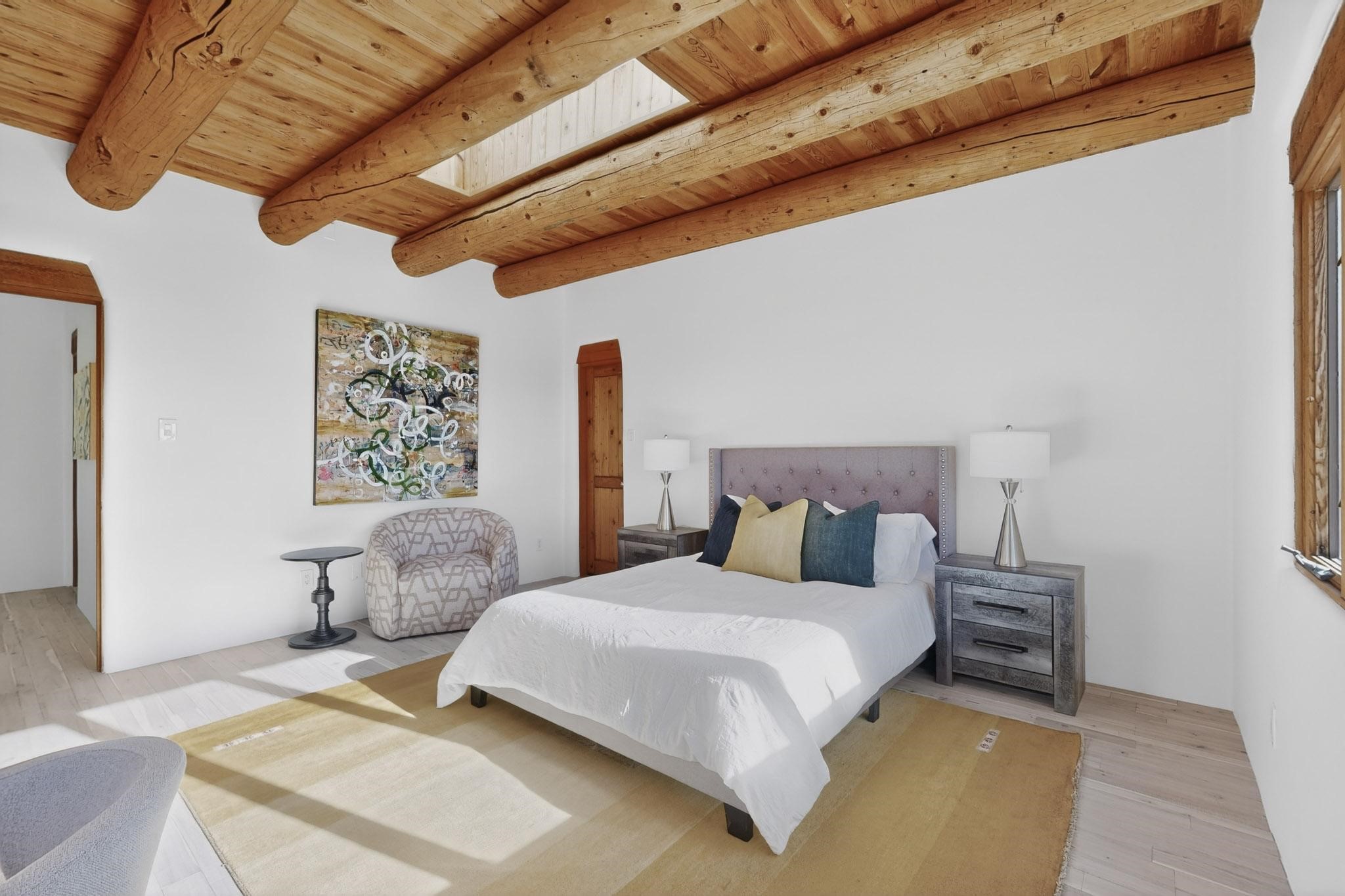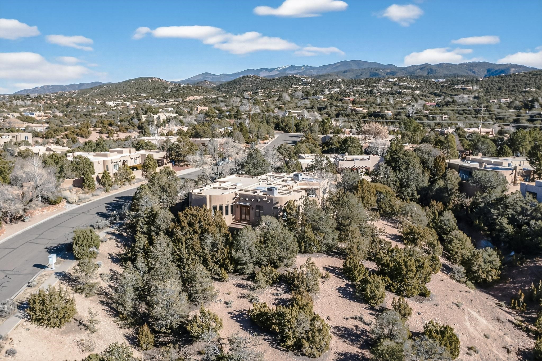 Commanding an elevated position in one of Santa Fe's most coveted locations, this impeccably reimagined residence offers a rare blend of refined luxury, privacy, and inspiring views. Thoughtfully curated for sophisticated living, the home features three bedrooms--or two bedrooms plus a private office--and three beautifully appointed bathrooms, ideal for both gracious entertaining and serene everyday comfort. The interior has been extensively and meticulously remodeled, showcasing new hardwood flooring throughout, a chef's kitchen adorned with custom cabinetry, quartz countertops, and a full suite of new, high-end appliances, and spa-inspired bathrooms finished with contemporary materials and elegant detailing. The result is a timeless, light-filled interior that seamlessly balances modern design with Santa Fe's distinctive character. There is a new HVAC system, forced air heating and central AC, to provide year round comfort. There is an outlet for your EV charging center in the garage. This turnkey property in an exceptional location with understated sophistication represents a distinguished offering in the Santa Fe market.