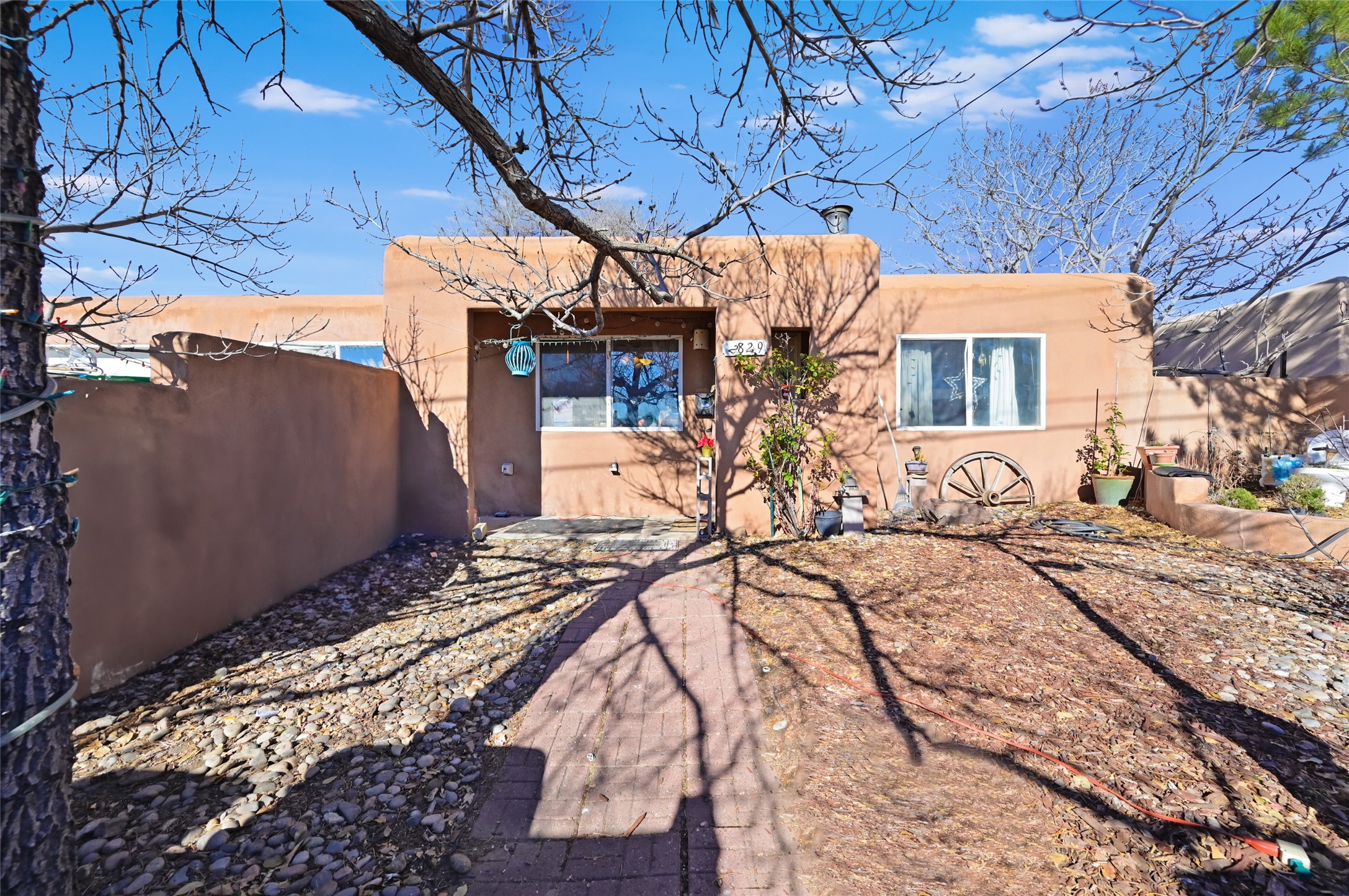 This warm and comfy home features a contemporary open floor plan, a separate den with a Kiva fireplace, some plaster walls, updated lighting & plumbing fixtures, 16-inch Italian tile, Berber carpet, insulated windows & a separate laundry room. Walled front yard and a large back yard landscaped with mature trees & flowers providing shade & color through the summer months, a great place to entertain or bird watch.