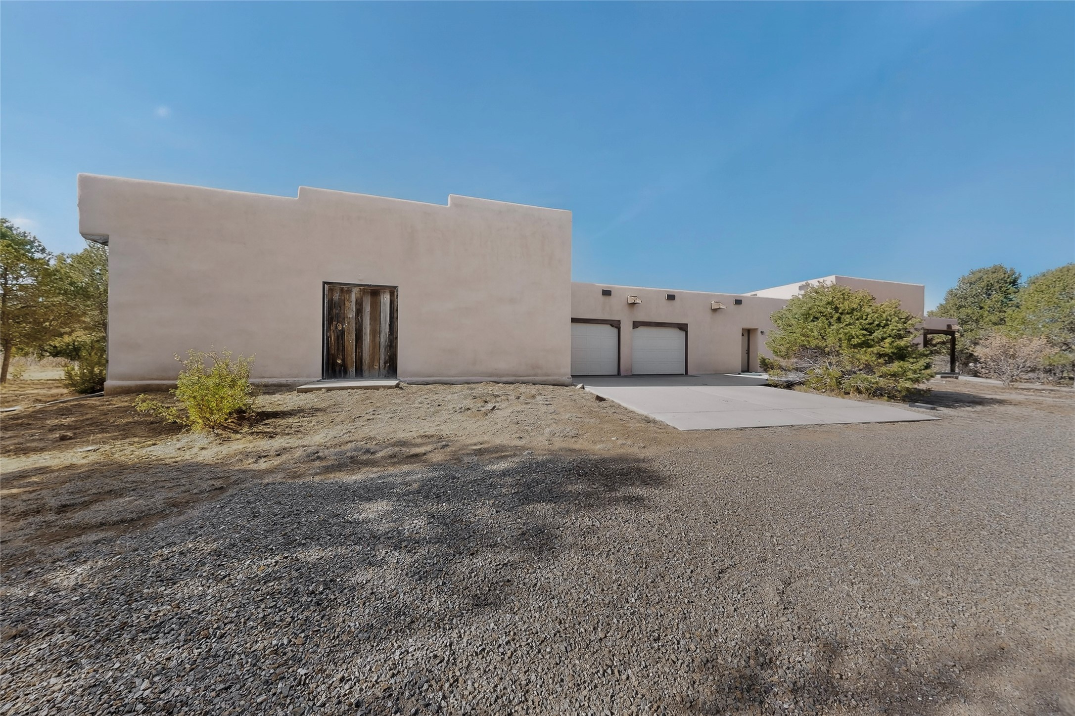 A front portal enhances the charm of the custom property featuring vigas, beams, and corbels. The layout is thoughtfully planned, allowing for a seamless flow between rooms while maintaining a sense of intimacy. Natural light floods the interiors, highlighting the exquisite finishes and enhancing the warm ambiance. This home is not merely a structure; it is a testament to the dedication and passion that built this creation.Features & details in this home include windows trimmed in wood, tailored plant ledges provide a perfect space for displaying those special heirlooms, striking wooden wheels serve as chandeliers and offer a unique focal point in the living area. Accommodating family and guests, the residence boasts three well-appointed bedrooms and 3.5 bathrooms. The timeless clawfoot bathtub serves as a focal point and embodies a sense of luxury and comfort that transforms an ordinary bathing routine into a serene escape from the stresses of daily life. Additionally, a built-in display cabinet with glass doors provides showcase for cherished items, further enhancing the home's sophisticated design.Constructed with straw bale materials, the home boasts exceptional energy efficiency, superior insulation, and impressive fire resistance, ensuring comfort and safety year-round. Additionally, the property includes a substantial 1,258+/- sq ft attached workshop that offers versatile possibilities. This space can serve multiple purposes, a mother-in-law suite, a dedicated hobby room, car enthusiasts' garage and the possibilities are endless. Notably, this workshop is not included in the home's heated square footage, providing an extra dimension of utility and flexibility to the property.Tucked into the Manzano Mountains the SW natural landscape is adorned with trees and wildflowers, attracting a variety of wildlife, including deer and turkeys. Immerse yourself in the peacefulness of this property.