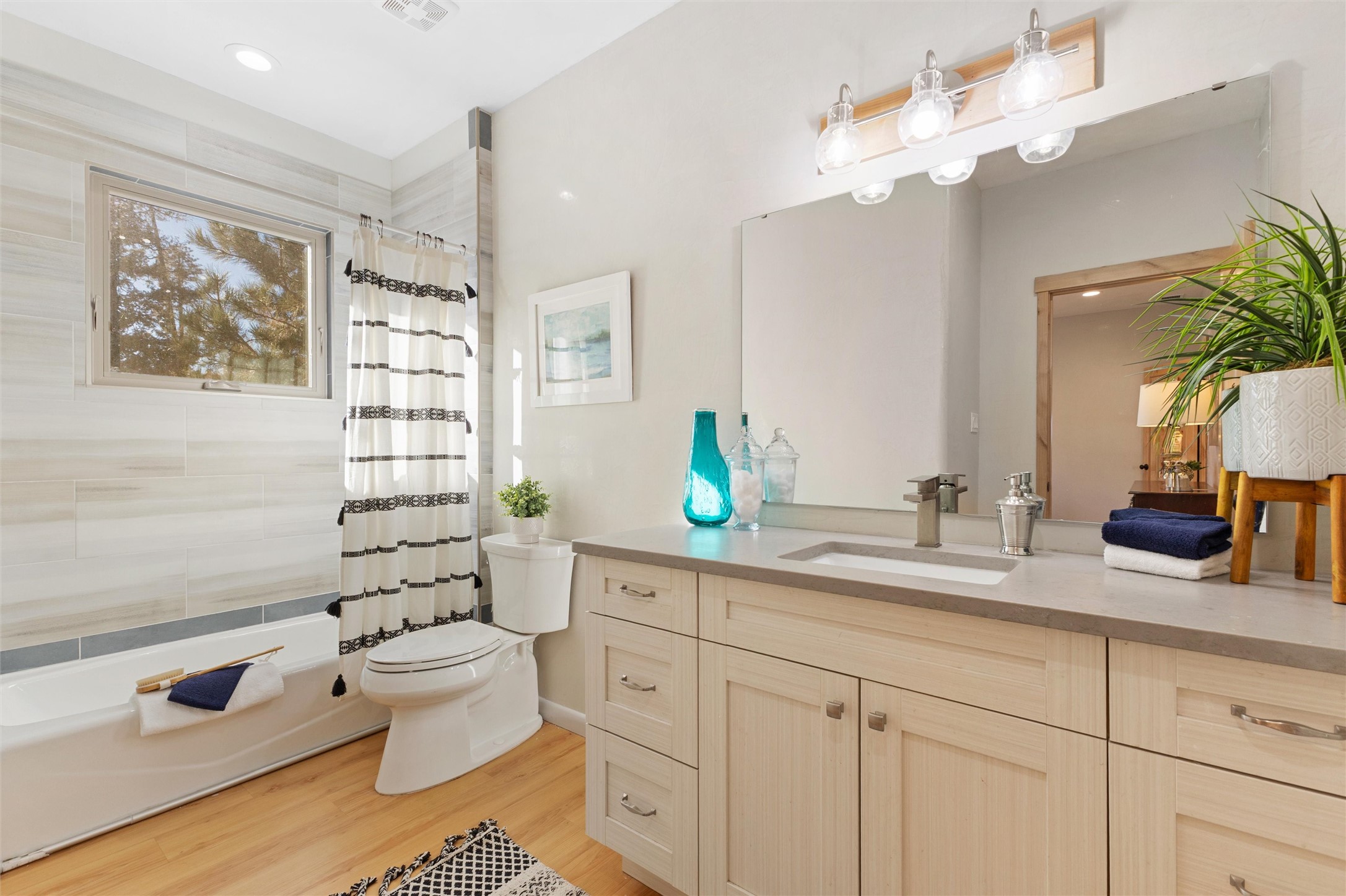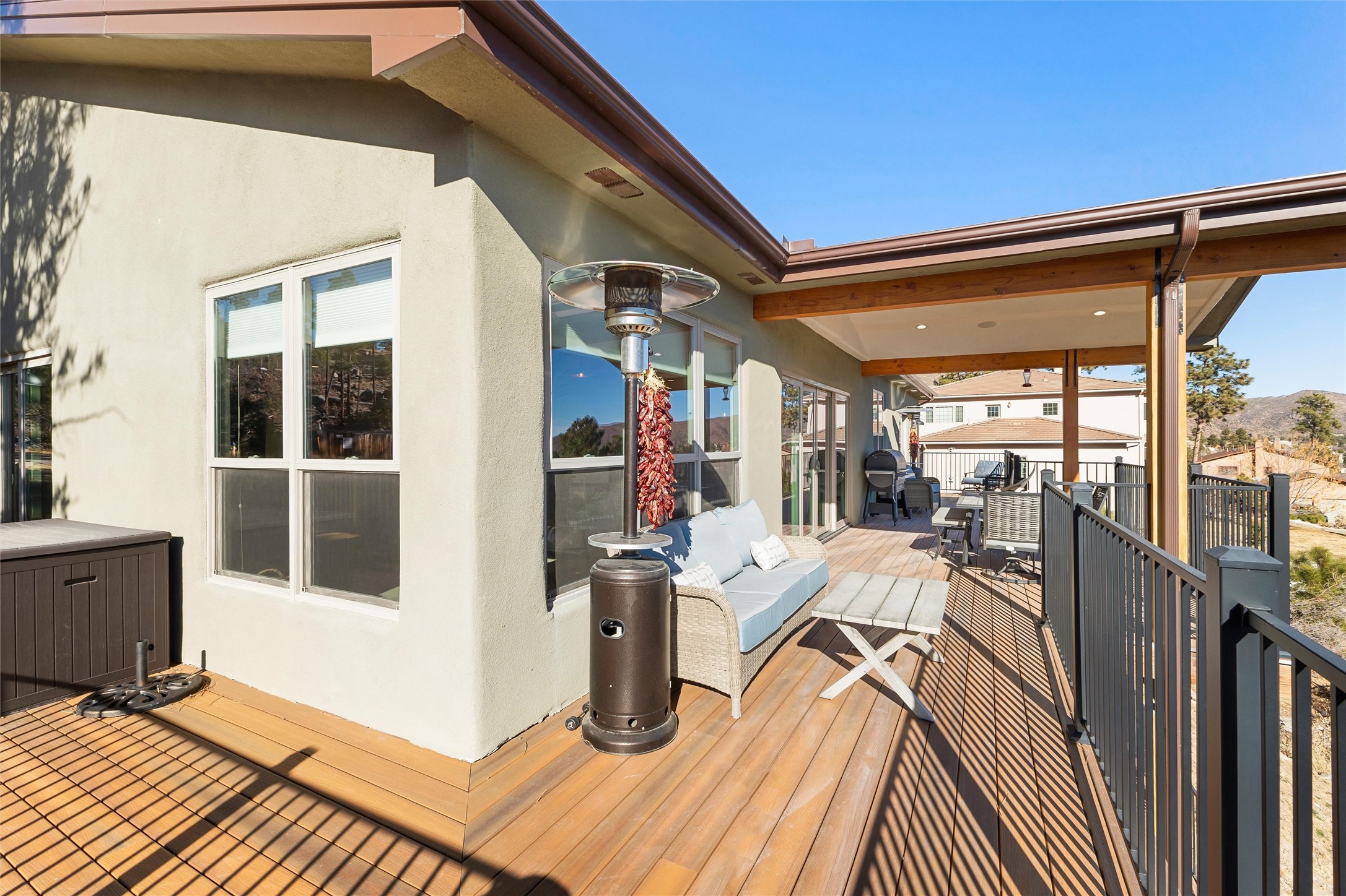 Tucked at the end of a quiet cul-de-sac in one of Los Alamos' most desirable neighborhoods, 1610 Solana is a truly rare offering. Set on over one acre (the largest lot in the neighborhood) and backing to National Forest and County land for unmatched privacy and a breathtaking natural backdrop. With arguably the best views in town, you'll enjoy sweeping vistas of the townsite, the Sangre de Cristo range, and more from multiple spaces throughout the home.Finished in 2022, this stunning residence offers over 3,500 square feet of modern, beautifully crafted living space and all of the contemporary amenities today's buyers expect. The primary suite is a showstopper with a private deck walkout, an enviable walk-in closet, and a spa-inspired ensuite highlighted by a copper soaking tub.Designed for comfortable main-floor living, the upper level includes two additional bedrooms, one with its own ensuite plus an additional full bath. Venetian plaster walls add softness and sophistication to the main living areas, while multiple gathering spaces provide room to relax or entertain with ease. Head outside to the wrap-around deck with a covered porch, the perfect place to take in the views in every season.The walkout basement expands your options with another spacious family room, a guest bedroom with attached bath, and a versatile bonus room ideal for an office or additional guest space, complete with a Murphy bed.An oversized two-car garage offers generous storage and flexible space for a home gym or workshop, and the large laundry room with attached mudroom just off the garage keeps daily life organized and effortless.New, modern, spacious, and surrounded by nature, 1610 Solana delivers the Los Alamos lifestyle at its finest.