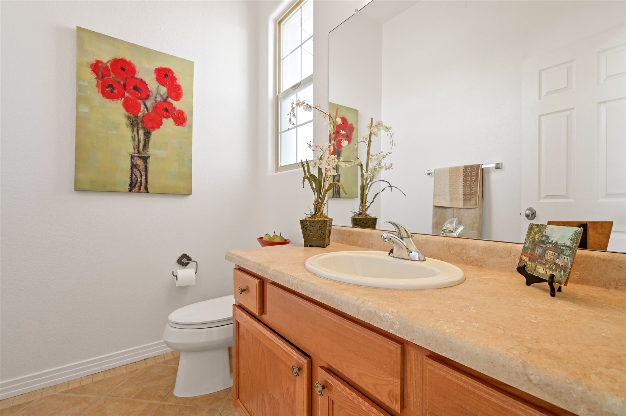 Light and bright two-story home featuring three upstairs bedrooms, two baths, and a versatile bonus room ideal for a home office, second living area, or playroom. Enjoy views from all bedrooms and the bonus room, complemented by attractive wood-look flooring throughout the upper level.The beautifully updated kitchen (2024) showcases newer cabinetry, quartz countertops, stainless steel appliances, and an induction stove any home chef will appreciate. The main level also offers a powder bath, a large laundry room, and access to the two-car garage. Additional upgrades include newer central air conditioning, heating system, and water heater.The spacious primary suite features a large walk-in closet and a well-appointed bathroom with double vanity sinks, a soaking tub, separate shower, and enclosed water closet. The open floor plan, anchored by a charming fireplace, creates an inviting space for relaxing or entertaining. Outdoors, enjoy a fully fenced yard, perfect for gatherings and four-legged friends.Built by BT Homes, this 2117 sqft property has no HOA and is conveniently located near shopping, restaurants, and easy access to 599 and I-25, making commuting to Albuquerque, Historic Downtown Santa Fe, or Los Alamos a breeze.