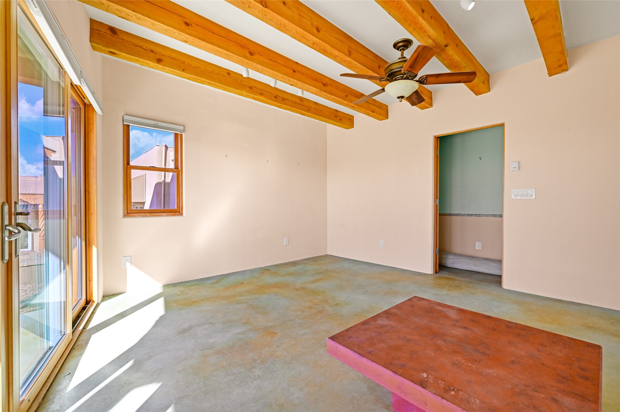 Great passive solar Eldorado home on 1.39 Acres. The 1,146-square-foot main house has 2 bedrooms and 2 bathrooms, and the 686-square-foot Guesthouse/Studio has 2 large rooms and one 3/4 bath. Brick floors in the main, with granite countertops and concrete floors in the Guesthouse/Studio. Also included are Solar panels, a shared well, a 1750-gallon cistern for rainwater harvesting/irrigation, a Navien boiler in the studio, and new coyote back yard fencing. The property backs up to a greenbelt, allowing easy access for hiking and open space for mountain and star-gazing views.