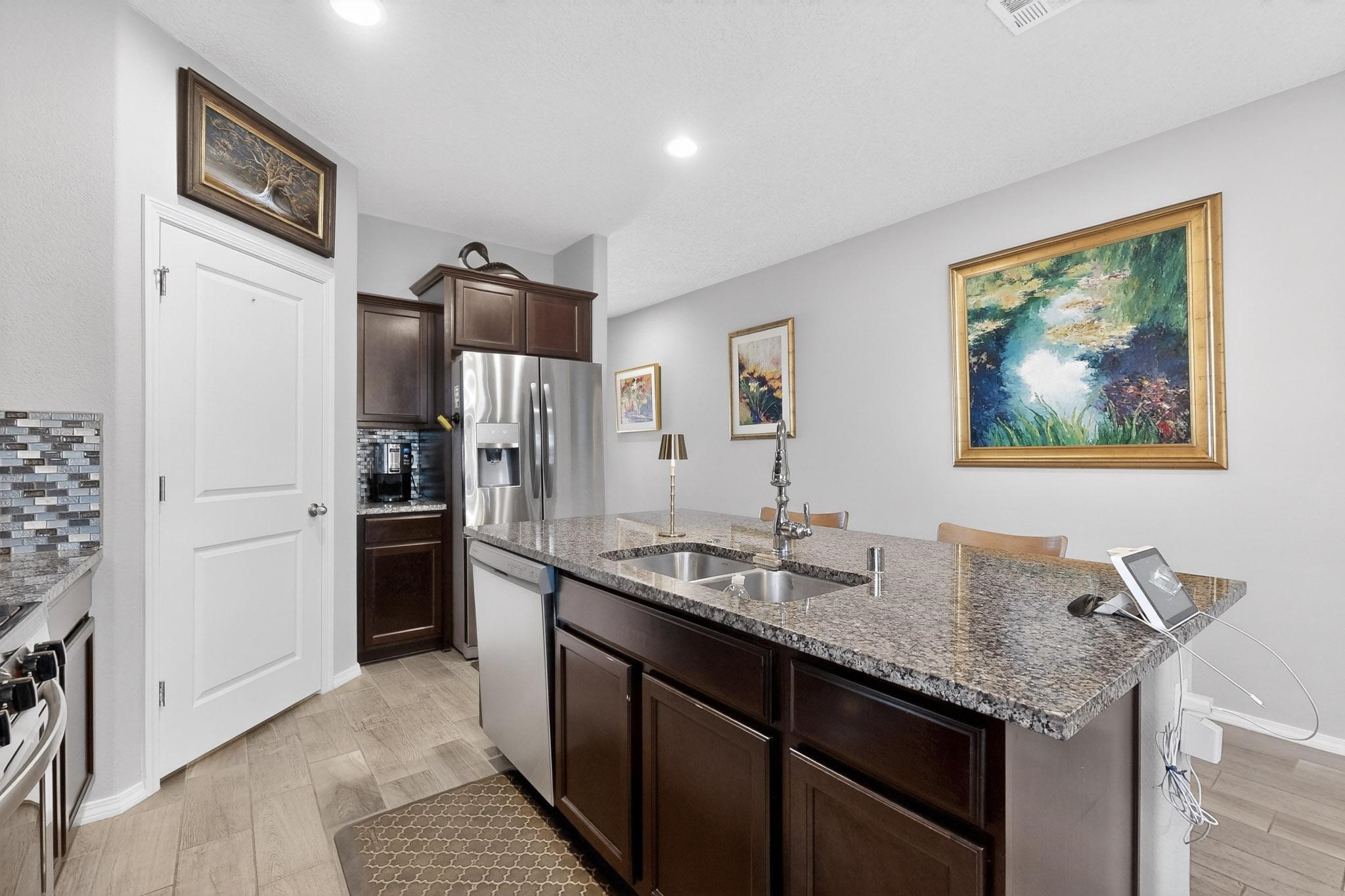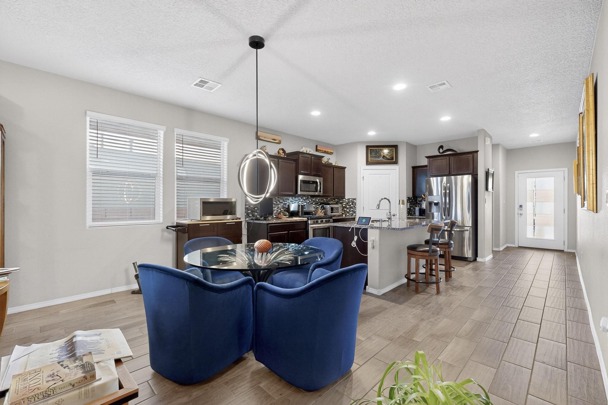 Offering attractive curb appeal, this 4 bedroom, 2 bathroom, DR Horton home is exceptional inside and out. Upgraded cabinetry, floors, counters, appliance package and a walled backyard with an open greenbelt behind the property is the perfect idea! The beautiful Anasazi stacked rock on the front of the home offers character and warmth. The floorplan is smart with a guest bedroom upon entry which can double as an office for great privacy. The heart of the home offers an open feel with the wide entry, open kitchen with an oversized island for casual eating and meal prep, a designated dining area with an open view to the living room and a spacious hallway leading to bedroom #2, bedroom #3, the guest bathroom with full bath and the laundry room with access to the finished garage. The primary suite is tucked away at the rear of the home and boasts the right size en-suite with an oversized walk-in shower, walk-in closet, water closet and plenty of storage to stay organized. Enjoy the privacy of the walled backyard awaiting your landscaping ideas and relish the idea that there is open space behind the property giving you room to breathe. The neighborhood park is seconds away allowing one to enjoy the outdoors even more. Easy living with great value and close to highway access for commuters or enjoy the booming southside of town with restaurants, shopping, schools and medical facilities close by.