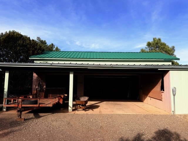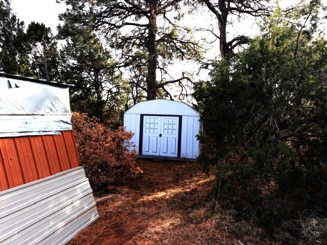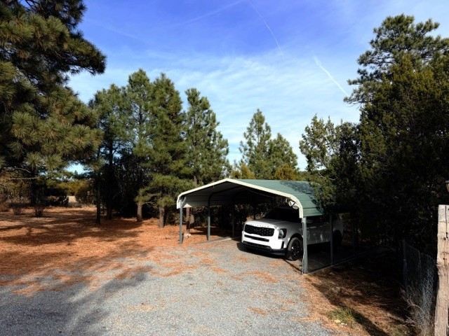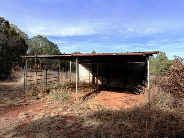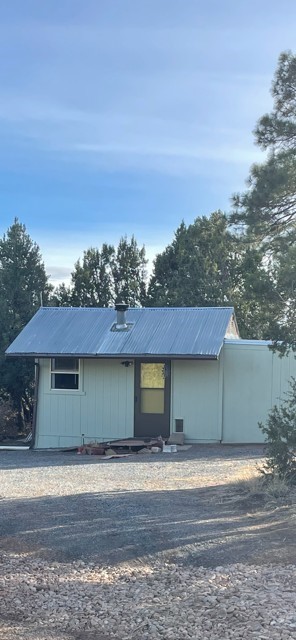 Perched in the wooded area of Ojitos Frios, this rural home with views of the surrounding hills offers tranquility with easy access to Las Vegas, Santa Fe, and beyond. Enter a spacious living area, which leads to an eat-in kitchen. Laundry room off the kitchen has a convenient central location. The primary bedroom suite is on one side of the house, two additional bedrooms with full bath are on the other. Central forced air heat, propane wall heater in primary bath, community water, and propane. A partially enclosed porch runs the length of the front of the home, and there is a flag-stoned patio in the back. A two-car carport services the house. The 5.12 acres also host a large 3-car garage with loft and extra attached storage room and an adorable casita with living area/bedroom, kitchen, and full bath. There are also a storage shed and a partial shelter originally used for horses. The entire property is fenced. Come see it today while it's still available.