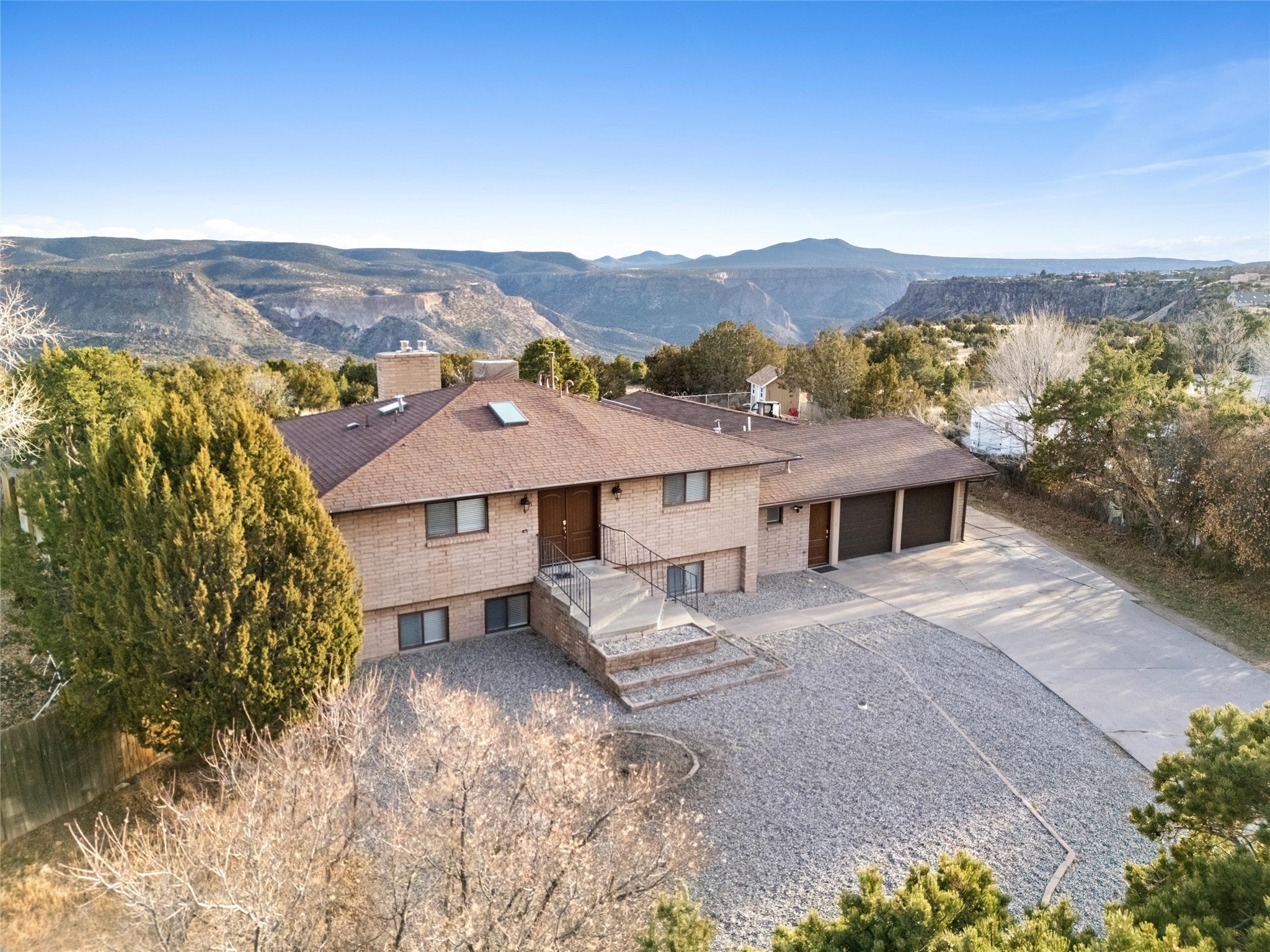 Rarely does a home offer this level of connectivity to nature. Situated on a prime lot overlooking White Rock Canyon. Situated on a prime 0.4-acre lot this 5-bedroom gem is a paradise for hikers, runners, and mountain lovers. With direct access to the Rim Trail and Overlook Park, your backyard is literally a gateway to miles of world-class adventure.Inside, the floor plan is designed for modern flexibility. Three distinct living areas provide ample room for work-from-home offices, media rooms, or creative studios. The updated kitchen and bathrooms offer a turnkey, sophisticated feel, while the oversized two-car garage includes a dedicated workshop for your mountain bikes and outdoor gear.Experience the privacy of a cul-de-sac and the drama of the Sangre de Cristo views. This is the White Rock location you've been waiting for.