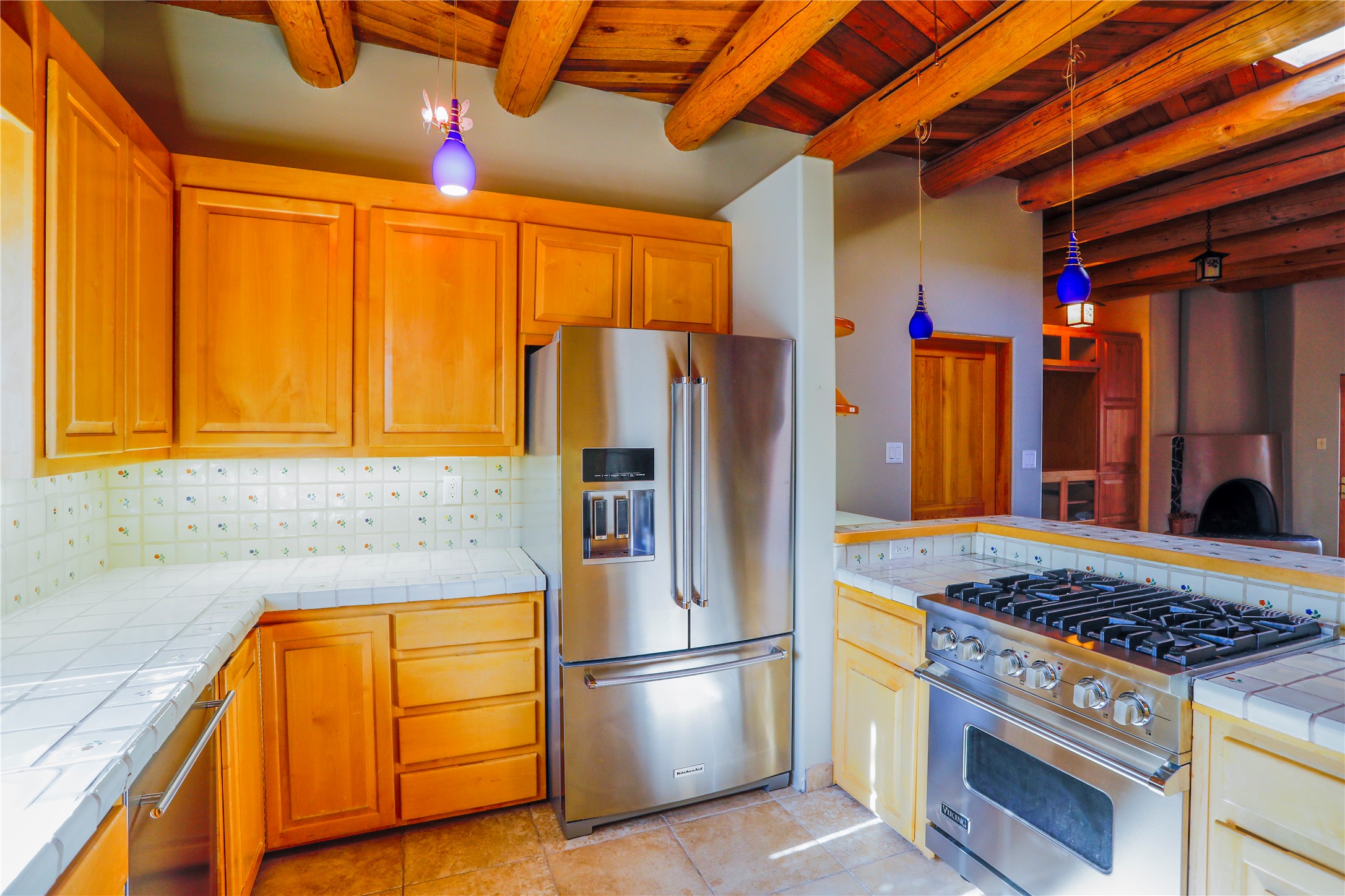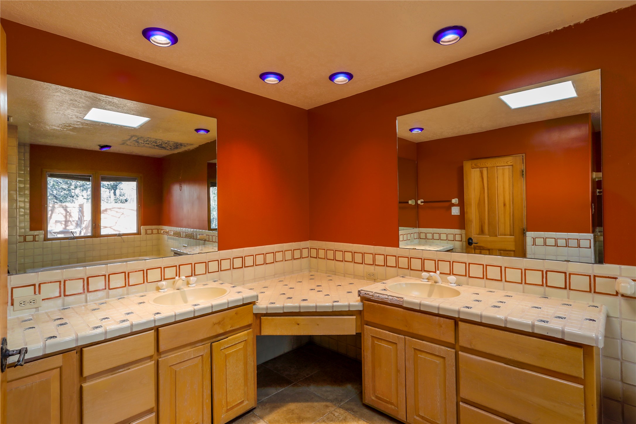 Charming property with unlimited potential in highly desirable neighborhood, this once-elegant home combines classic Pueblo design with warm Southwestern style. The main residence features 3 bedrooms and 2 baths, with an adjacent detached 1BR/1BA guest house offering tremendous flexibility. Soaring viga ceilings, open floor plan kitchen, den, and a blend of tile and wood floors throughout the home. The property features a spacious two-car garage, mature landscaping, and an indoor endless swim spa pool. Tucked away on a private lane located in the desirable Wood Gormley School District, this one-acre property offers views of Sun Mountain. With deferred maintenance throughout the property, list price reflects substantial repairs per pre-listing inspection (included in MLS documents). Tremendous value potential for a buyer willing to roll up its sleeves to restore the splendor of this home.