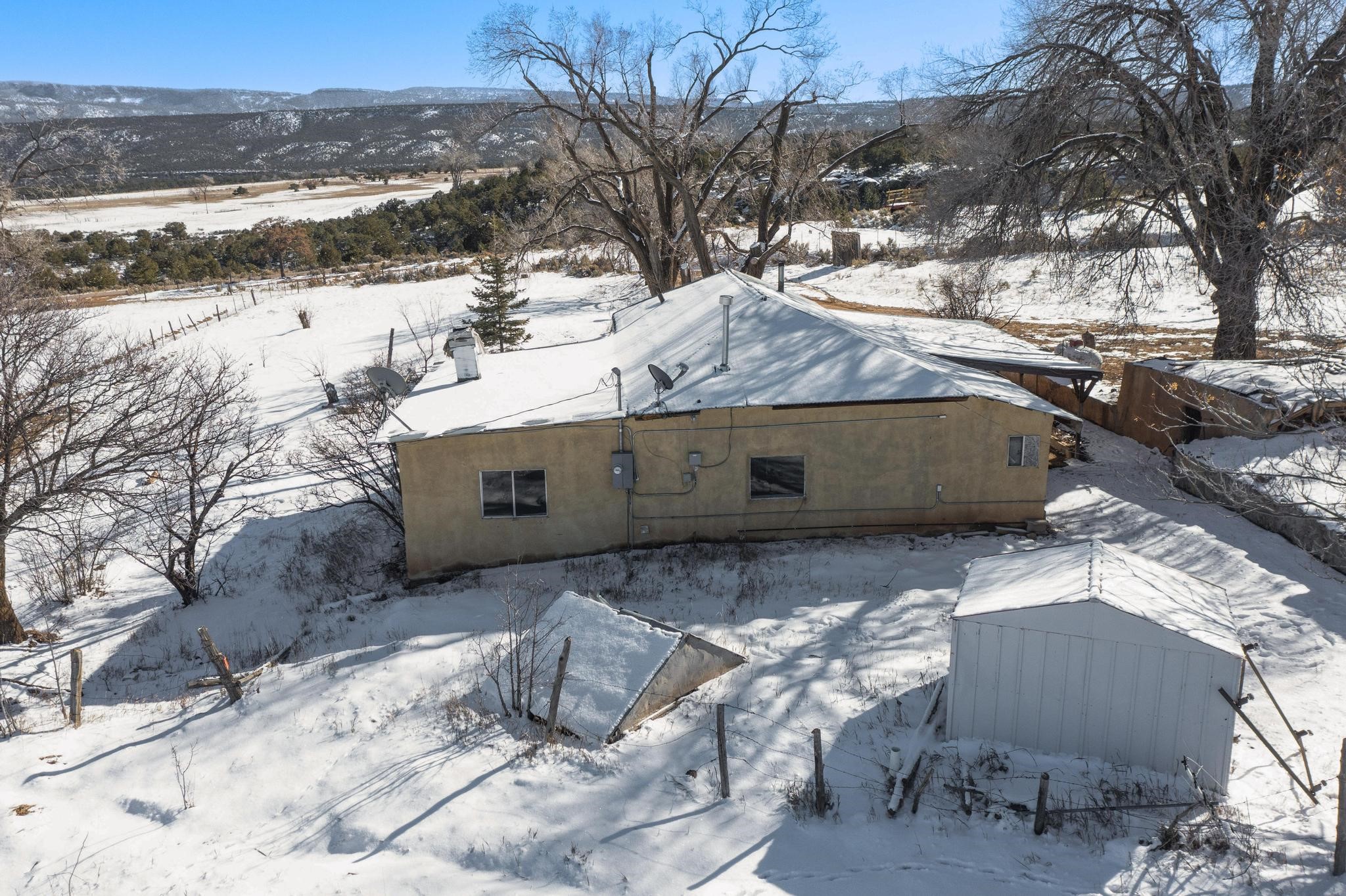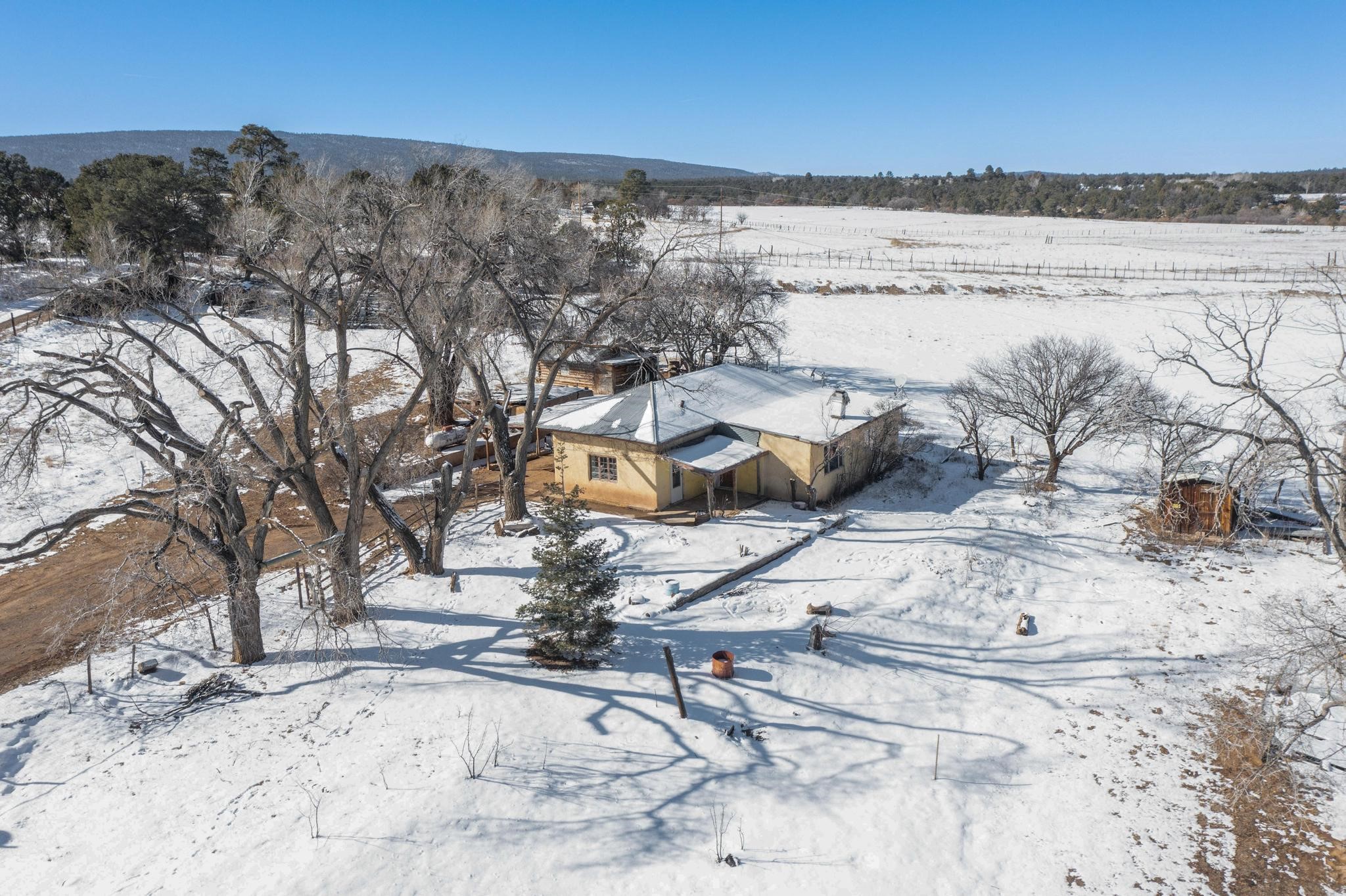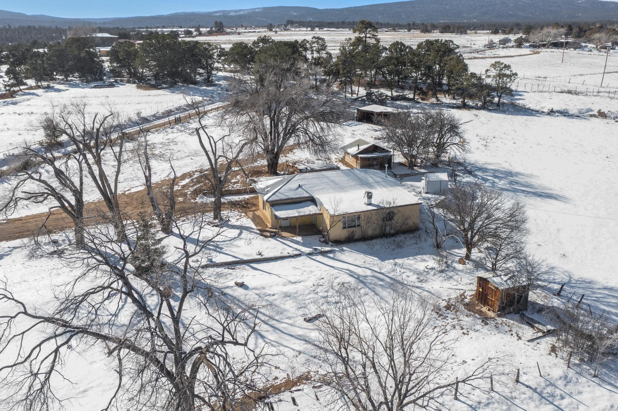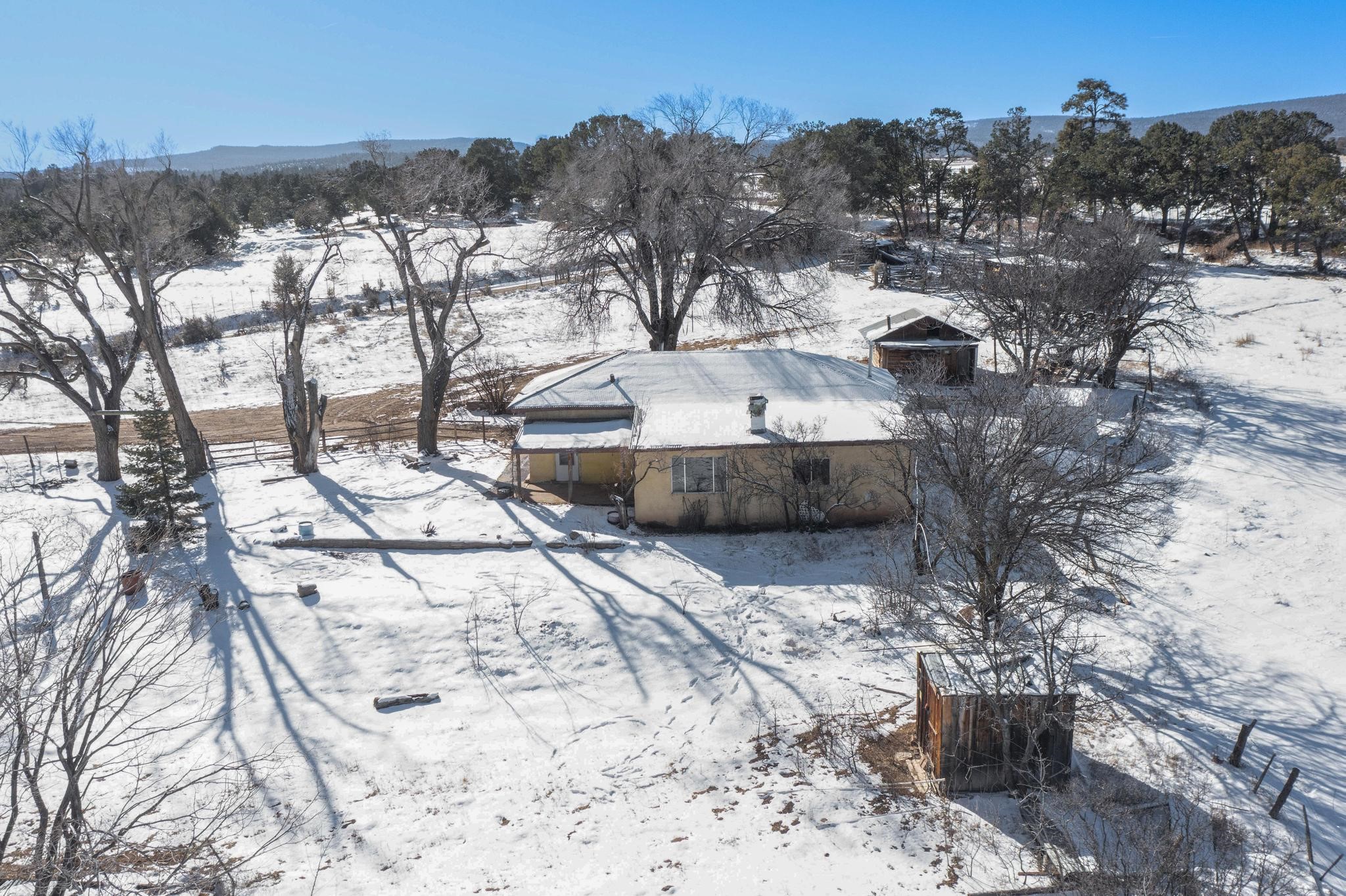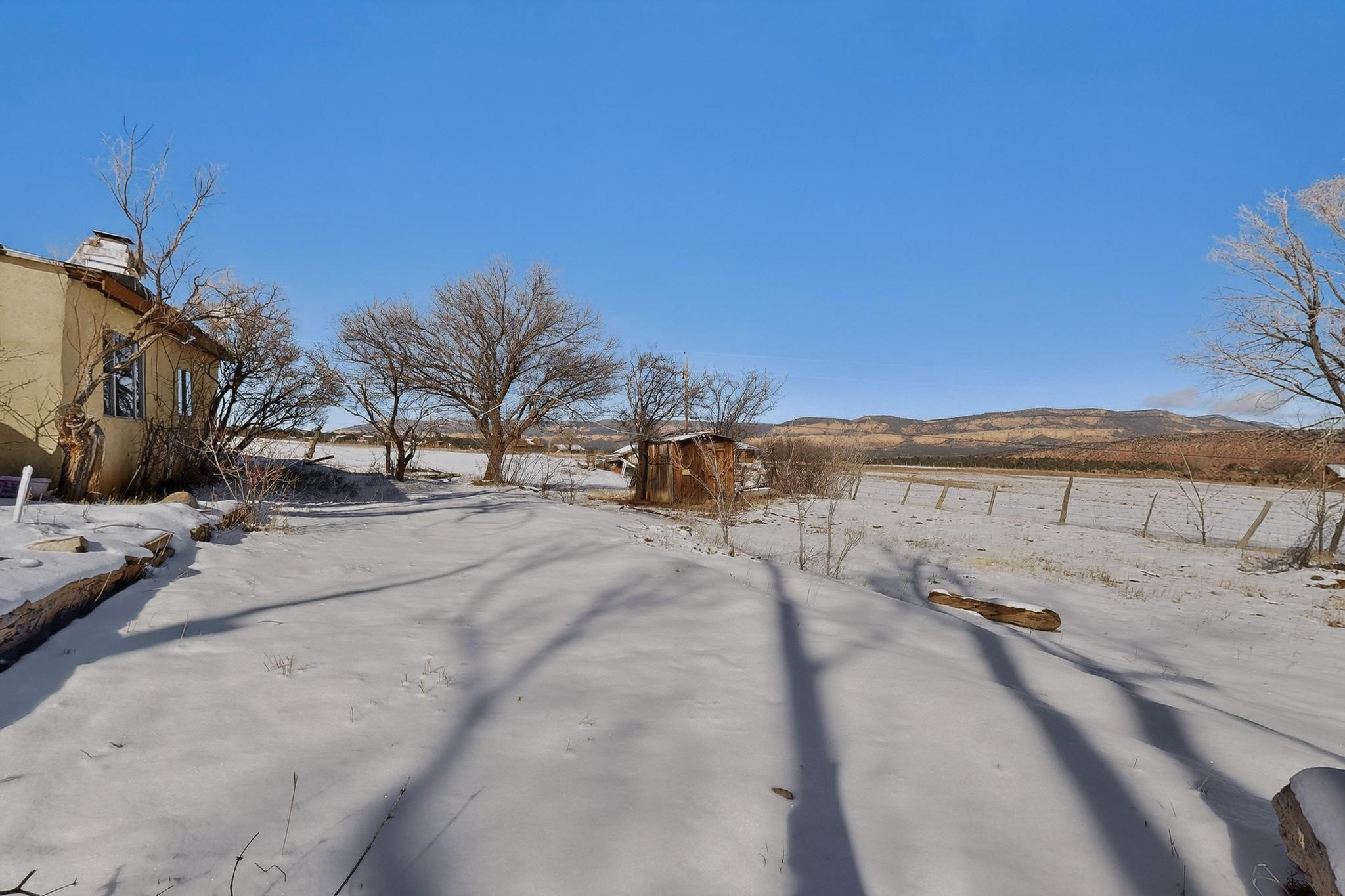 Stop and look no further as you have just found an incredible opportunity to own a little piece of New Mexico heaven! This 2 bed, 1 bath home is situated on a serene 1.65 acres. Located only 20 minutes form Abiquiu Lake, and surrounded by stunning mountain vistas, this home is an outdoorsman's dreams! Large enough property to store all of your toys and close enough to one of the most beautiful lakes that New Mexico has to offer that you could be on the water every day in the summertime! Right out on the front porch you will find stunning mountain views in nearly every direction, including a unique view of the Cerro Pedranal, which is known as the final resting place of Georgia O'Keefe's ashes! Nothing can match the serenity of a property like this one! In the evenings you will enjoy a roaring fire underneath more stars than you could possibly ever count! Don't wait, this is an incredible opportunity at an even more incredible price!