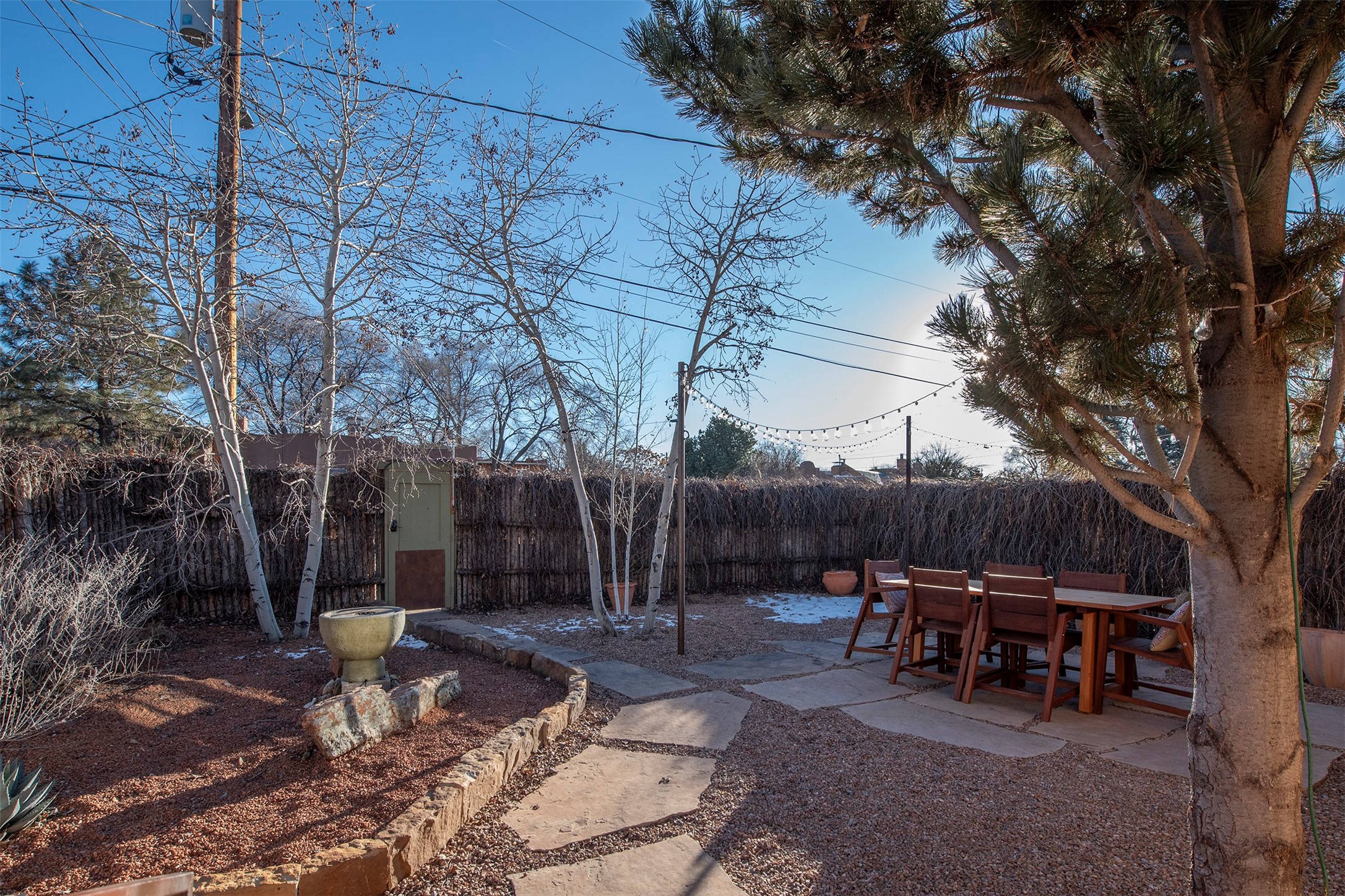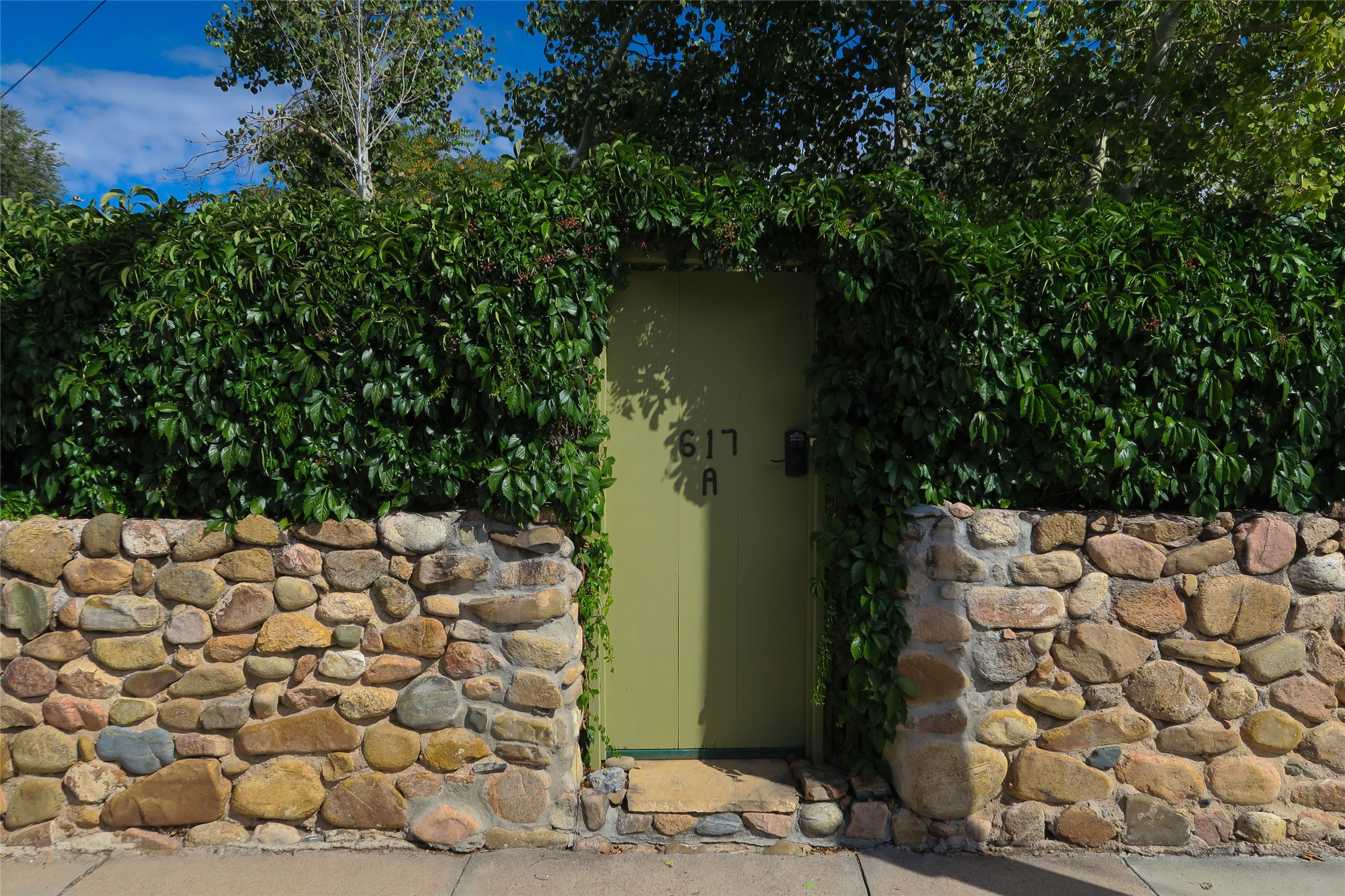 Discover your own private sanctuary in the heart of the Westside Guadalupe Historic District. Tucked behind 6-foot, Virginia creeper-covered coyote fencing, this Pueblo-style condo is a rare historic gem. Step through the stone-walled entrance into a serene garden paradise filled with Aspens, Roses, and Russian Sage, perfectly set for alfresco dining. Inside, the home radiates Southwest warmth with authentic brick floors, rough-cut pine ceilings, and traditional vigas. The light-filled living area features a classic Kiva fireplace accented with Mexican tile and a bright skylight. A thoughtful floor plan includes a cozy bedroom with a wall-to-wall closet and a versatile den/workspace set within thick, traditional adobe walls. With modern upgrades, including new appliances that are all less than a year old. The location is spectacular, just a short stroll to the Santa Fe Plaza, galleries, dining, and the Railyard. This is the ultimate cozy home or perfect little "lock-and-leave" retreat.......Low COA fees were $175 last year......*New Appliances Include LG washer/dryer, Rheem tankless water heater, GE fridge, Cosmo gas range with oven, Broan kitchen hood, Moen garbage disposal, CuZn under sink water filter, Kohler kitchen faucet, Toshiba microwave, Carrier performance series mini-split AC and heating system, Pottery Barn light fixtures in bedroom and the den. Please take our virtual tour.