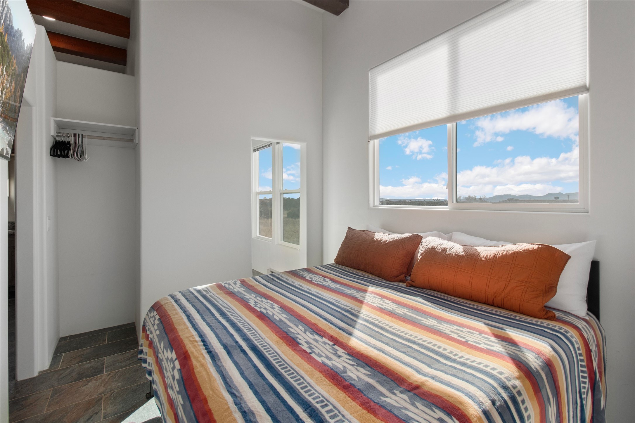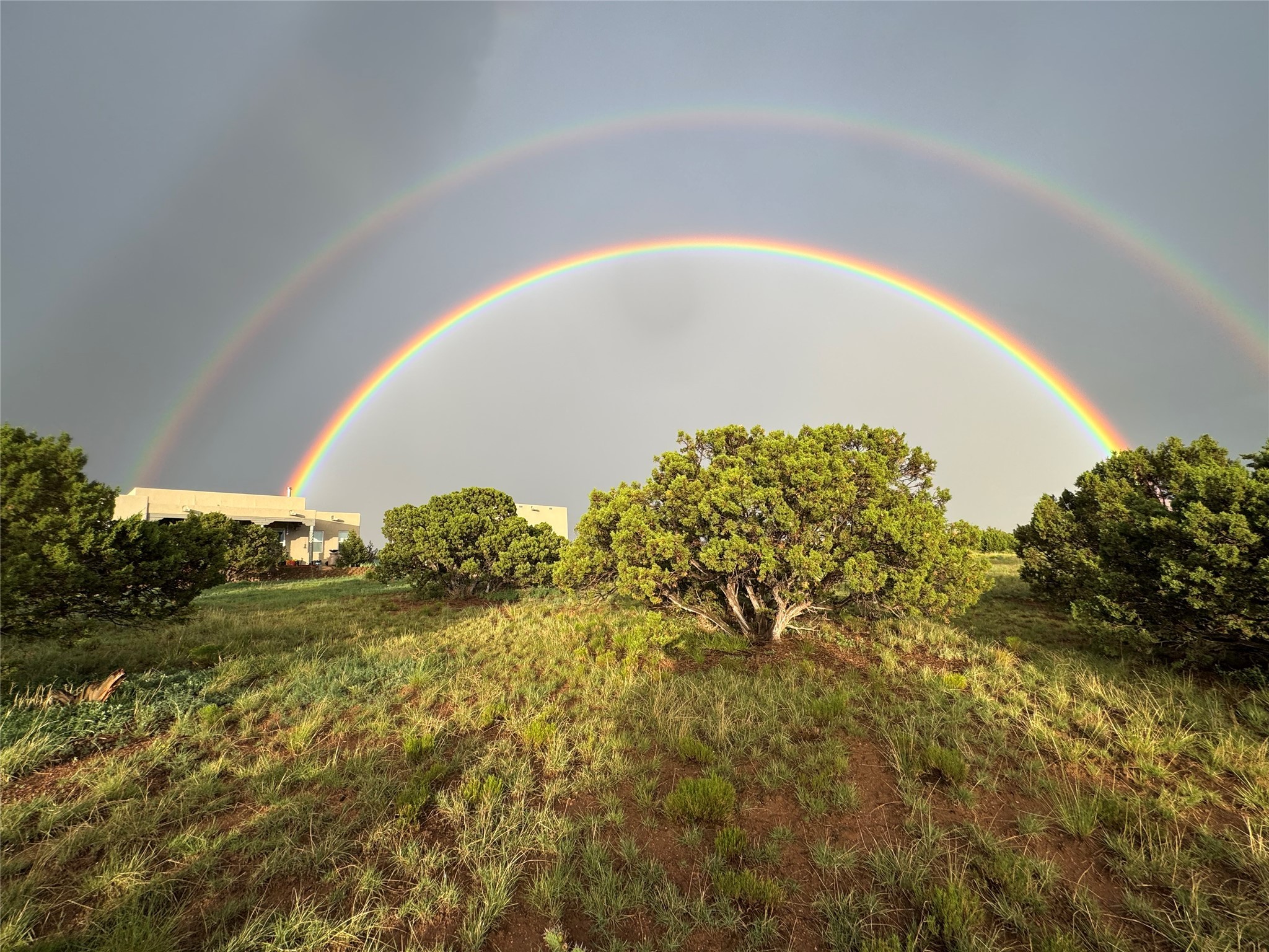 Pride of ownership is apparent the minute you walk into this exceptional 2019 contemporary build in Eldorado. Upon entry into the front court yard, you are greeted by apple, peach and cherry trees. The main house offers 3 bedrooms, 2 baths and open living concept with a split bedroom configuration for owner and guest privacy. Stunning views from the living room and back portal await you on this 1.4 acres. This home was built for energy efficiency as a priority with a HERS rating of 70. A solar panel system attached to the grid was added to the home in 2024 for ultra low electric bills. A Hearthstone Green Mountain convection wood stove takes the chill off those really cold winter evenings. An annually serviced tankless water heater ensures you never run out of hot water. Central cooling and heating. A detached one bedroom casita with a 3/4 quarters bathroom is perfect for guests or an in-law suite, plus an adjacent RV garage. For all the amenities available to homeowners in Eldorado, check out www.eldoradosf.org
