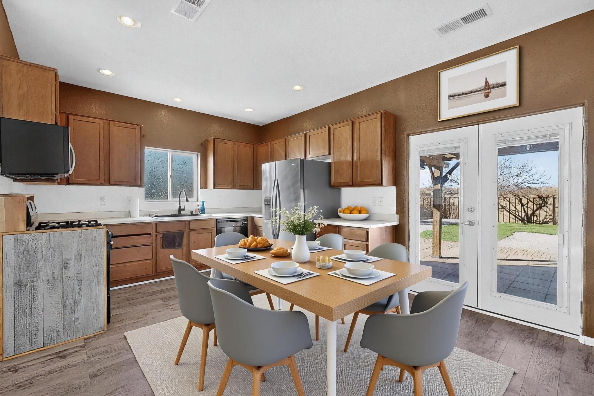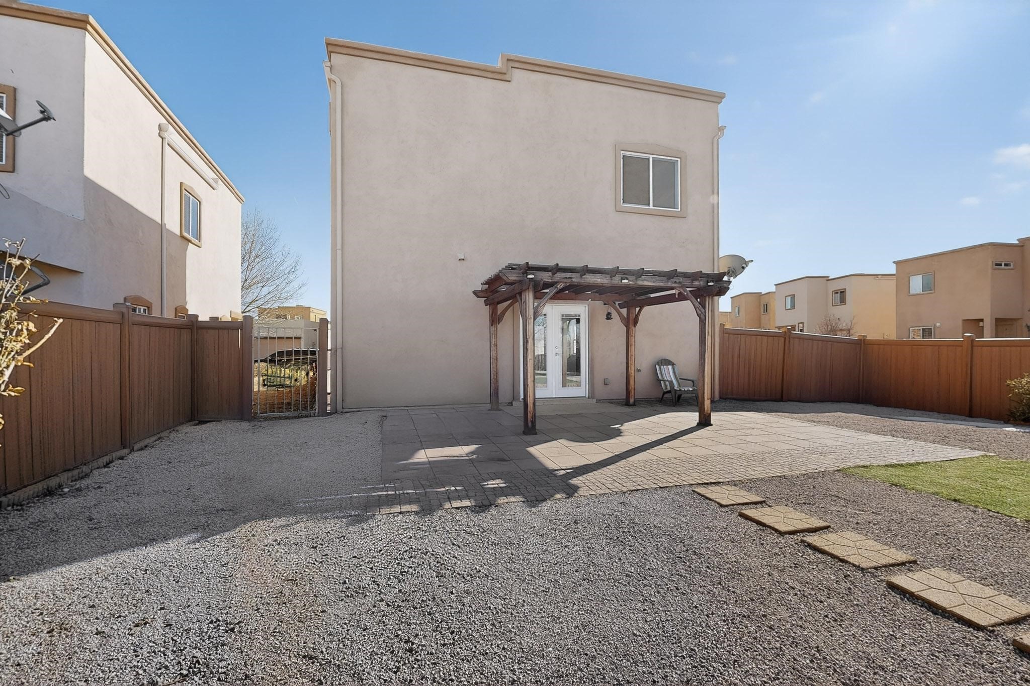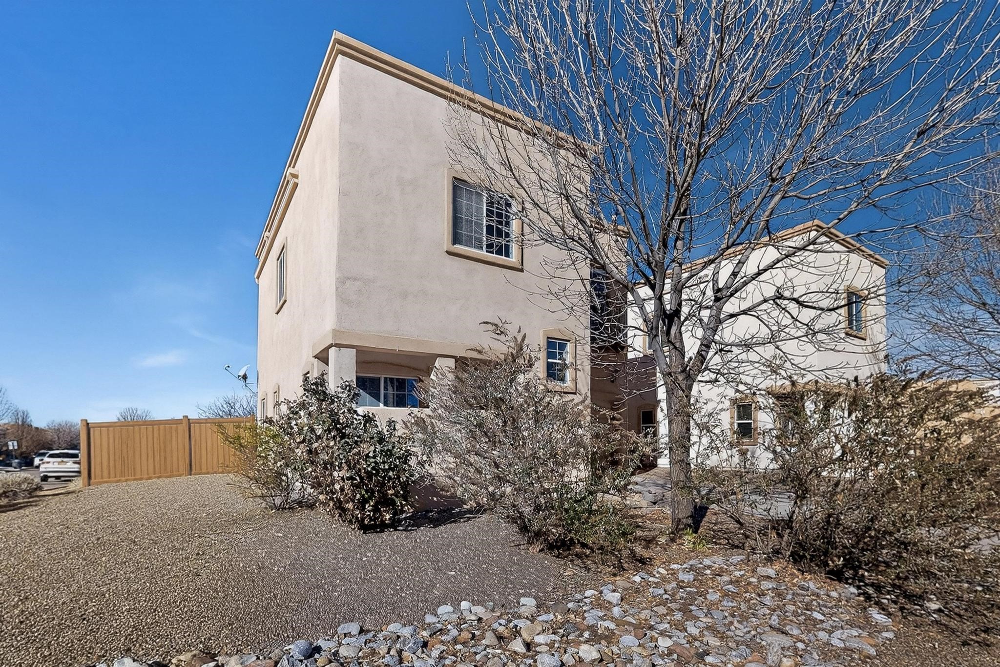 Discover the perfect blend of convenience and community in this newly listed home, ideally situated in a convenient Southside neighborhood. Positioned on a corner lot, this property offers beautiful second-story views and generous outdoor space.Step inside to a fresh, move-in-ready interior that has been recently painted and features hard surface flooring throughout--no carpet! The main level boasts a bright eat-in kitchen with a gas stovetop, perfect for the home chef, along with a convenient guest half-bath. Upstairs, you will find three nice-sized bedrooms and two full bathrooms.Outdoor living is a highlight here; entertain guests under the charming pergola in the spacious backyard or enjoy the community's green space. Peace of mind is ensured with a brand-new water heater (installed Dec 2025).This location is a commuter's dream with easy access to I-25, Veterans Memorial Highway 599, and the Railrunner 599 station. Enjoy a vibrant lifestyle with nearby walking trails, Southside shopping, and the popular Santa Fe Brewing Company. The active HOA fosters a true neighborhood feel with movie nights and events for kids. Schedule your viewing today!