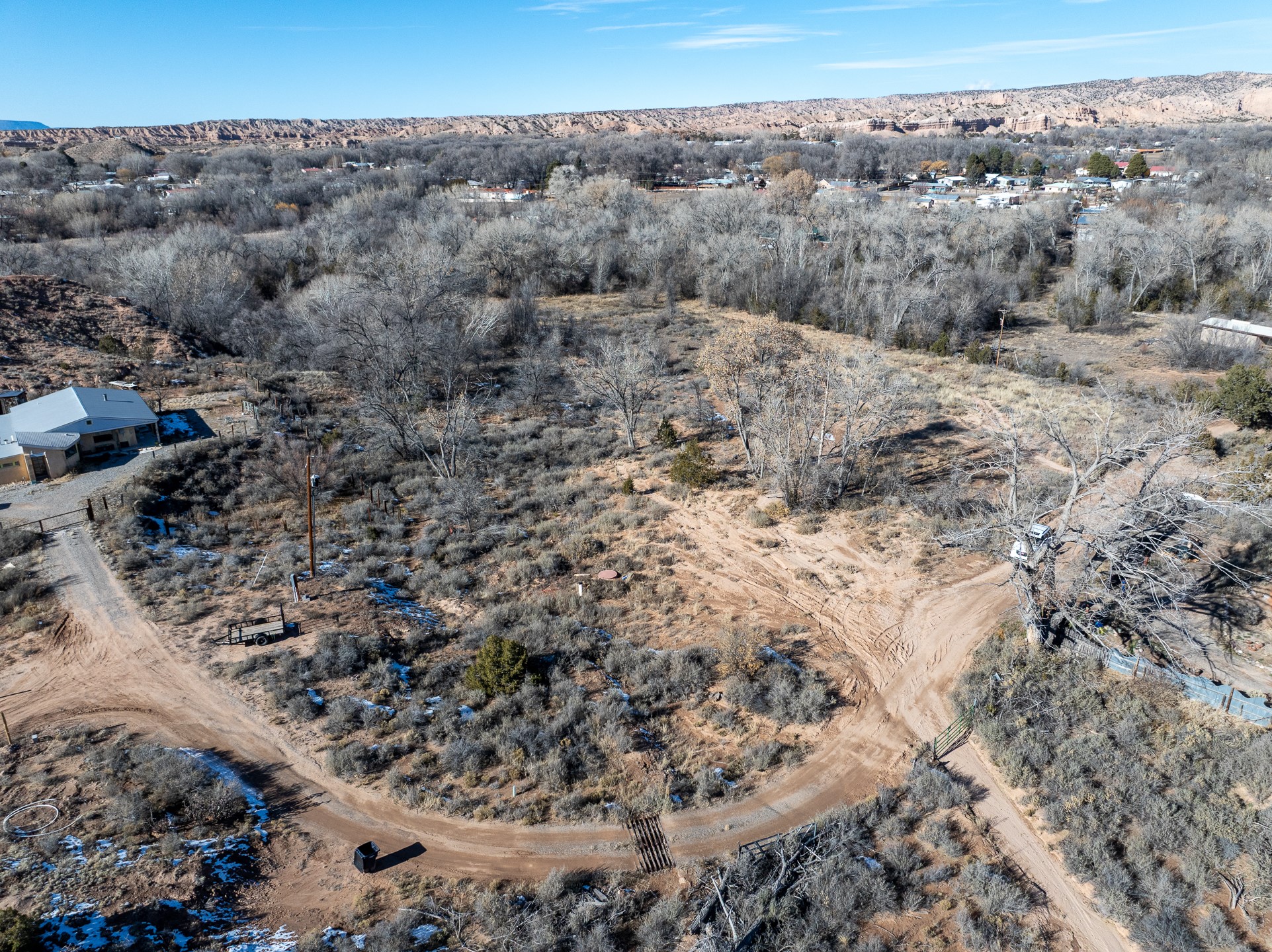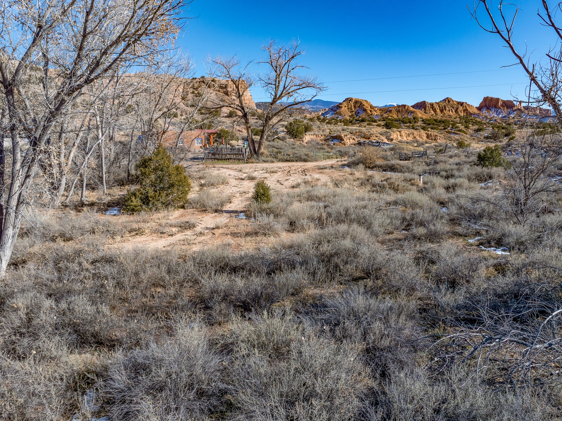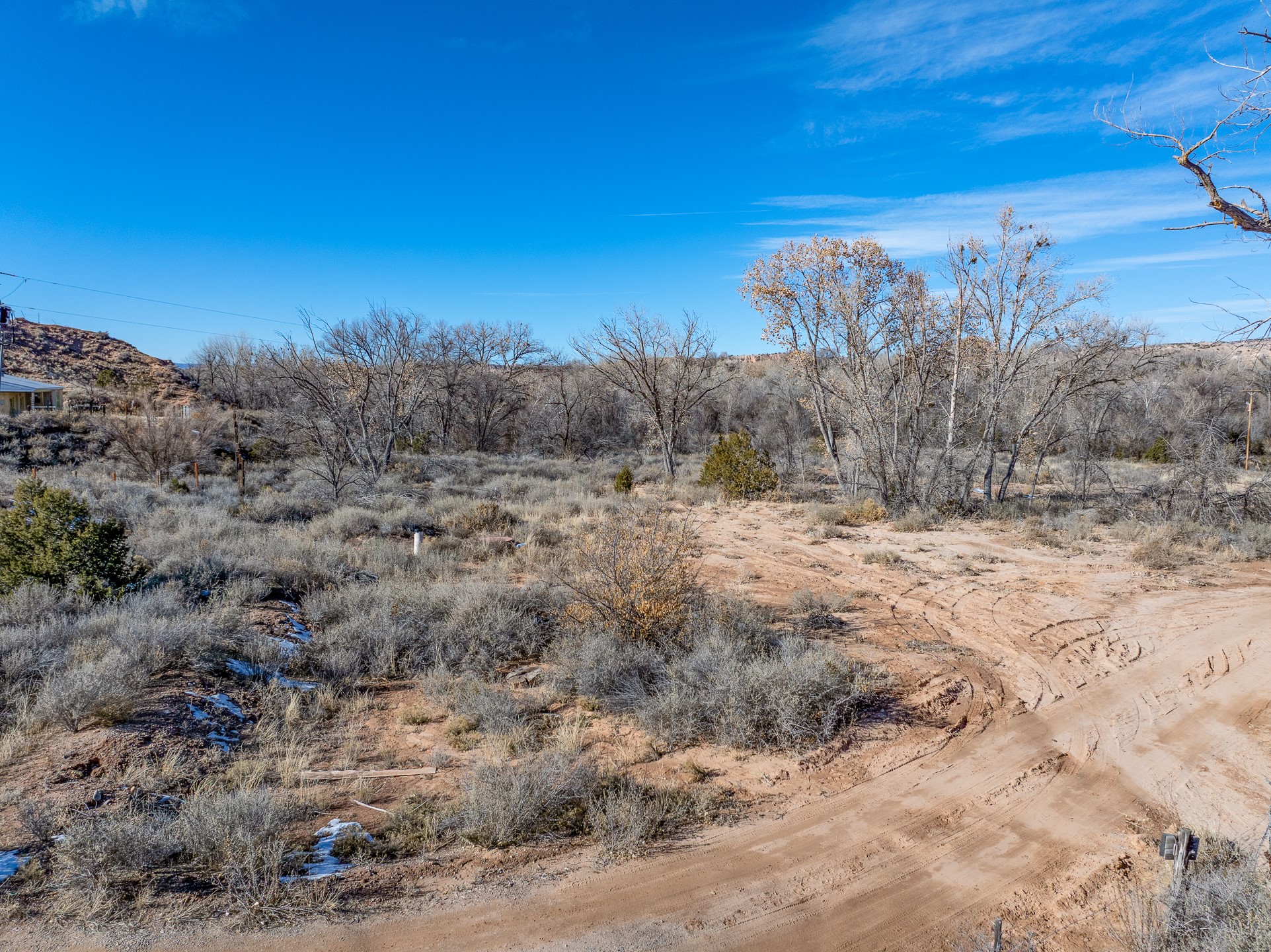 Capture a piece of gorgeous Chimayo land on .95 lush acreage!! Flat land with easy building sites provides for house, guest house and storage buildings! Trees and birds abound! Access to BLM land is available as well. There is a shared well on the property and a gate already provided for access into the property. Water rights also will transfer!! Owner may finance with 20% down.