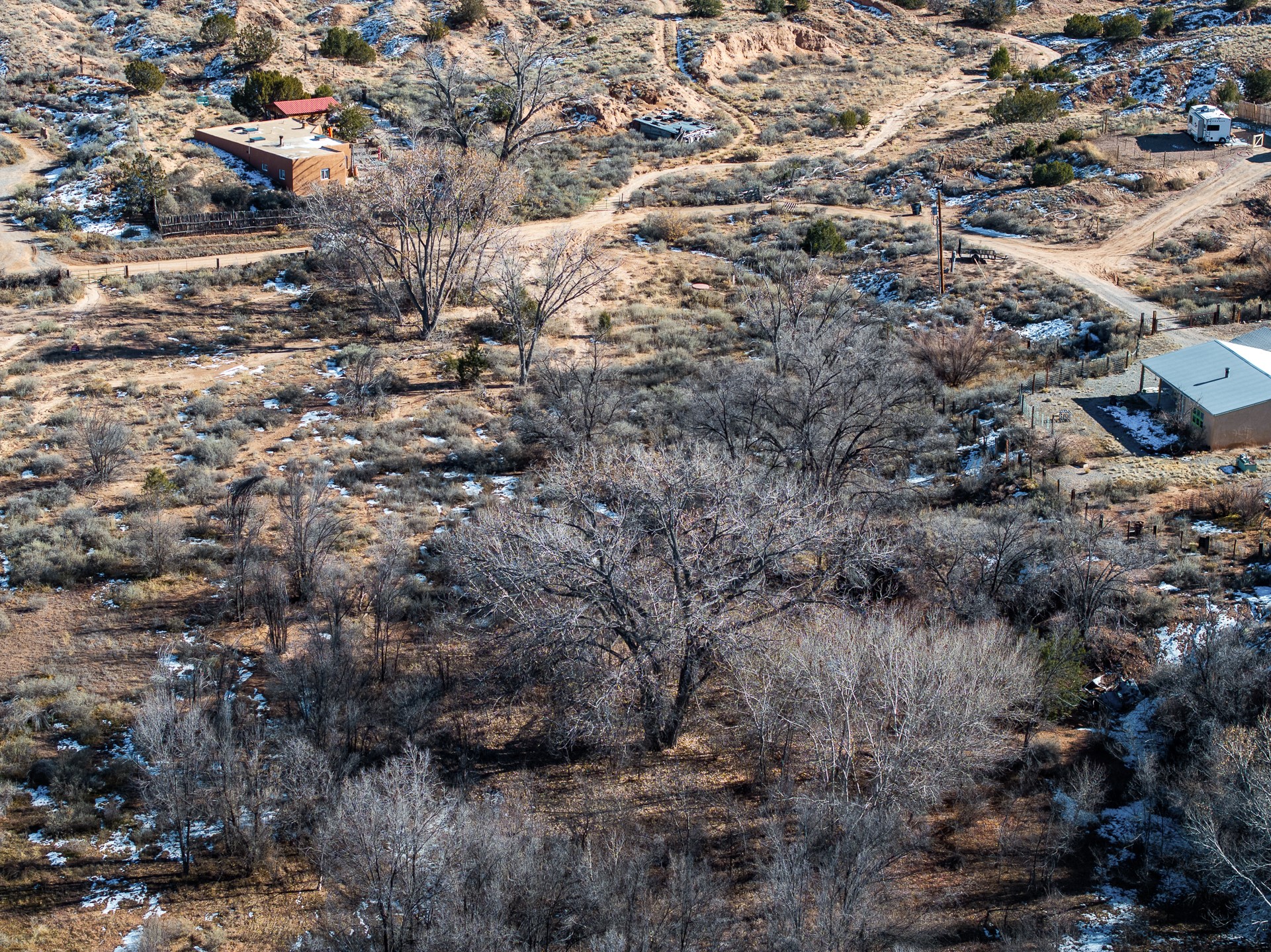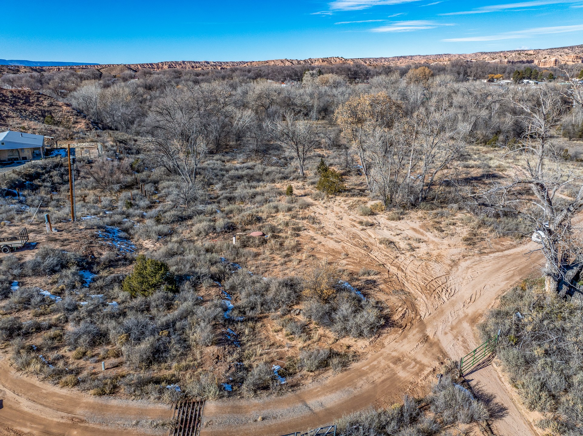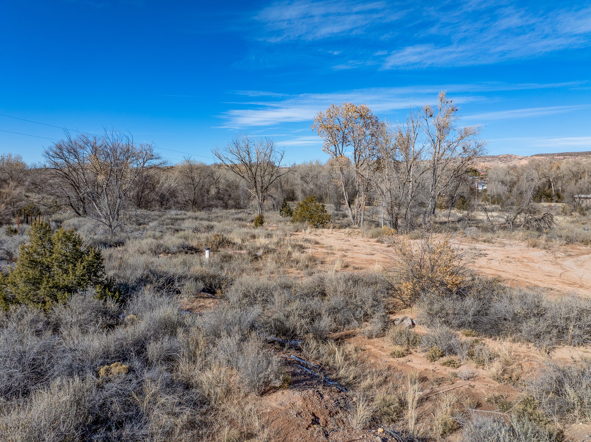 Capture a piece of gorgeous Chimayo land on .95 lush acreage!! Flat land with easy building sites provides for house, guest house and storage buildings! Trees and birds abound! Access to BLM land is available as well. There is a shared well on the property and a gate already provided for access into the property. Water rights also will transfer!! Owner may finance with 20% down.