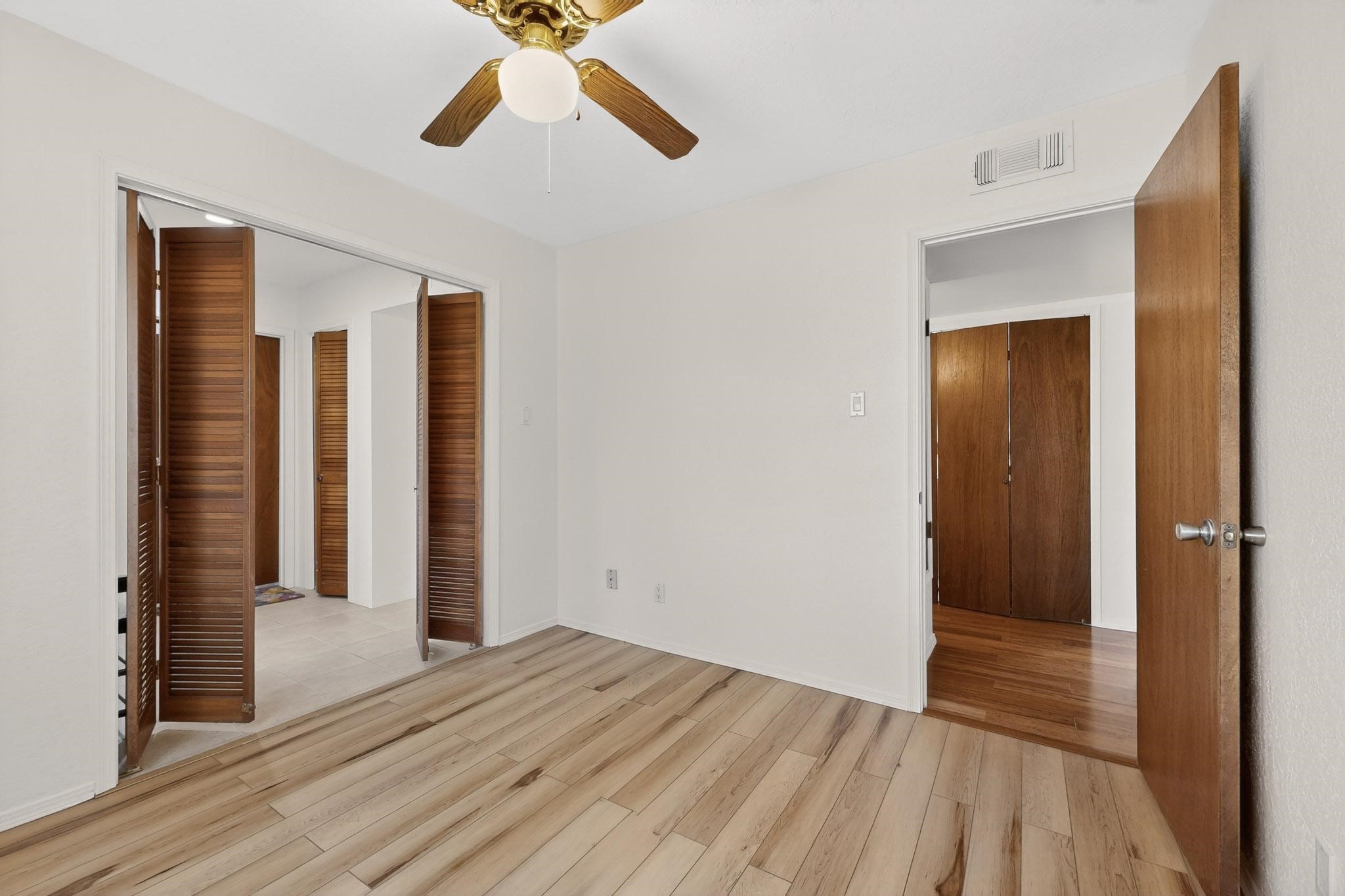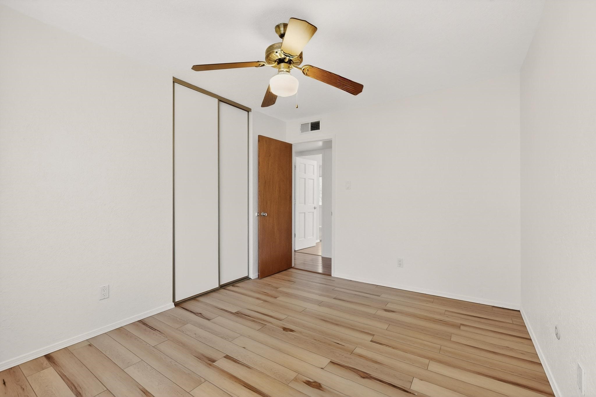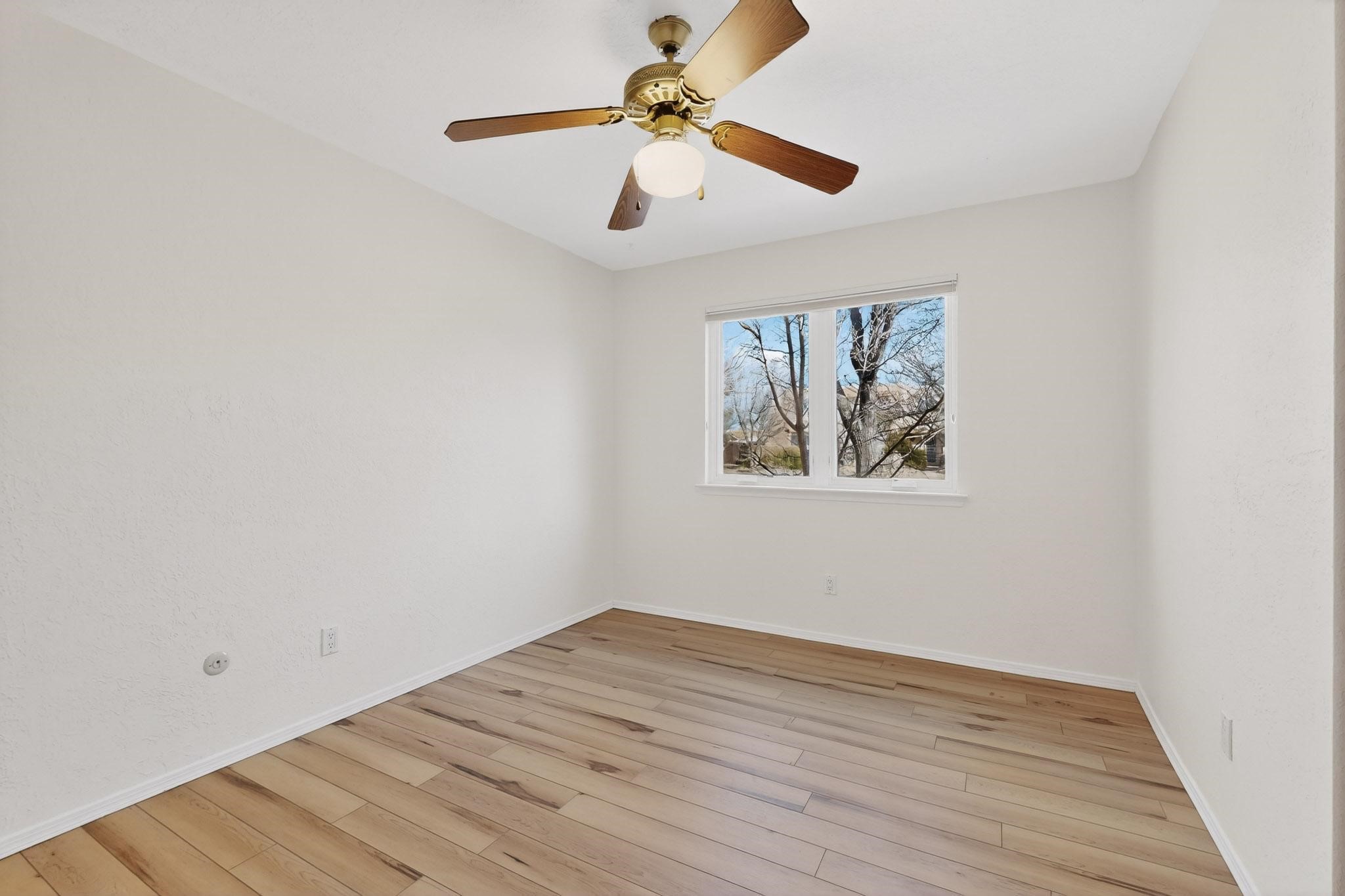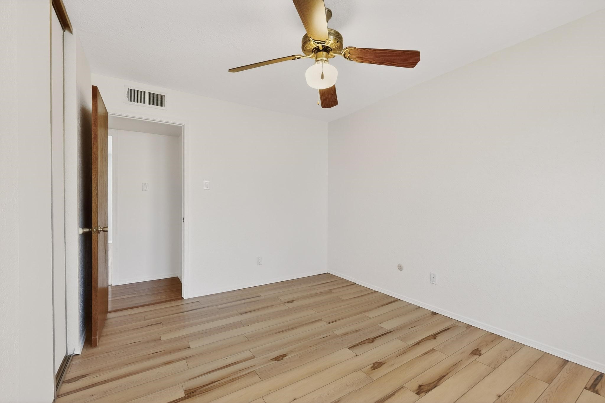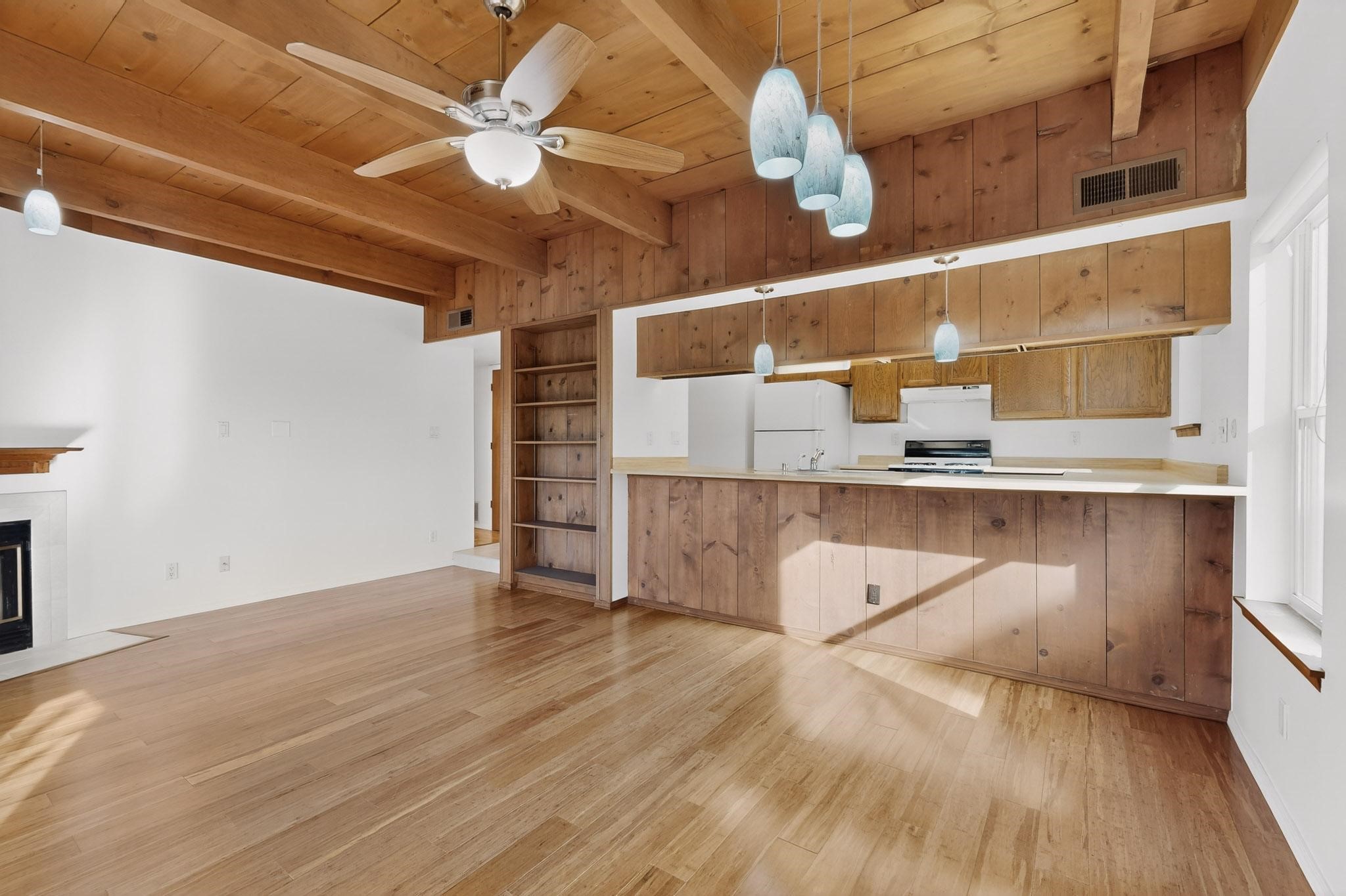 Charming, updated, freshly painted and super cute single level home offers 1325 +/- sqft, 3-bedroom, 2-bath, 1-car finished garage of comfortable living. The third bedroom would make a convenient and light office. Perfectly situated on a wonderful lot backing to open space/arroyo, this property offers a spacious feel. Inside, the entryway leads to the inviting living room featuring wood beams, wood built-in bookshelves, dining area, a wood-burning fireplace, and sliding glass doors -- adding warmth, light and character. The kitchen boasts abundant cabinets, generous counter space, a pantry, gas range, stainless-steel dishwasher, and breakfast bar--ideal for casual dining or entertaining. The primary suite offers two closets and a remodeled ensuite bath with a stunning, tiled walk-in shower. Step outside to enjoy the easy-care, walled backyard with a covered portal, perfect for relaxing. Additional highlights include: New stucco on most exterior walls-Ample storage closets throughout-Large capacity washer/dryer-Forced air heat-Ceiling fans-NEWER windows-NEWER pendant and can lighting light fixtures-Dimmer switches-NEWER tile and Bamboo wood floors, and NEW laminate flooring in 2 bedrooms (No carpet)-Top/down bottom-up Hunter Douglas blinds-and so much more. Located in the La Villa Serena subdivision, approximately 10-minute drive to the Santa Fe Plaza, a few minute walk to Ragle Park, the Arroyo Chamiso and Rail Trails. This move-in-ready home close to schools, restaurants, shopping and hospitals blends warmth, character, and modern updates--a perfect combination of comfort and style.