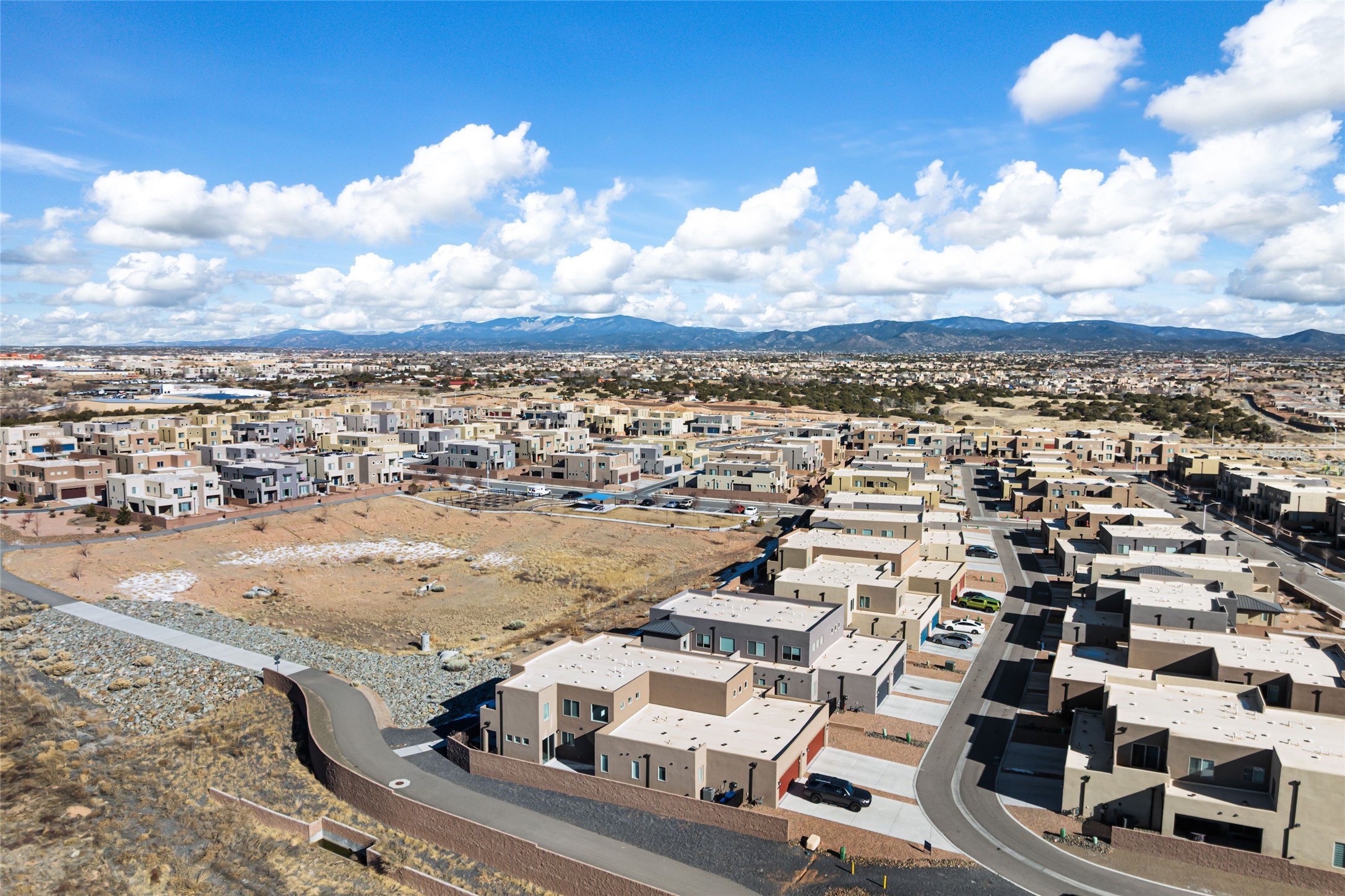 Convenient Las Soleras 2022 built 3-bedroom, 2.5 bath townhouse with tall ceilings and plentiful natural light. Open concept downstairs with easy flow for daily living and entertaining. The modern kitchen is appointed with island/breakfast bar and stainless steel appliances. The main floor primary suite features an ensuite bath with walk-in shower, walk-in closet and direct access to an outdoor patio--perfect for morning coffee or evening relaxation. The laundry room is located downstairs as well. Upstairs, you'll find a generous second living area, offering flex space for a media room or studio. Adjacent to this living area is a versatile loft office space providing an ideal setup for remote work or study. The other two guest rooms are located upstairs with a shared full bathroom. Two car garage. Bonus highlight is a paved trail right outside your door. Excellent location close to Presbyterian Santa Fe Medical Center with easy access to all the shopping and dining on NM 14-Cerrillos Rd. and the Santa Fe Plaza.