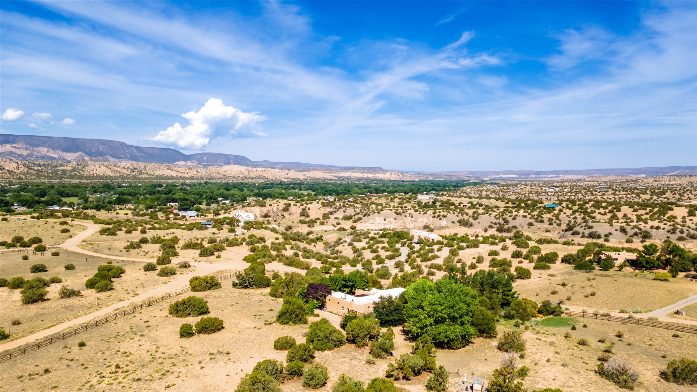 42 Private Drive 1613B is located in the Mesa de Medanales Subdivision on a gentle mesa above the Chama River Valley. The setting offers open views in all directions, with primary views toward the Jemez Mountains and the Sangre de Cristo Mountains. Mature trees and established landscaping surround the home, reflecting years of careful gardening and creating privacy and shade that make the property comfortable year round. A motorized gate is located at the entrance to the property.The home is an adobe constructed, two bedroom, two bath pueblo style residence with exposed beams and Southwest finishes throughout. Very few homes in New Mexico are currently constructed using traditional adobe. Many long time adobe homeowners consistently describe these homes as having a solid, quiet feel that is noticeably different from modern construction. The kitchen includes stainless steel appliances. A separate office provides additional flexible space. Heating is provided by radiant in floor heat, with a wood burning insert in the living room.The west facing patio includes a shade ramada, brick flooring, and a wood burning kiva fireplace. Recent updates include a new roof, new stucco, a new well pump, and a recently serviced septic system.The property consists of five acres and includes a three car garage. The location offers a short drive to Abiquiu and an easy commute to Espaola, Los Alamos, or Santa Fe.Additional Photos available upon request.