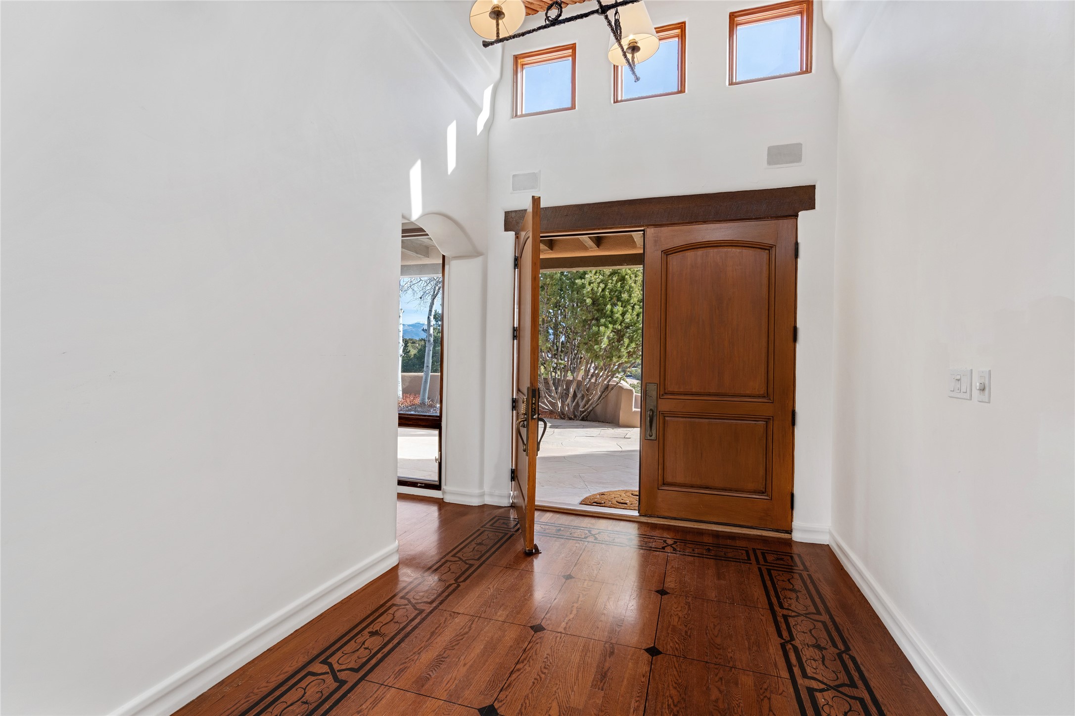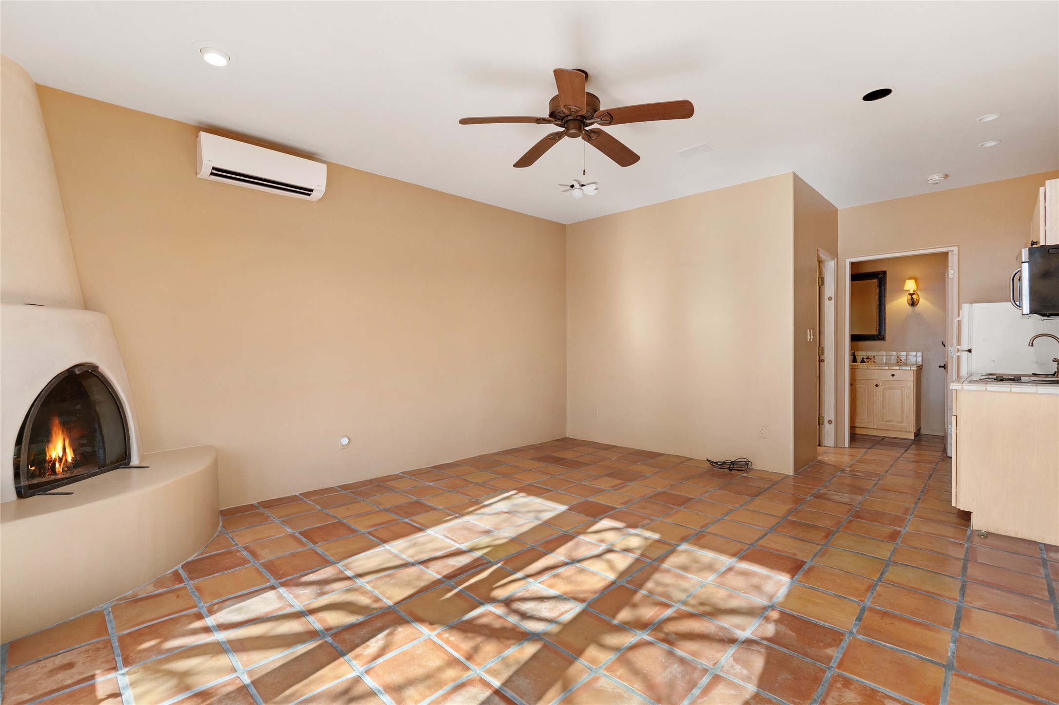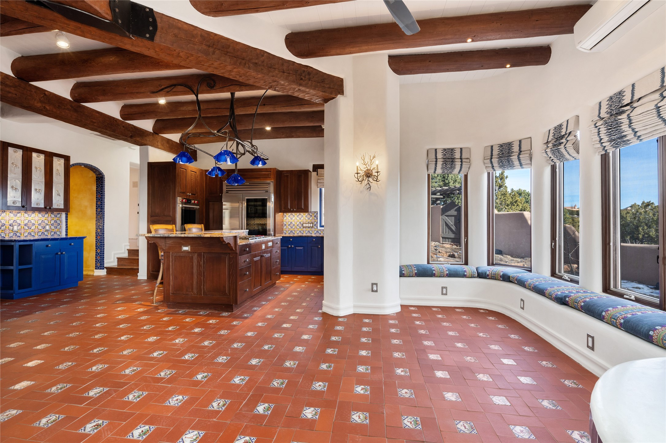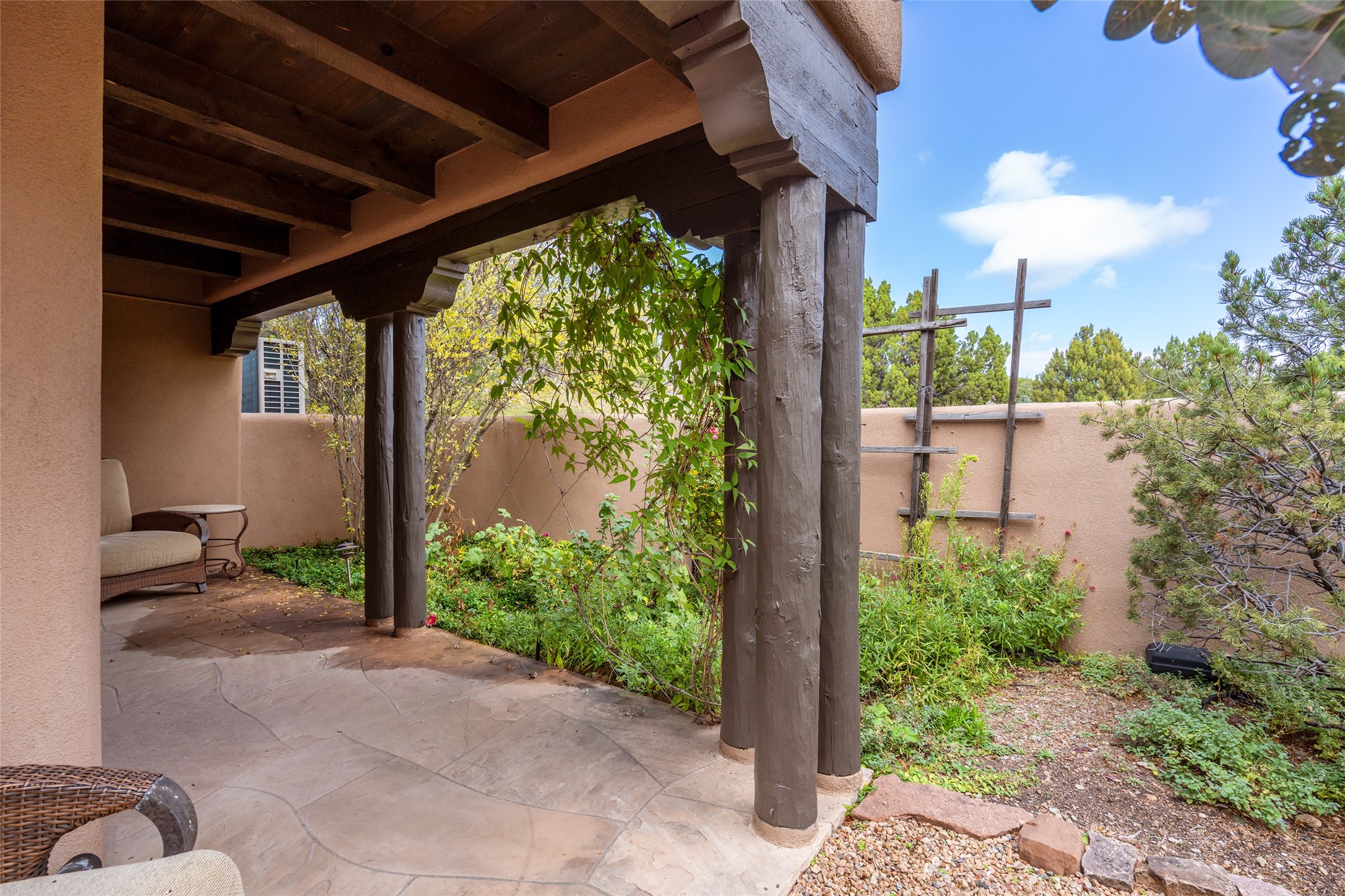 Expansive two bedroom home with guest house and studio. Exceptional views from your front porch and broad portal and large private back yard area perfect for entertaining. 230 square foot lap pool and hot tub for relaxing or entertaining. The main house has a grand foyer ready for art work with a back door showcasing the rear portal and back yard. The large kitchen has plenty of cabinet space, a butlers pantry, quartz counter tops, Wolf 5 burner stove, Cove Dishwasher, Subzero refrigerator, and a cozy banco/breakfast nook offset by a kiva fire place. Adjacent to the kitchen is a dining room that can easily seat 8 with nice views into the back courtyard and front yard. Down two steps past the office and large great room with fireplace to the massive main suite, full bathroom, soaking tub, two walk-in closets, sitting areas and easy access to the 8' hot tub. Guest house has a full kitchen and full bath. Detached studio ready for your endeavors. 2025 roof update with 5 year limited warranty on labor and materials. Must see this gem. Set up a showing today.