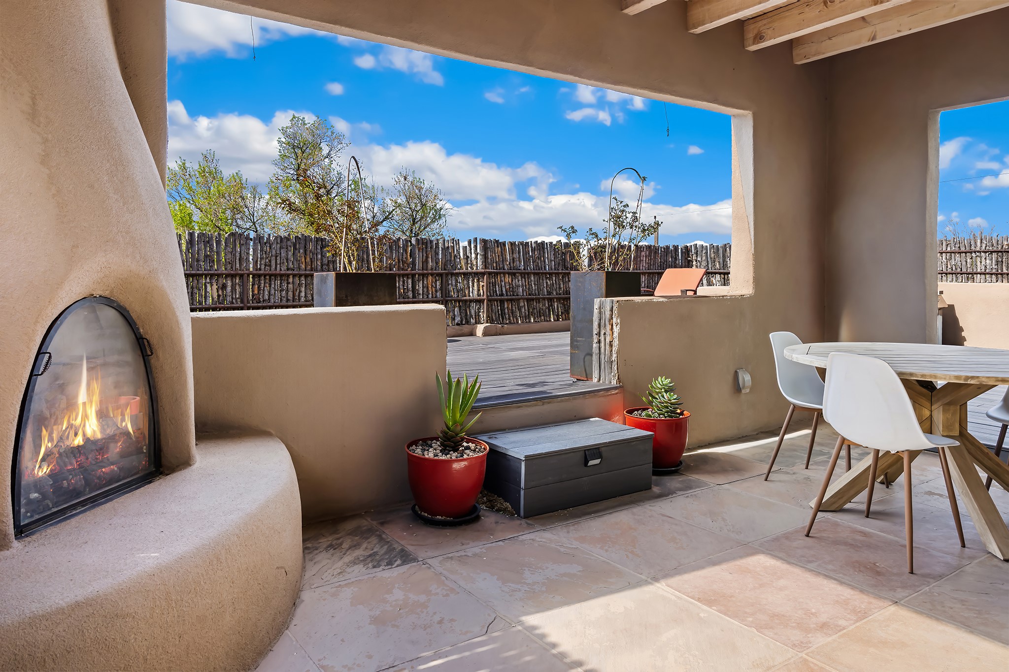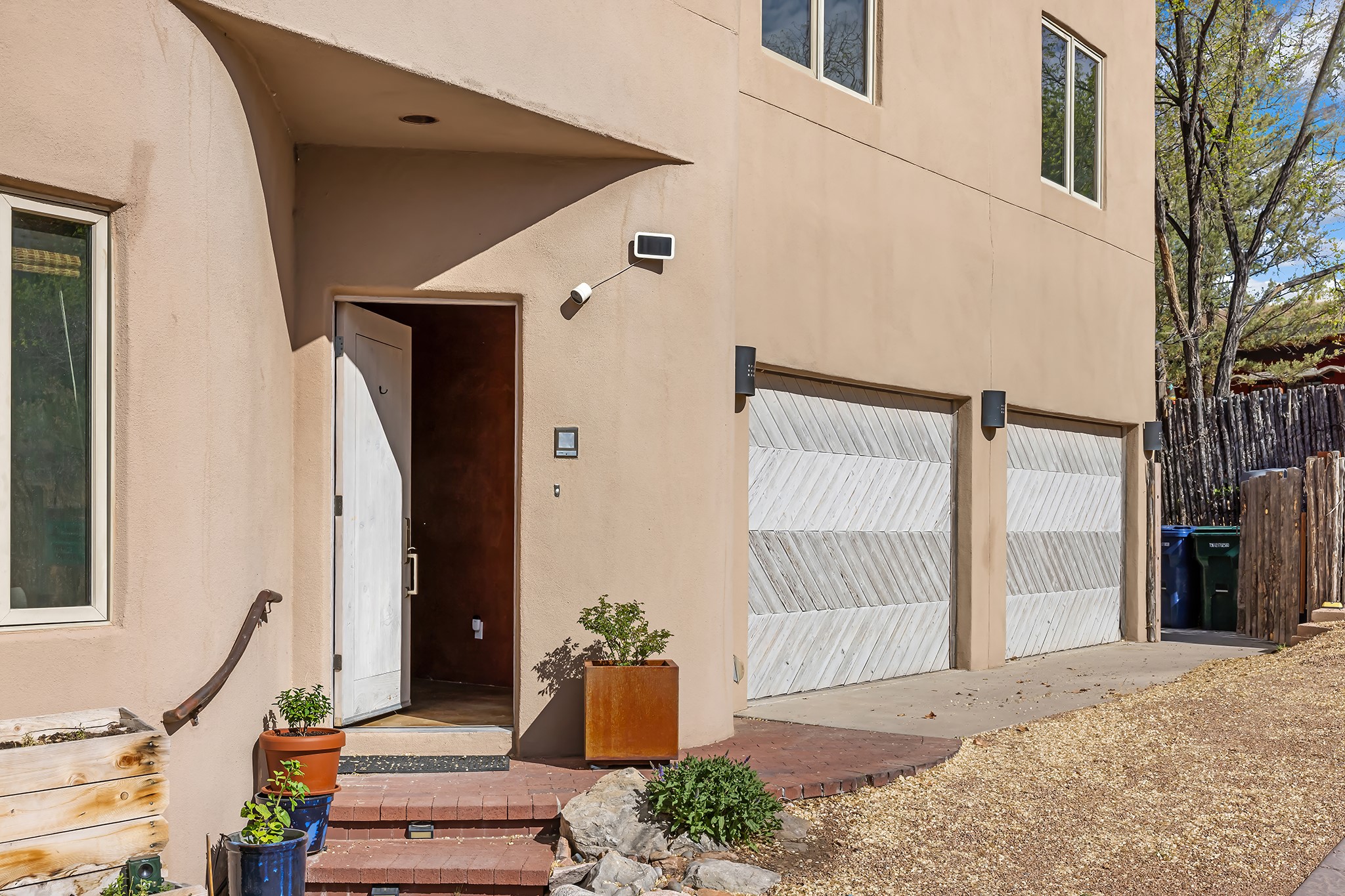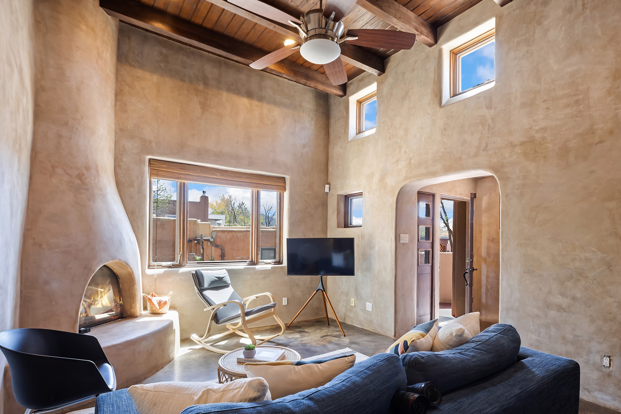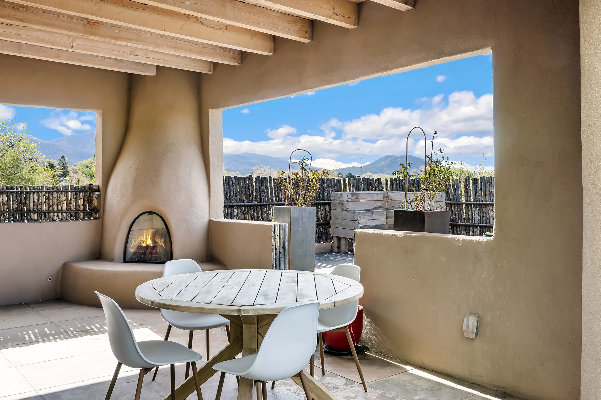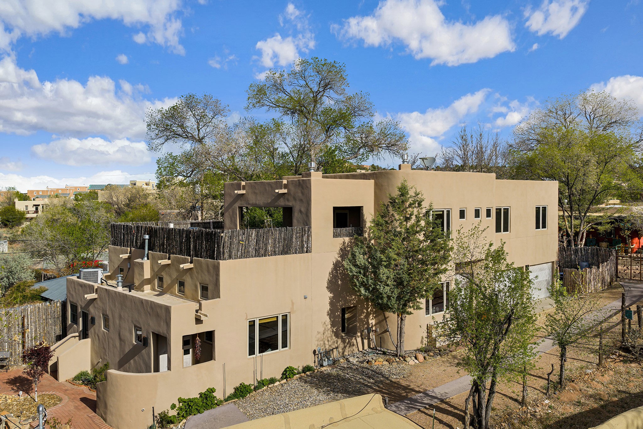 Rarely does a Downtown Santa Fe compound offer this level of versatility, character, and convenience. Just moments from the Historic Santa Fe Plaza, this exceptional property includes a 3-bedroom, 3-bath main residence, an attached 2-bedroom, 2-bath casita, and a coveted 2-car garage with oversized storage space -- a true luxury in the downtown area. The main residence offers a contemporary Pueblo feel with stained concrete floors, kiva fireplaces, and all bedrooms upstairs. A spacious, partially covered view deck with mountain vistas, city lights, sunset skies, and gardening beds creates an ideal setting for entertaining or unwinding. The separately metered casita, with high ceilings and generous space, is perfect for guests, extended family, or rental income. Close to renowned restaurants, art galleries, and boutique shopping, this rare in-town property is well suited as a primary residence, second home, or investment opportunity. Potential assumable financing with a 3.5% interest rate further enhances the offering.