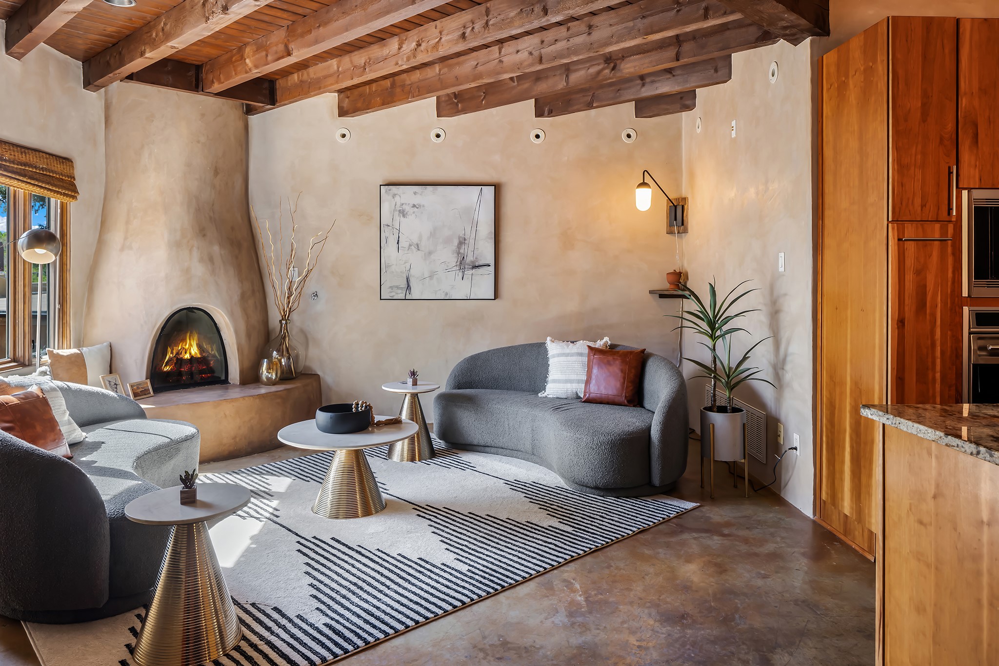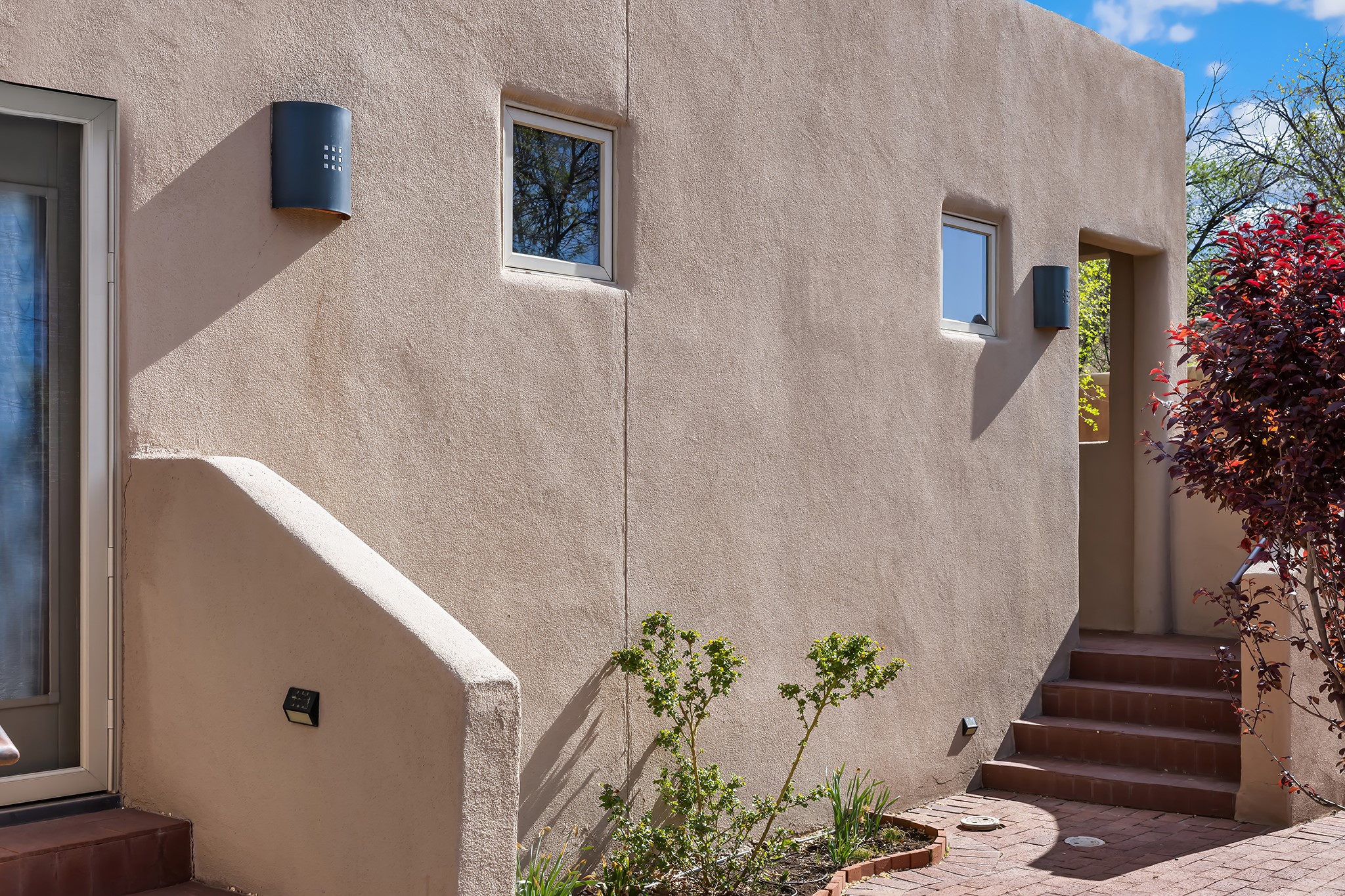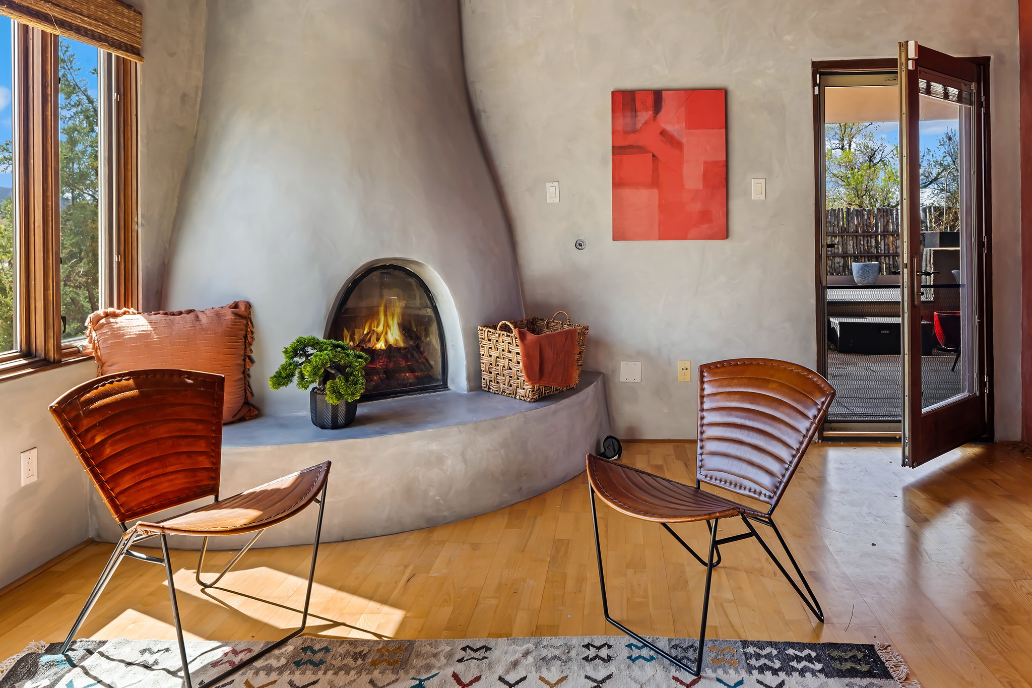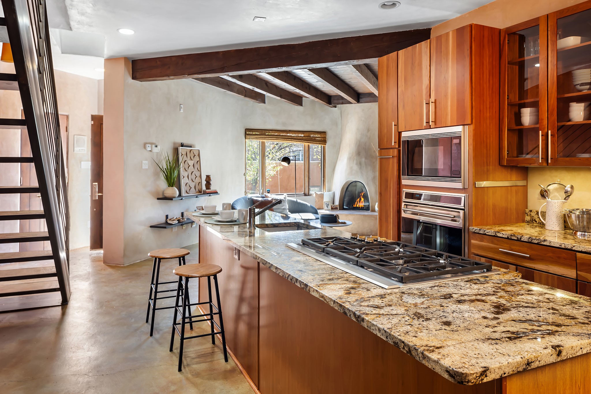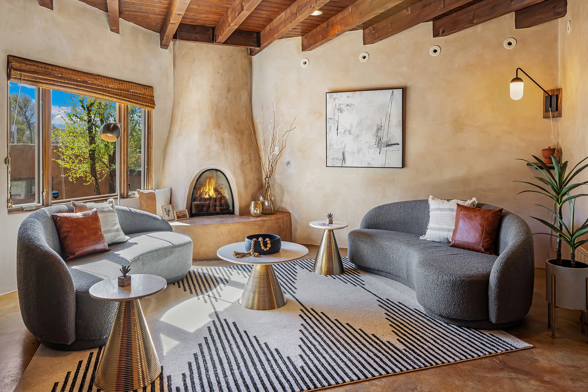 Rarely does a Downtown Santa Fe compound offer this level of versatility, character, and convenience. Just moments from the Historic Santa Fe Plaza, this exceptional property includes a 3-bedroom, 3-bath main residence, an attached 2-bedroom, 2-bath casita, and a coveted 2-car garage with oversized storage space -- a true luxury in the downtown area. The main residence offers a contemporary Pueblo feel with stained concrete floors, kiva fireplaces, and all bedrooms upstairs. A spacious, partially covered view deck with mountain vistas, city lights, sunset skies, and gardening beds creates an ideal setting for entertaining or unwinding. The separately metered casita, with high ceilings and generous space, is perfect for guests, extended family, or rental income. Close to renowned restaurants, art galleries, and boutique shopping, this rare in-town property is well suited as a primary residence, second home, or investment opportunity. Potential assumable financing with a 3.5% interest rate further enhances the offering.