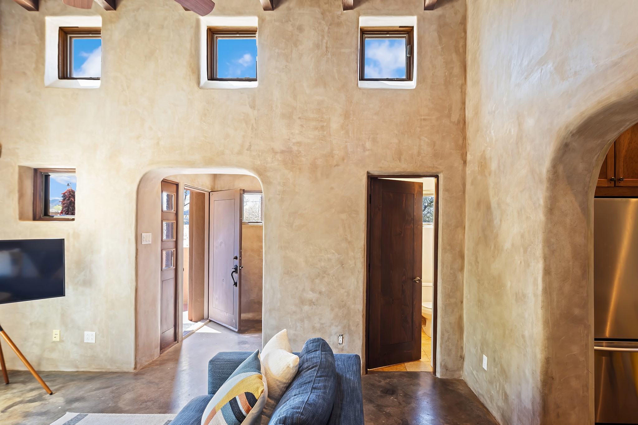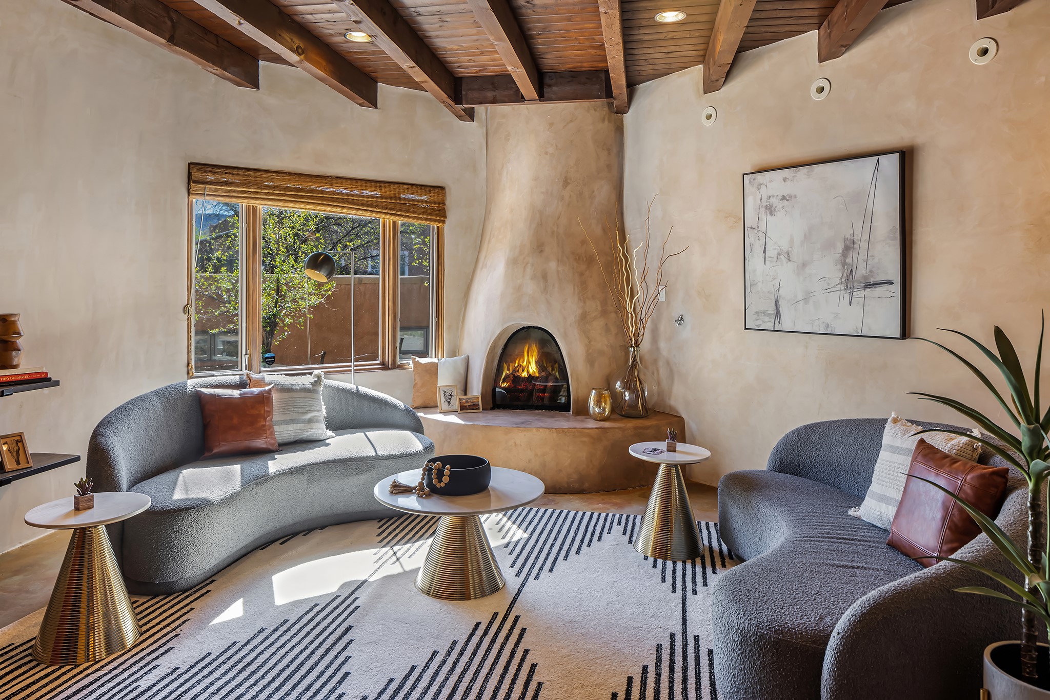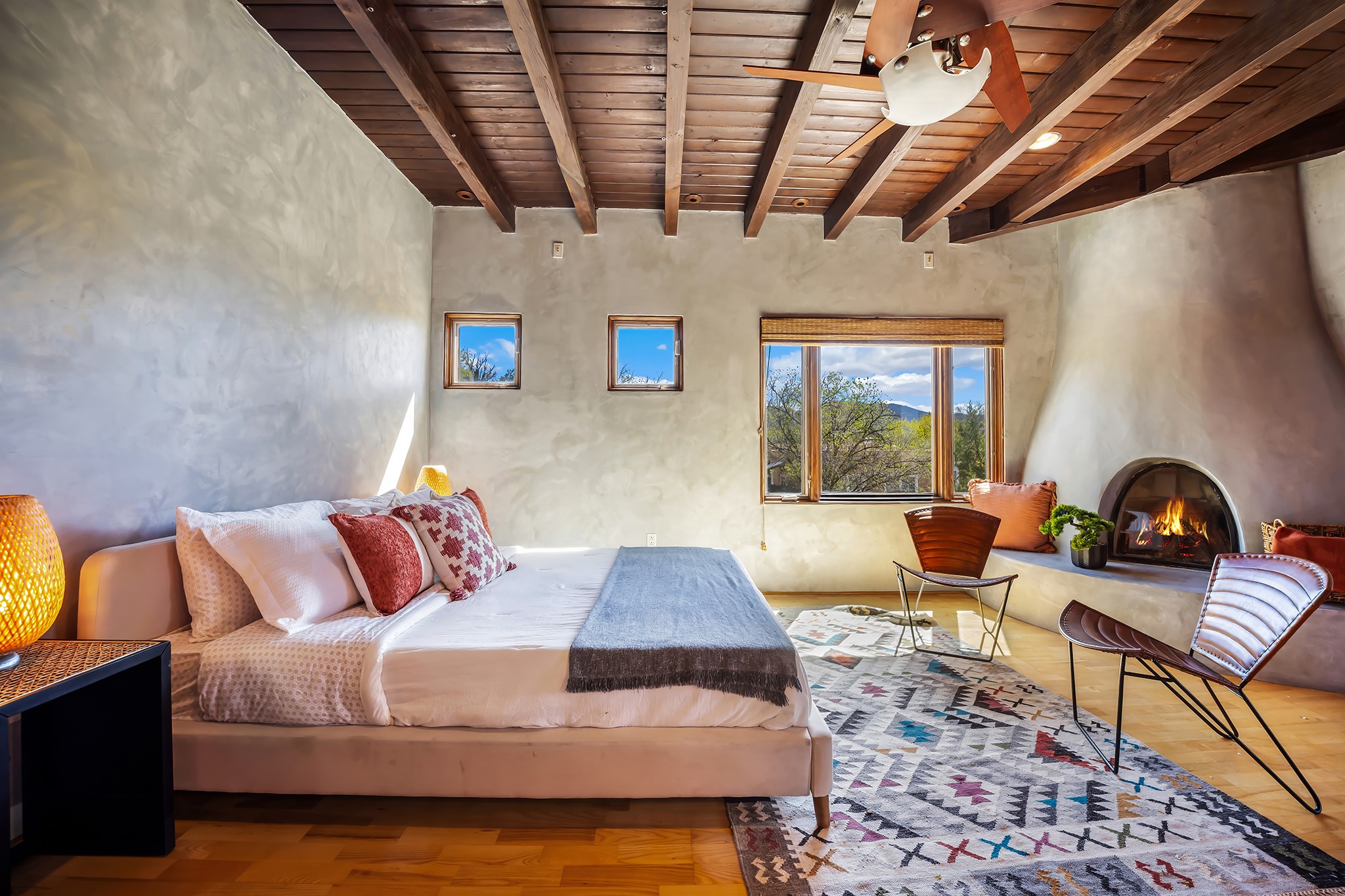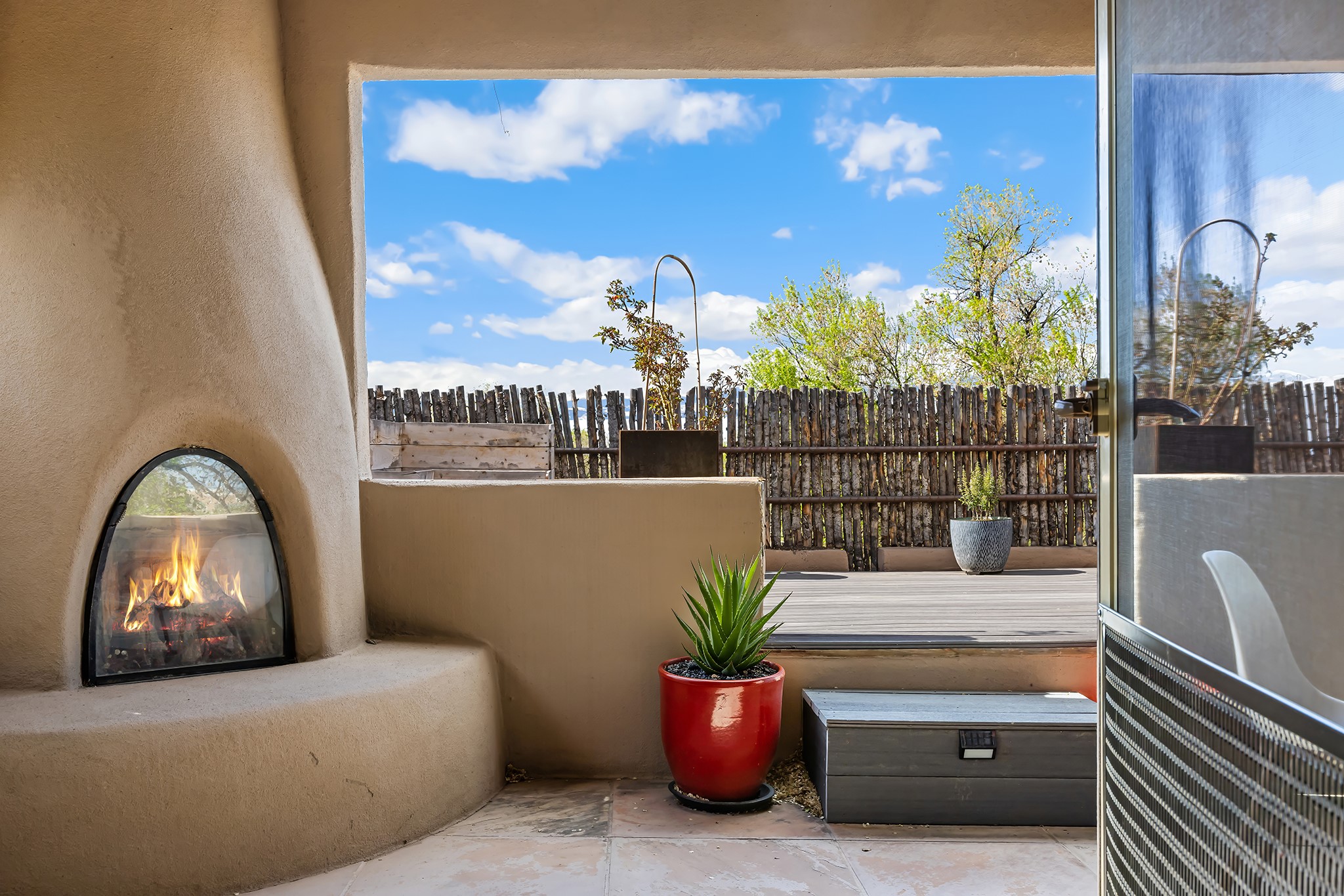 Rarely does a Downtown Santa Fe compound offer this level of versatility, character, and convenience. Just moments from the Historic Santa Fe Plaza, this exceptional property includes a 3-bedroom, 3-bath main residence, an attached 2-bedroom, 2-bath casita, and a coveted 2-car garage with oversized storage space -- a true luxury in the downtown area. The main residence offers a contemporary Pueblo feel with stained concrete floors, kiva fireplaces, and all bedrooms upstairs. A spacious, partially covered view deck with mountain vistas, city lights, sunset skies, and gardening beds creates an ideal setting for entertaining or unwinding. The separately metered casita, with high ceilings and generous space, is perfect for guests, extended family, or rental income. Close to renowned restaurants, art galleries, and boutique shopping, this rare in-town property is well suited as a primary residence, second home, or investment opportunity. Potential assumable financing with a 3.5% interest rate further enhances the offering.