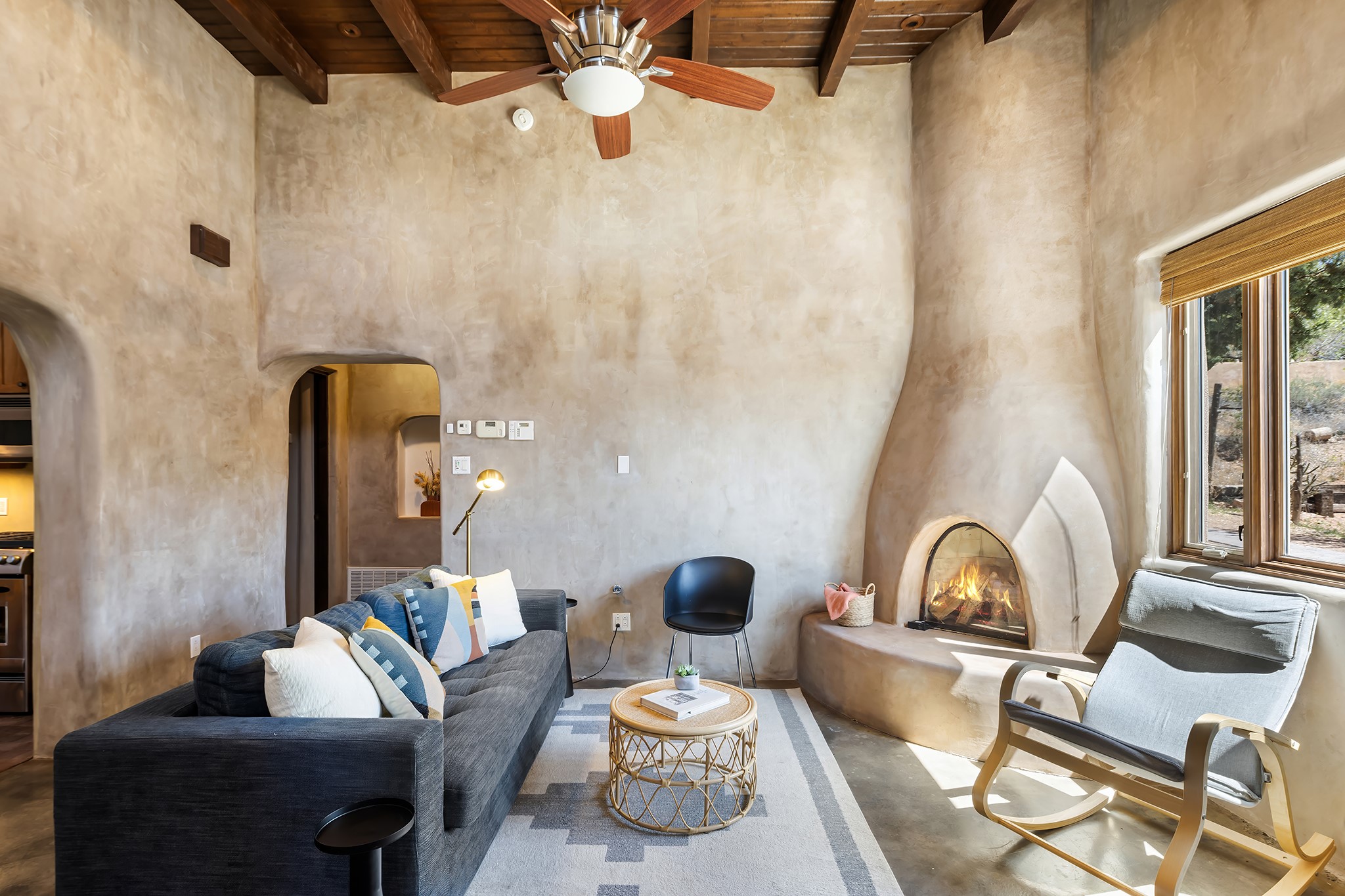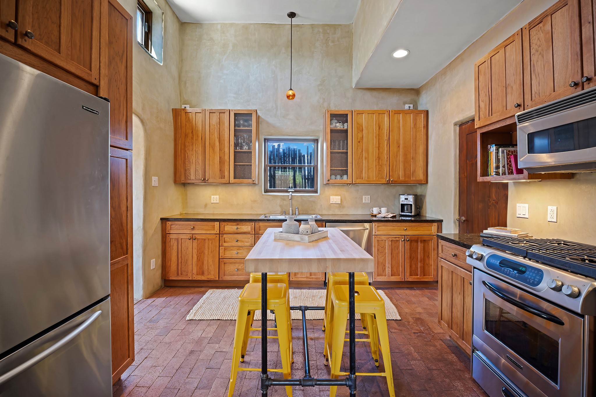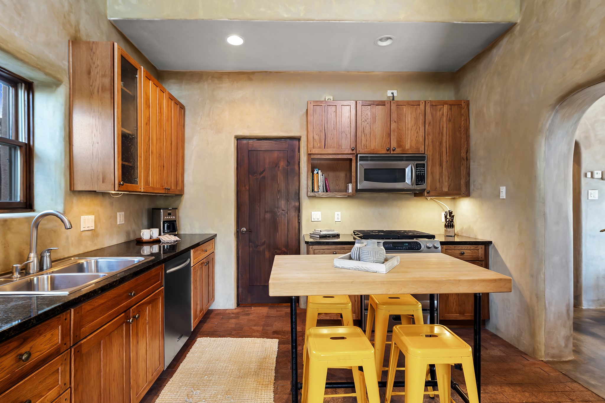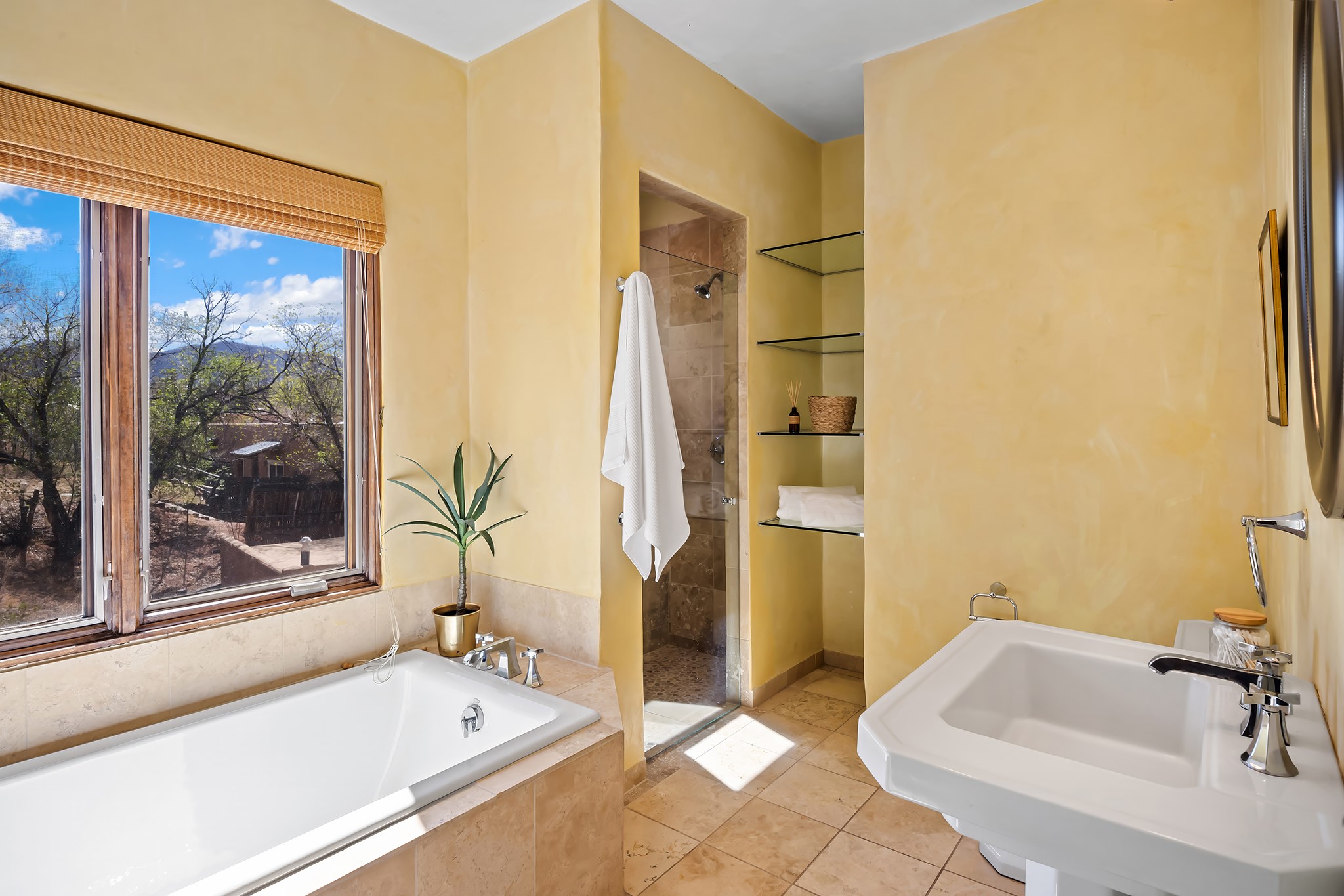 Rarely does a Downtown Santa Fe compound offer this level of versatility, character, and convenience. Just moments from the Historic Santa Fe Plaza, this exceptional property includes a 3-bedroom, 3-bath main residence, an attached 2-bedroom, 2-bath casita, and a coveted 2-car garage with oversized storage space -- a true luxury in the downtown area. The main residence offers a contemporary Pueblo feel with stained concrete floors, kiva fireplaces, and all bedrooms upstairs. A spacious, partially covered view deck with mountain vistas, city lights, sunset skies, and gardening beds creates an ideal setting for entertaining or unwinding. The separately metered casita, with high ceilings and generous space, is perfect for guests, extended family, or rental income. Close to renowned restaurants, art galleries, and boutique shopping, this rare in-town property is well suited as a primary residence, second home, or investment opportunity. Potential assumable financing with a 3.5% interest rate further enhances the offering.