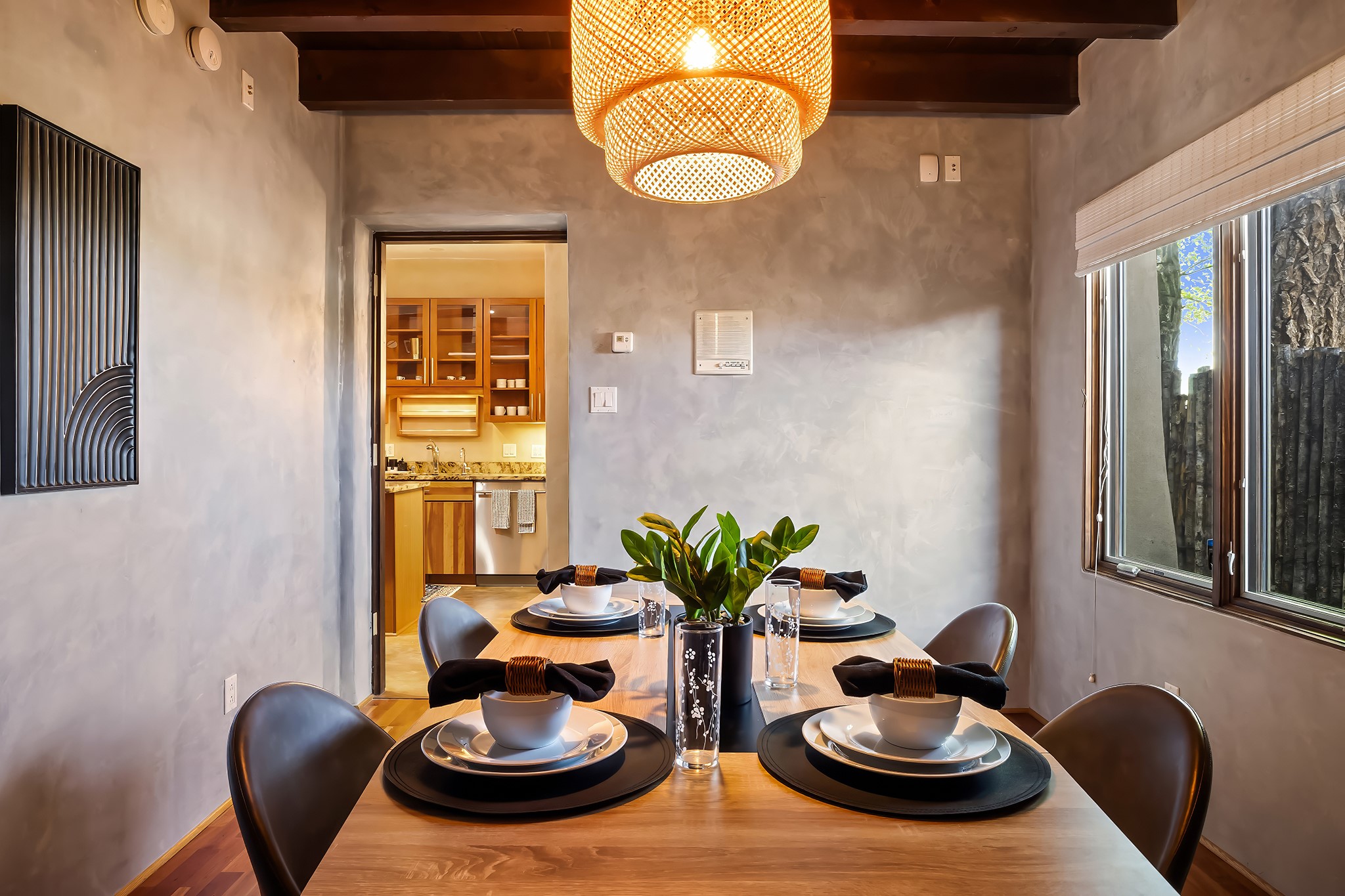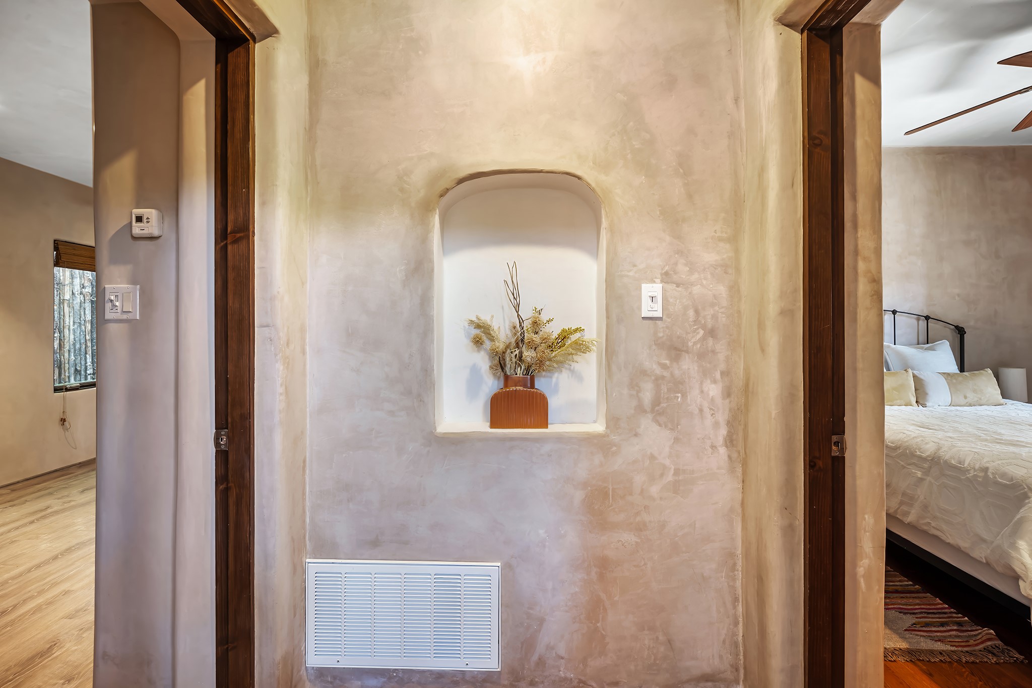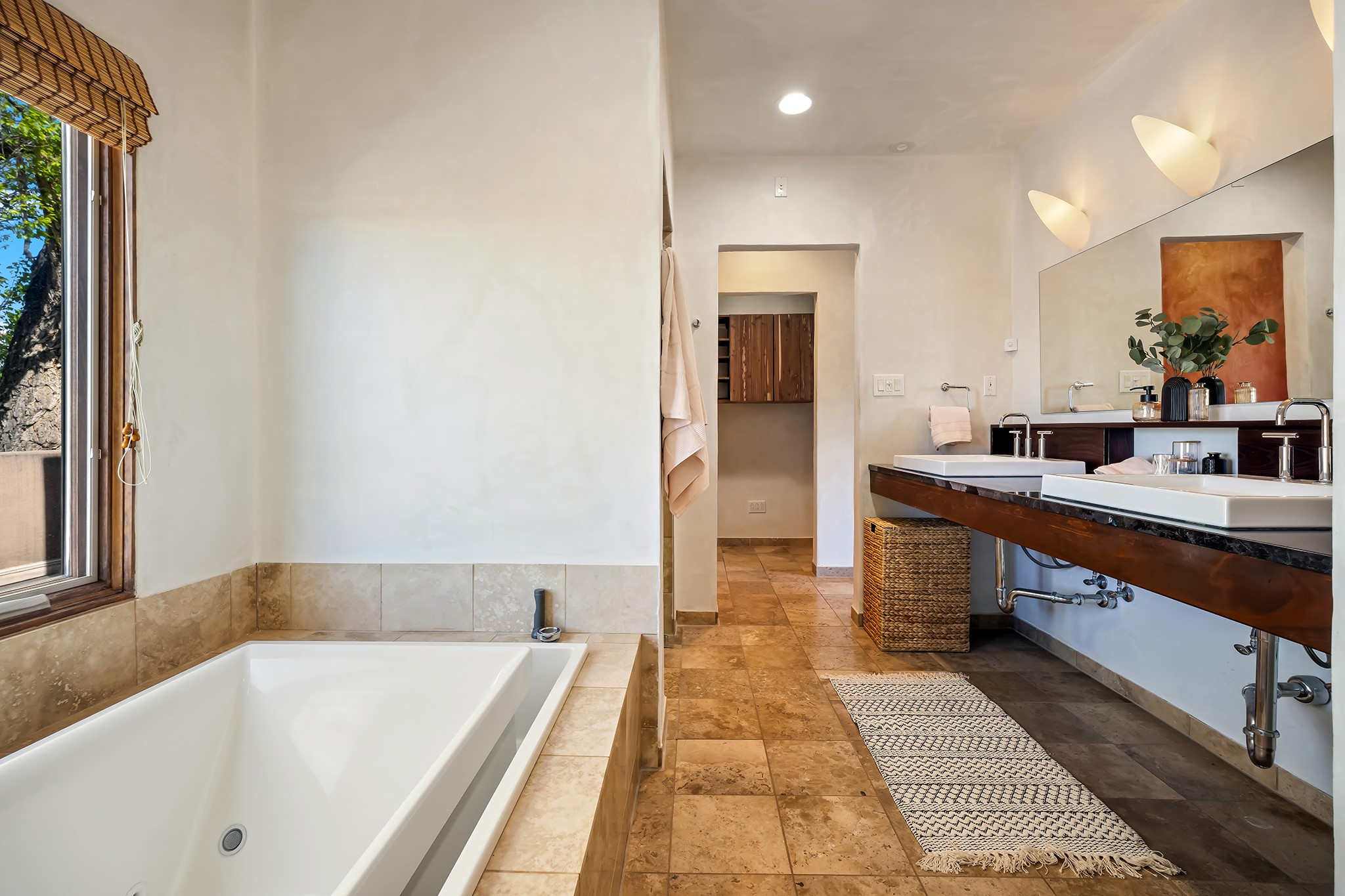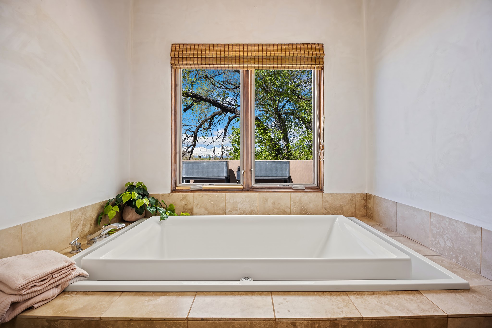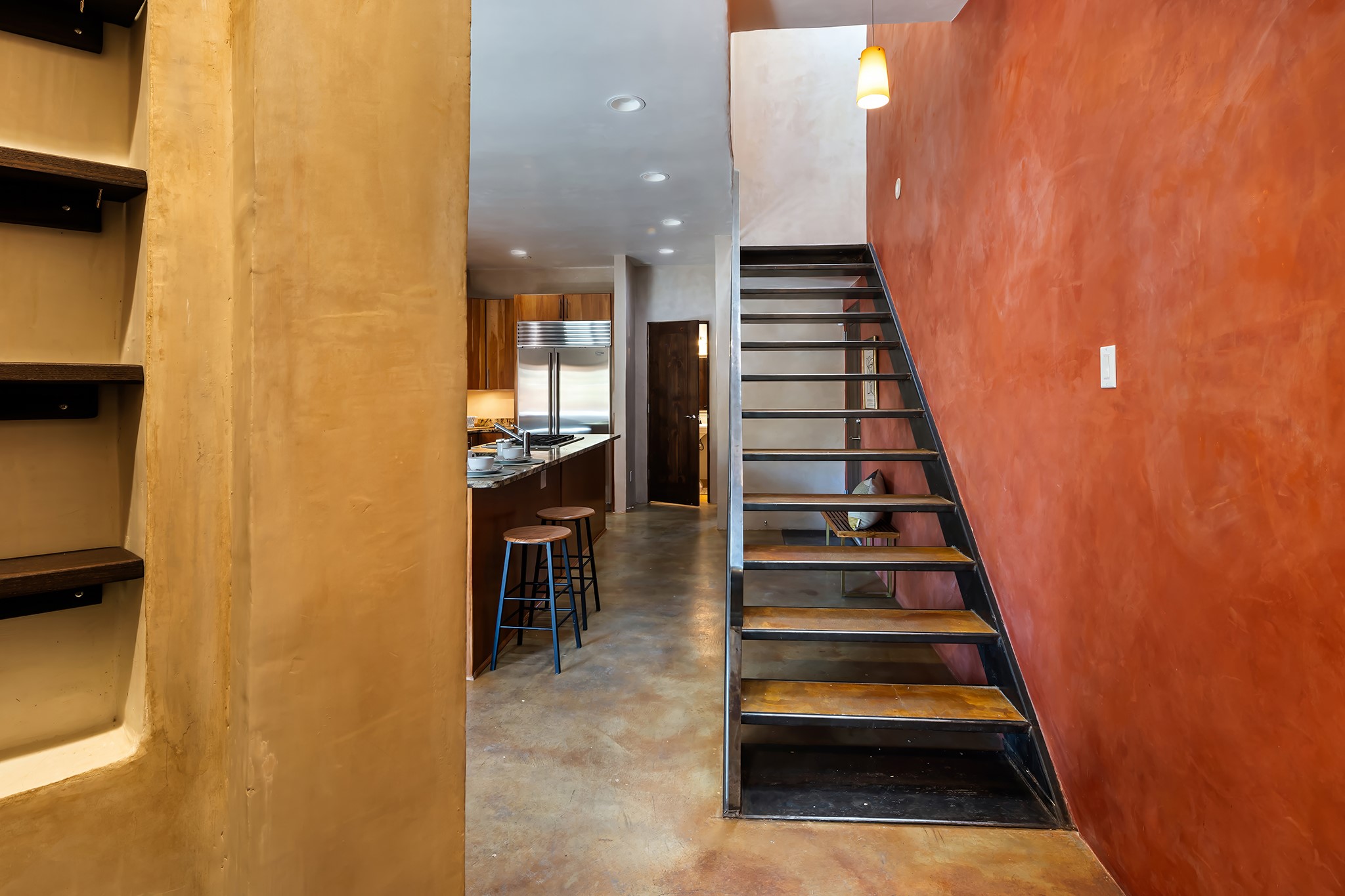 Rarely does a Downtown Santa Fe compound offer this level of versatility, character, and convenience. Just moments from the Historic Santa Fe Plaza, this exceptional property includes a 3-bedroom, 3-bath main residence, an attached 2-bedroom, 2-bath casita, and a coveted 2-car garage with oversized storage space -- a true luxury in the downtown area. The main residence offers a contemporary Pueblo feel with stained concrete floors, kiva fireplaces, and all bedrooms upstairs. A spacious, partially covered view deck with mountain vistas, city lights, sunset skies, and gardening beds creates an ideal setting for entertaining or unwinding. The separately metered casita, with high ceilings and generous space, is perfect for guests, extended family, or rental income. Close to renowned restaurants, art galleries, and boutique shopping, this rare in-town property is well suited as a primary residence, second home, or investment opportunity. Potential assumable financing with a 3.5% interest rate further enhances the offering.