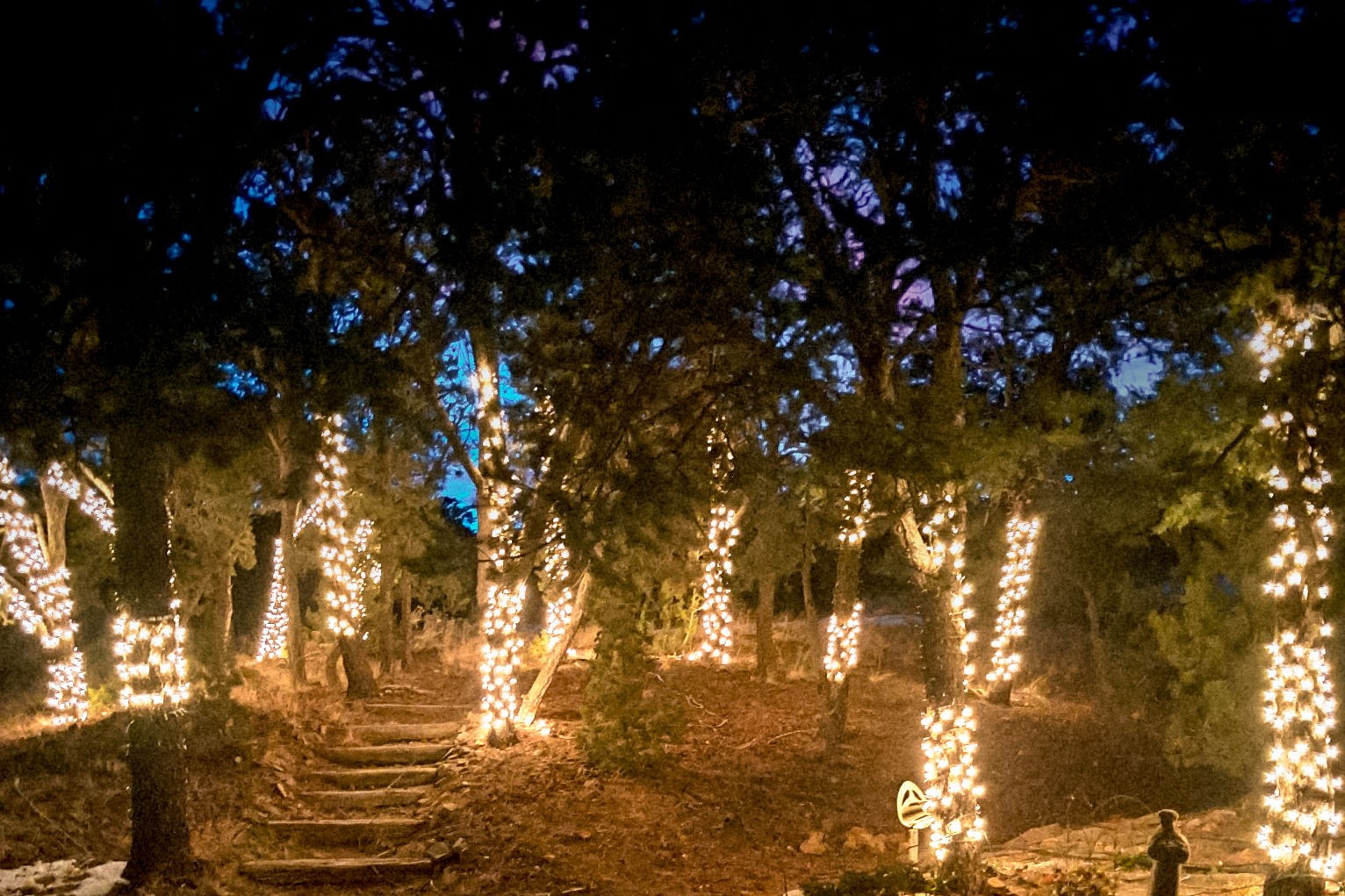 Light and Sky - where Santa Fe light meets endless sky, this enchanting 3 BR / 2BA single-level home reveals itself with effortless elegance. Set on apx 2.14 acres and offering apx 2,600 sqft of luminous living, it is a sanctuary of quiet refinement - rooms that welcome the day, frame the horizon, and inspire reflection and imagination. Warm and gracious, this home was designed to be lived in, admired, and remembered. Expansive windows and skylights draw abundant sunlight inward, illuminating blonde wood floors and interiors anchored by a sculptural stacked-stone fireplace. The living spaces embrace light and landscape with subtlety and sophistication, offering a calm serenity while effortlessly accommodating small and large gatherings. Outdoors, a generous entertaining deck extends the living space beneath vast skies. A manicured grass lawn, mature trees, and thoughtfully planted gardens create a private setting. There are abundant pinon trees, aspens, Japanese maples, and fruit trees, including apricot, pear, and apple. Also, annuals and perennials of Shasta daisies, hollyhocks, cosmos, iris, morning glories, a variety of roses and Russian sage. An ancillary structure provides for versatility - ideal as a private office, yoga or fitness studio, artist's atelier, or intimate library. An efficient HVAC system provides comfort year-round for heat and refrigerated air-conditioning. There is also an attached two-car garage. Moments from Harry's Roadhouse, El Gancho, nearby amenities and shopping with easy access to I-25, the home offers serene privacy while remaining effortlessly suited for entertaining. More than a residence, this is a home of quiet distinction, reflecting a lifestyle of beauty and serenity.
