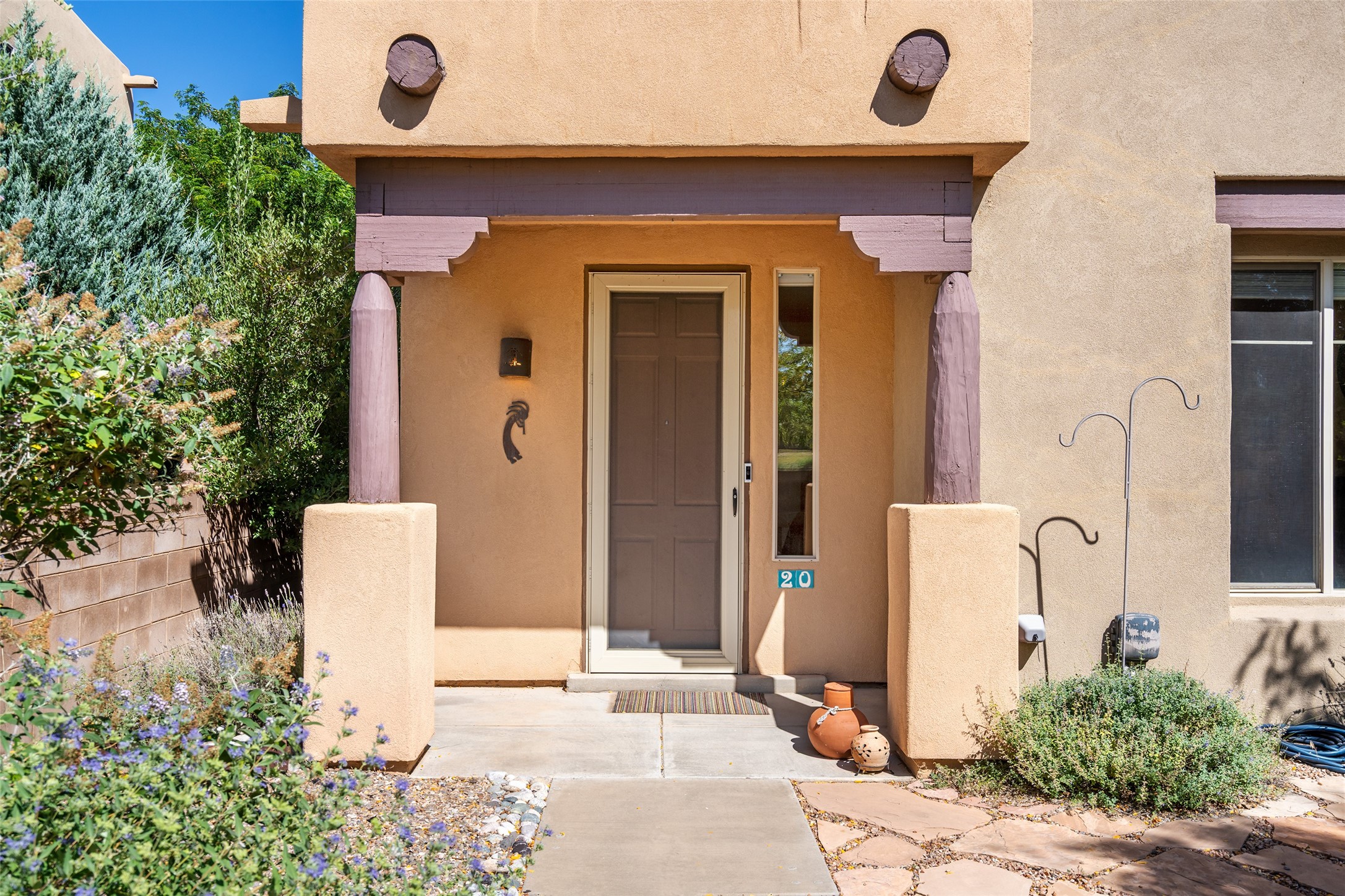 So lightly lived in, you'll be amazed at its pristine condition! Plus, a brand new heating and cooling HVAC system just installed! Located in the desirable Windmill Ridge area of Rancho Viejo, this turn-key property is ideal for full-time living or as a low-maintenance lock-and-leave aided by a smart thermostat Ecobee which is accessible through a smart phone. The main living area features beautiful tile floors and a soaring 20-foot ceiling, creating an open and expansive feel. A charming gas kiva fireplace, vigas, and wood ceilings add authentic Santa Fe warmth. The kitchen offers generous storage within maple cabinetry, complemented by soft neutral-toned tile countertops. A convenient laundry room and powder bath are located on the main level. Upstairs, a versatile loft provides the perfect space for a home office, media area, or reading nook, complete with a small balcony overlooking southern views and the neighborhood park. The primary suite boasts its own spacious balcony with sweeping views of designated open space and both the Jemez and Sangre de Cristo mountains. This immaculate home is part of a welcoming community featuring over 12 miles of paved walking trails, multiple parks, and an active HOA. Exterior maintenance is included in the townhome dues, making for stress-free living. Priced to sell and ready for its next owner!