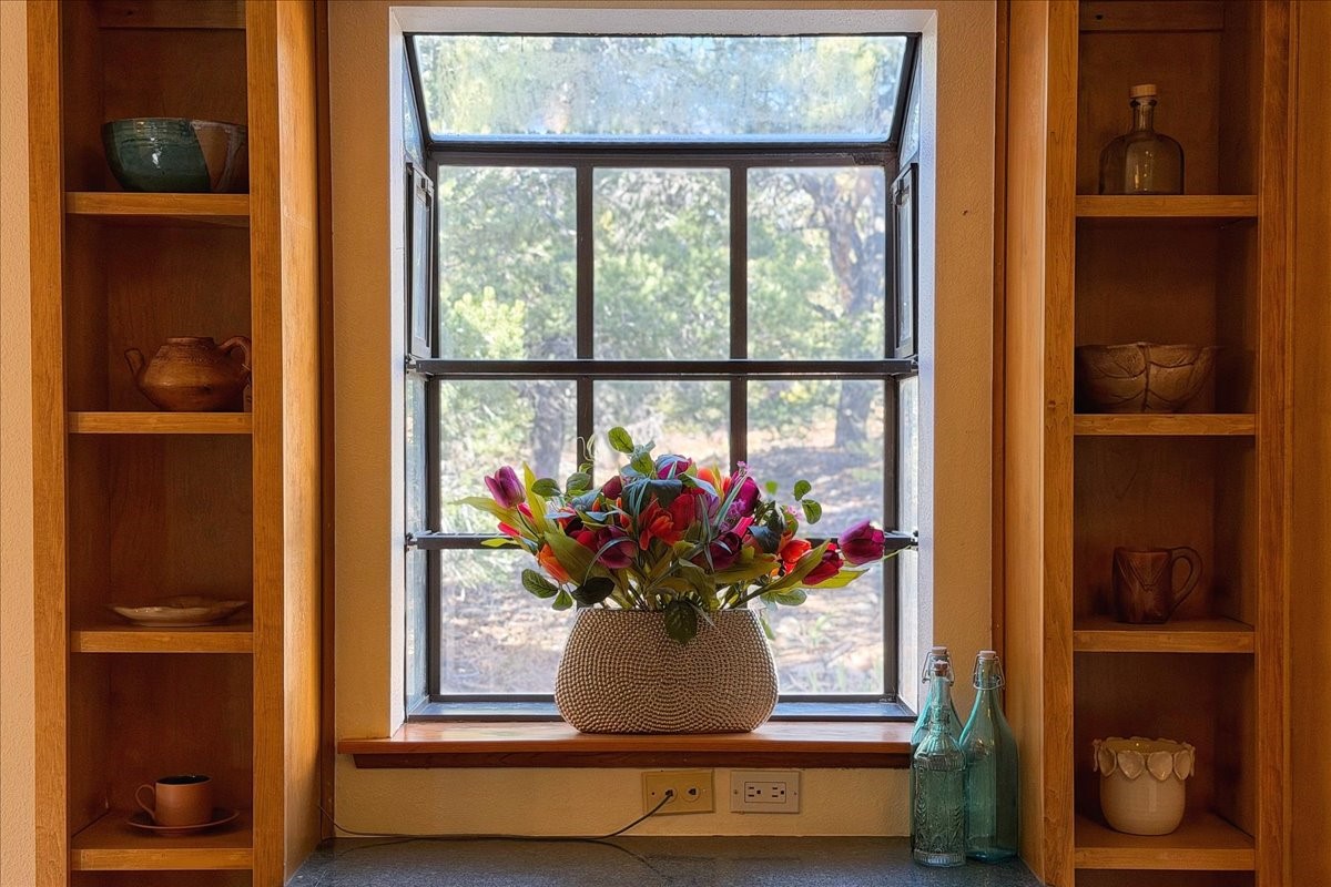 Custom-built by its one and only owner, this thoughtfully designed Santa Fe home offers privacy, efficiency, and a deep connection to nature on approximately 2.48 acres with forest views and hiking access right out the back door--yet a mere 15-MIN drive to the Santa Fe Plaza.The home was intentionally designed for passive solar living and also features solar panels that have eliminated electric bills since being installed, delivering comfort with long-term efficiency. Major value upgrades are already complete, including a brand new TPO roof, new skylights, and a new Navien dual heating system--the big-ticket improvements buyers are relieved to have behind them.Outdoor living is enhanced by a thoughtfully designed water feature that feeds into a small pond, creating a soothing backdrop enjoyed from both the covered patio and the deck off the primary bedroom, all overlooking a serene forest setting. Inside, the home offers 4 bedrooms, 3 bathrooms, and 2,261 square feet of living space, including a welcoming living room with a wood-burning fireplace, a dining room, kitchen with breakfast nook, and a standout sunroom that previously housed a hot tub--a bright, plant-friendly space ideal for relaxing or reimagining.The sellers observed over 50 species of birds throughout the year, underscoring the home's connection to its surroundings. Quiet, private, and thoughtfully built, this is a property where the fundamentals are done--leaving the next owner free to personalize and make it their own.