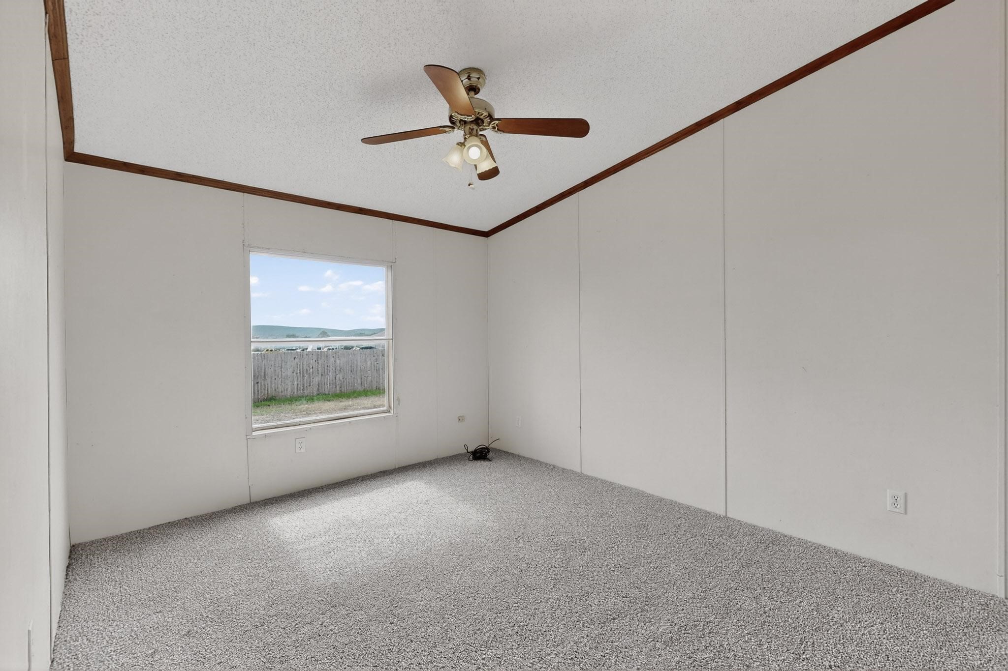 Well-maintained mobile home on a spacious lot in Las Vegas, NM, offering beautiful views of Hermit's Peak. The home has been freshly painted and features new carpet, giving it a clean and move-in-ready feel. Inside, you'll find a comfortable layout with plenty of natural light and potential to personalize. The generous lot provides room for outdoor living, gardening, or future improvements. Conveniently located near Storrie Lake State Park, you'll enjoy quick access to fishing, boating, and hiking. A great opportunity for a full-time residence, rental, or weekend getaway in northern New Mexico.