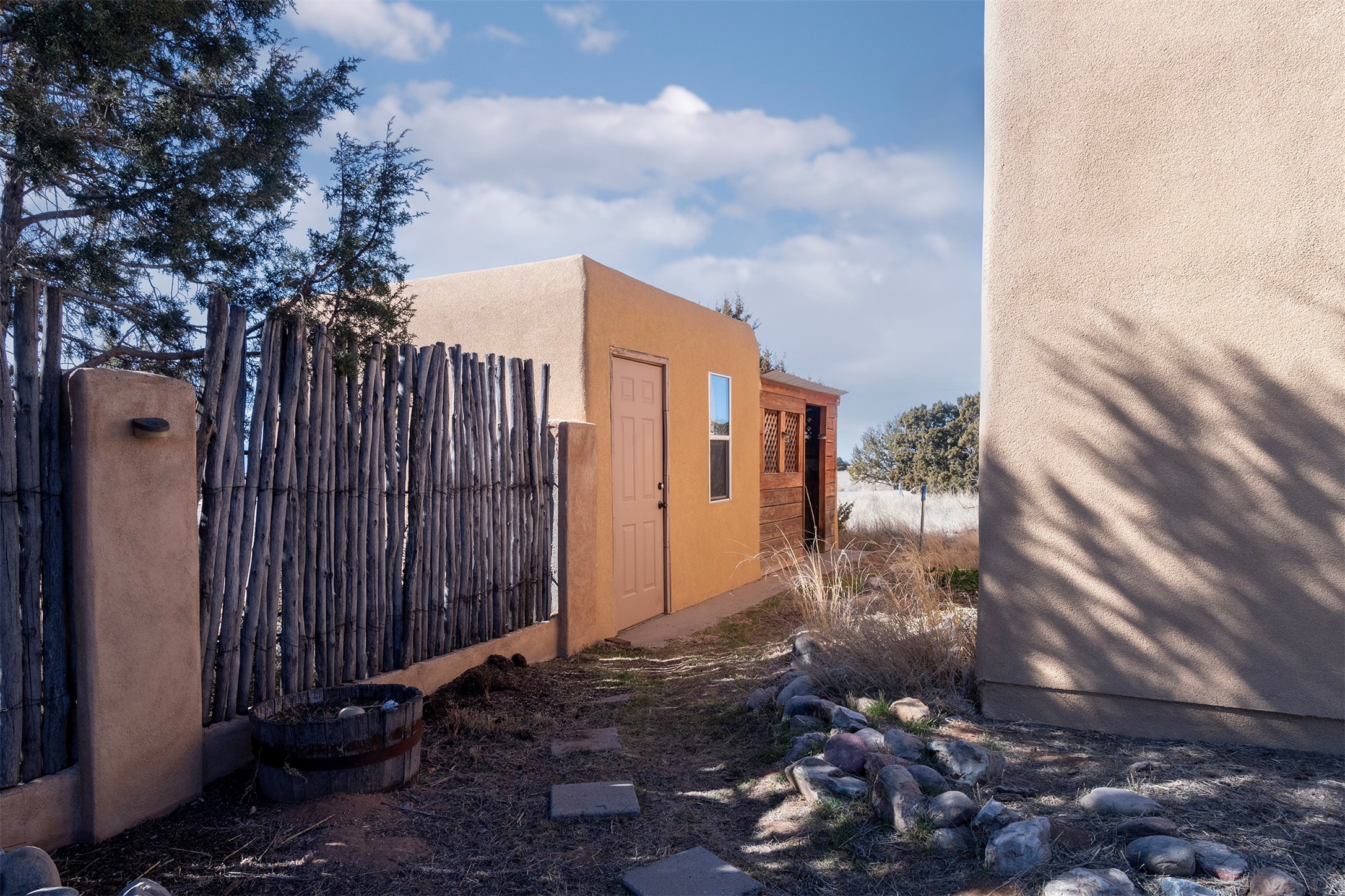 Light filled partially updated three + bedroom, two bath home on 1.4 acres in desirable Eldorado. Great separation of bedrooms, primary has double sink vanity, walk in closet, shower and tub in bathroom as well as a bonus room for office or nursery. The two secondary bedrooms, one with a walk-in closet are on the opposite side of the home and share a hall bath with tub/shower combo. The large bright living area has a wood burning stove, French doors that open to the large portal and yard and high ceilings with clear story windows to allow for additional natural light. The living room is open to the dining room and kitchen with kitchen nook and a sperate laundry room adjacent to the two-car garage. There are two out-buildings tucked off to the side of the home for additional storage. The home has had recent extensive updates including stucco, roof, hot water heater, dishwasher, garage door and more, please see list of improvements under documents for more information.