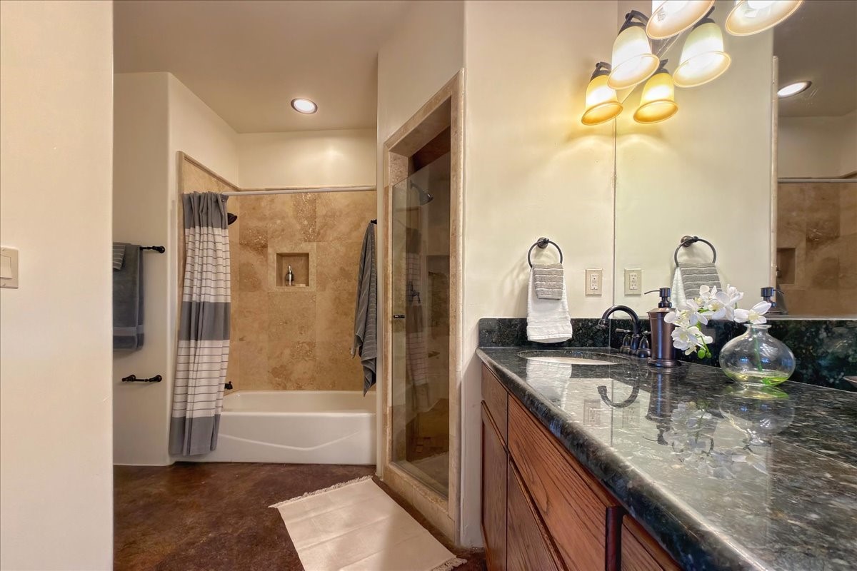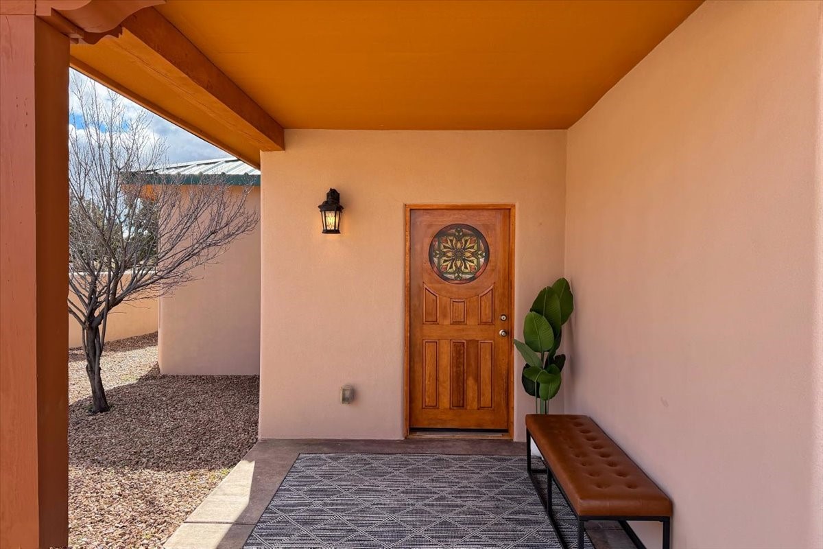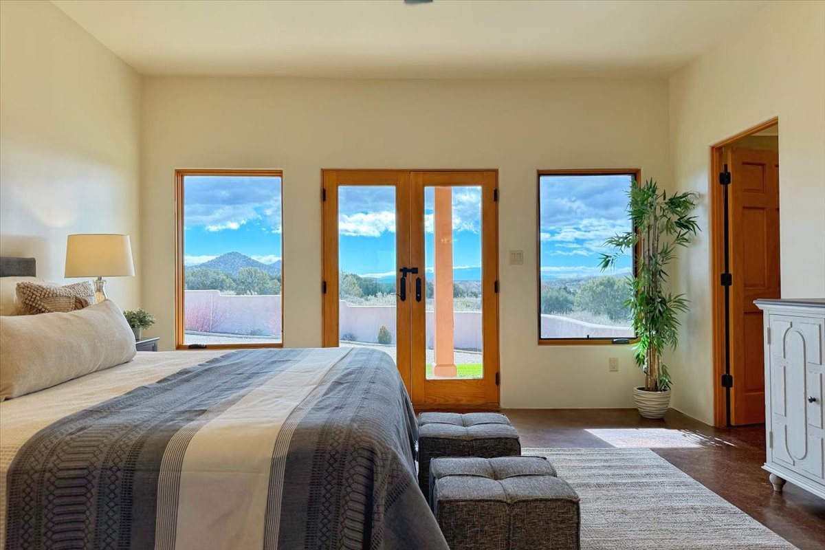 Nestled in the gated community of Las Lagunitas is this beautiful 2-bedroom, 2-full-bath, single-level home with an oversized 2 car garage nestled on 1.42 acres. Freshly painted and move-in ready! Open-concept living, dining, and kitchen featuring granite counters. Abundant natural light throughout. Primary bedroom and kitchen offer unobstructed, far-reaching views. Secondary bedroom flexible as a studio or office space. Landscaped backyard with a full privacy wall and ample space for pets to roam. A lovely patio invites you to enjoy the beautiful New Mexico sunsets. This home combines comfort, style, and convenience! Easy access to I-25 & NM-599.