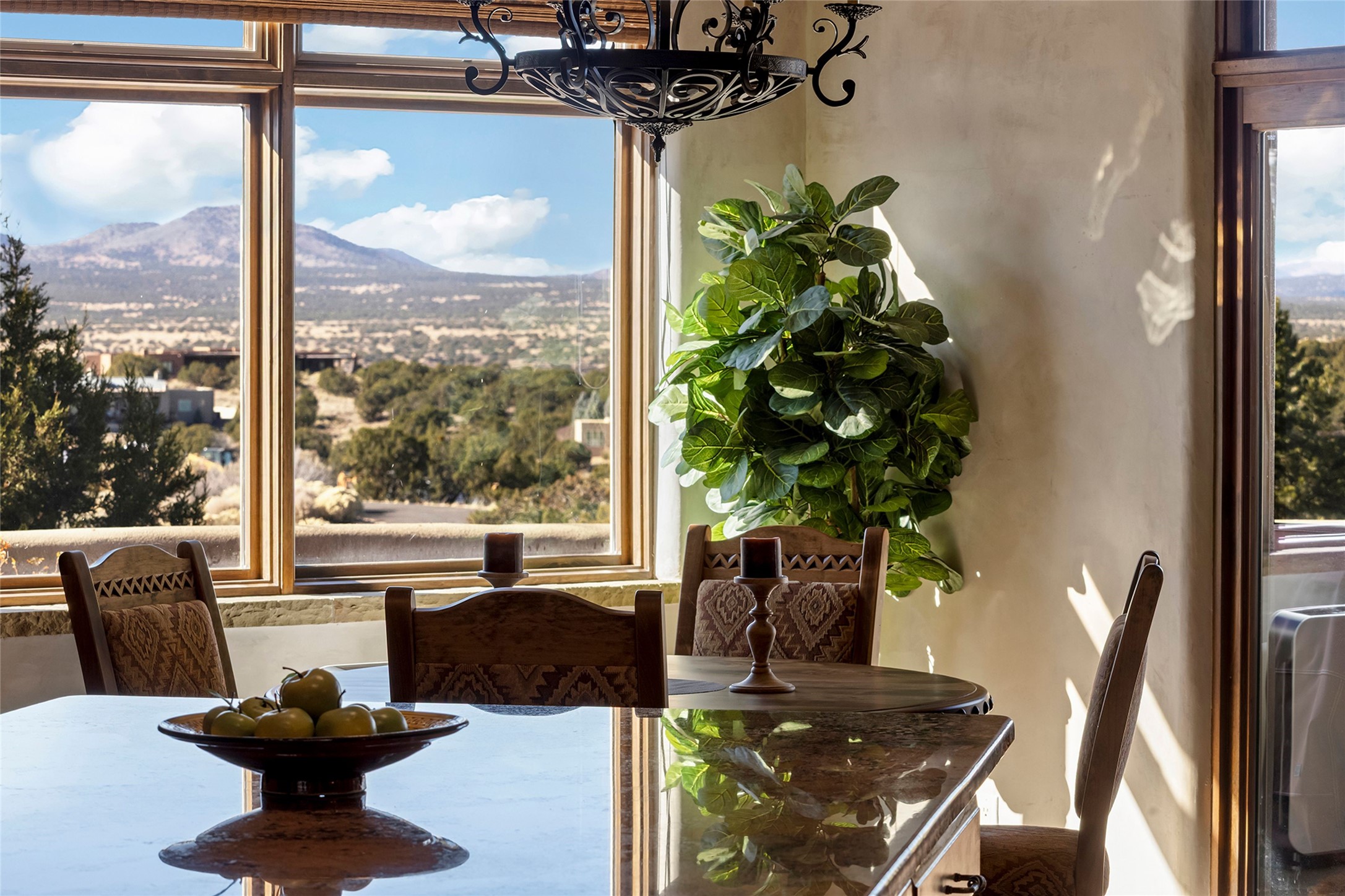 Perched on an elevated lot in Las Campanas, this captivating Santa Fe home celebrates the true essence of high-desert living with panoramic Jemez Mountain and sunset views. Located within the famed community of Las Campanas, 39 Calle Mi Gusto masterfully blends iconic Santa Fe architecture with an open-concept layout designed for seamless indoor-outdoor entertaining. Ideal as a primary residence or an ideal Santa Fe retreat this quality, single level home with four bedrooms, plus an office or media room, impresses with the finest level craftsmanship, flexible use of space and the ultimate indoor and outdoor living experience. Minutes to The Club at Las Campanas, this privately sited home excites with exceptional design features which include a well-appointed chef's kitchen complete with a large granite island, breakfast bar, Wolf and Sub Zero appliances and direct access to the casual dining area and the formal dining room. At the heart of this home is a spacious living room with elevated ceilings, rich beams, a stately fireplace, stunning sunset and mountain views framed by view windows and outdoor access, in addition to a separate den/media room, or ideal office with custom built-in cabinetry. The private owner's suite delights with its own fireplace, portal access, views and a spa-like bath with a separate jetted tub, shower, dual vanities and walk-in closet. Two guest bedrooms with a shared full bath offer excellent privacy and flexible use of space and the fourth bedroom is located in a separate wing of this home with its own bath, walk-in closet and views. Additional highlights include fully enclosed front and back courtyards which are ideal for entertaining, pets and gardening, single-level living with no interior steps, an oversized 2-car garage and quality, neutral finishes throughout. Most furnishings, the owner's equity golf membership to the Club at Las Campanas and the neighboring vacant lot are all negotiable on a separate bill of sale.