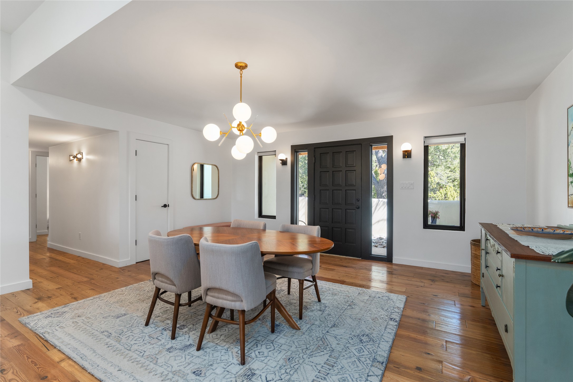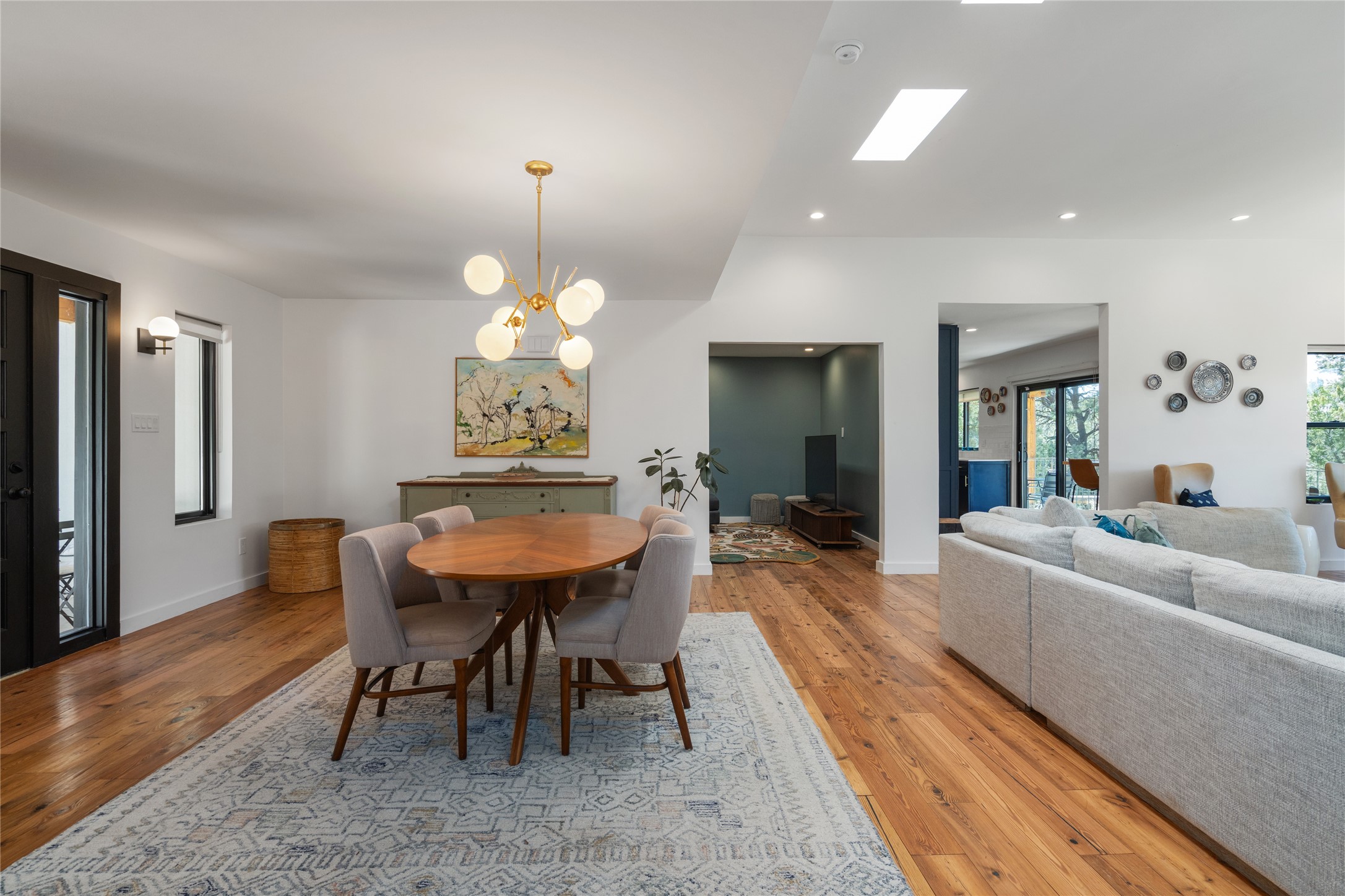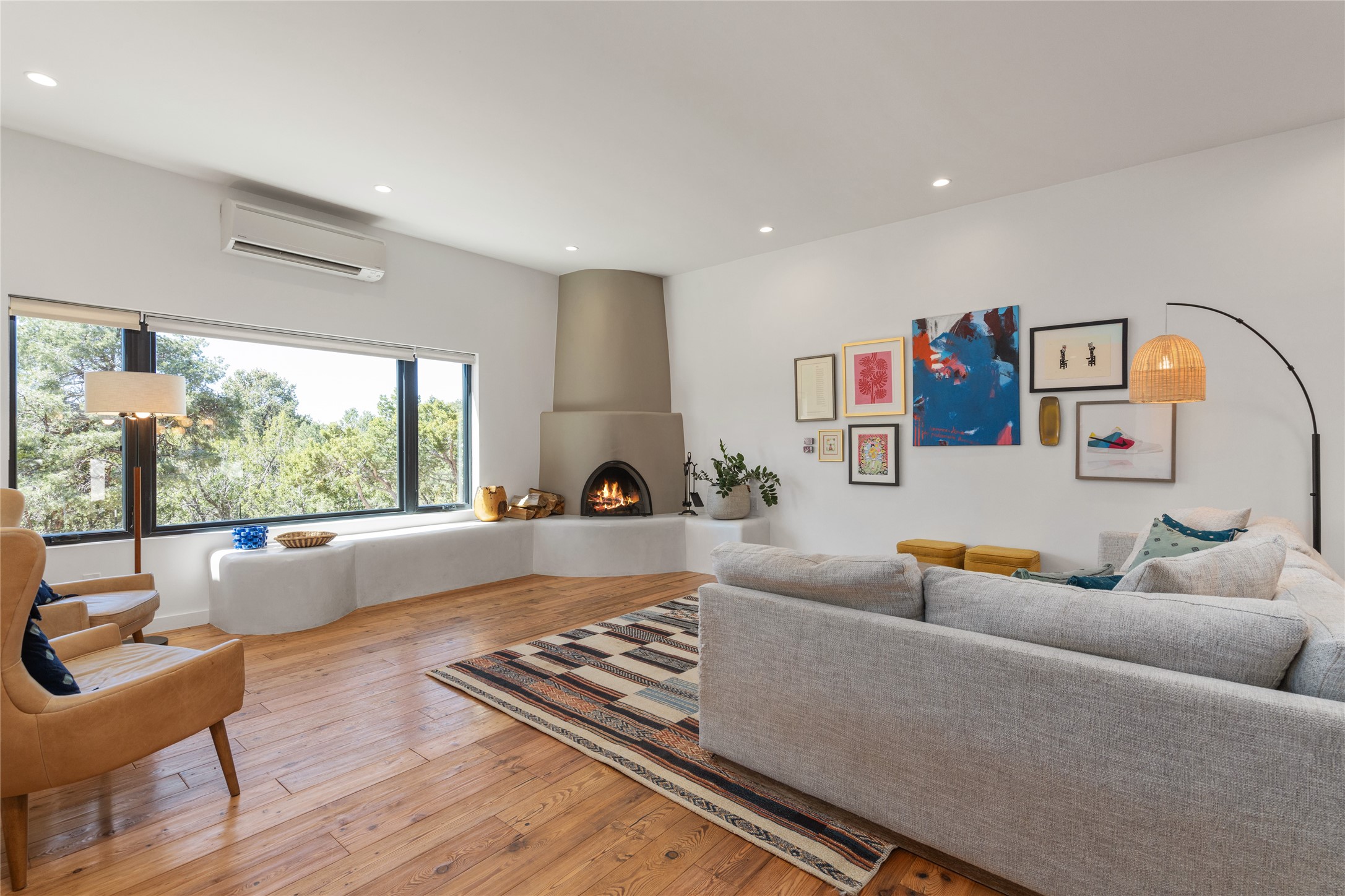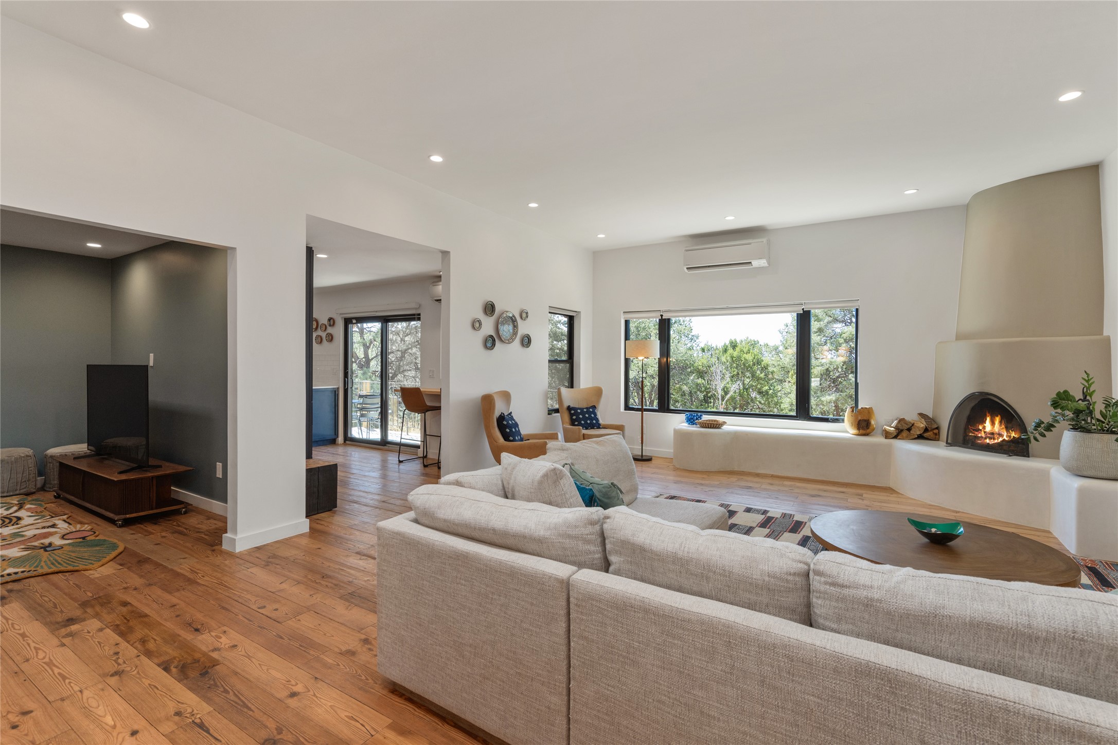 Set among pion and juniper trees in the coveted Hondo Hills neighborhood, this fully remodeled 3-bedroom, 2-bathroom, plus flex space home delivers modern comfort combined with Southwestern character.The interior is light and bright, with smooth plaster walls, rich wood flooring in the main living areas, tile in the bathrooms, and a classic kiva fireplace that anchors the living space beautifully. The updated kitchen opens to a patio perfect for outdoor dining, while a second patio off the primary bedroom offers a quiet personal retreat. A ductless mini-split system ensures efficient, year-round comfort.Every major system was addressed during the remodel in 2021- new windows, roof, and stucco this means the big-ticket items are already taken care of. The 2-car garage adds storage and everyday convenience.Out back, a fully fenced and landscaped yard provides privacy and a sense of place, near Arroyo Hondo hiking trails. A move-in ready home where thoughtful updates meet the beauty of the high desert.