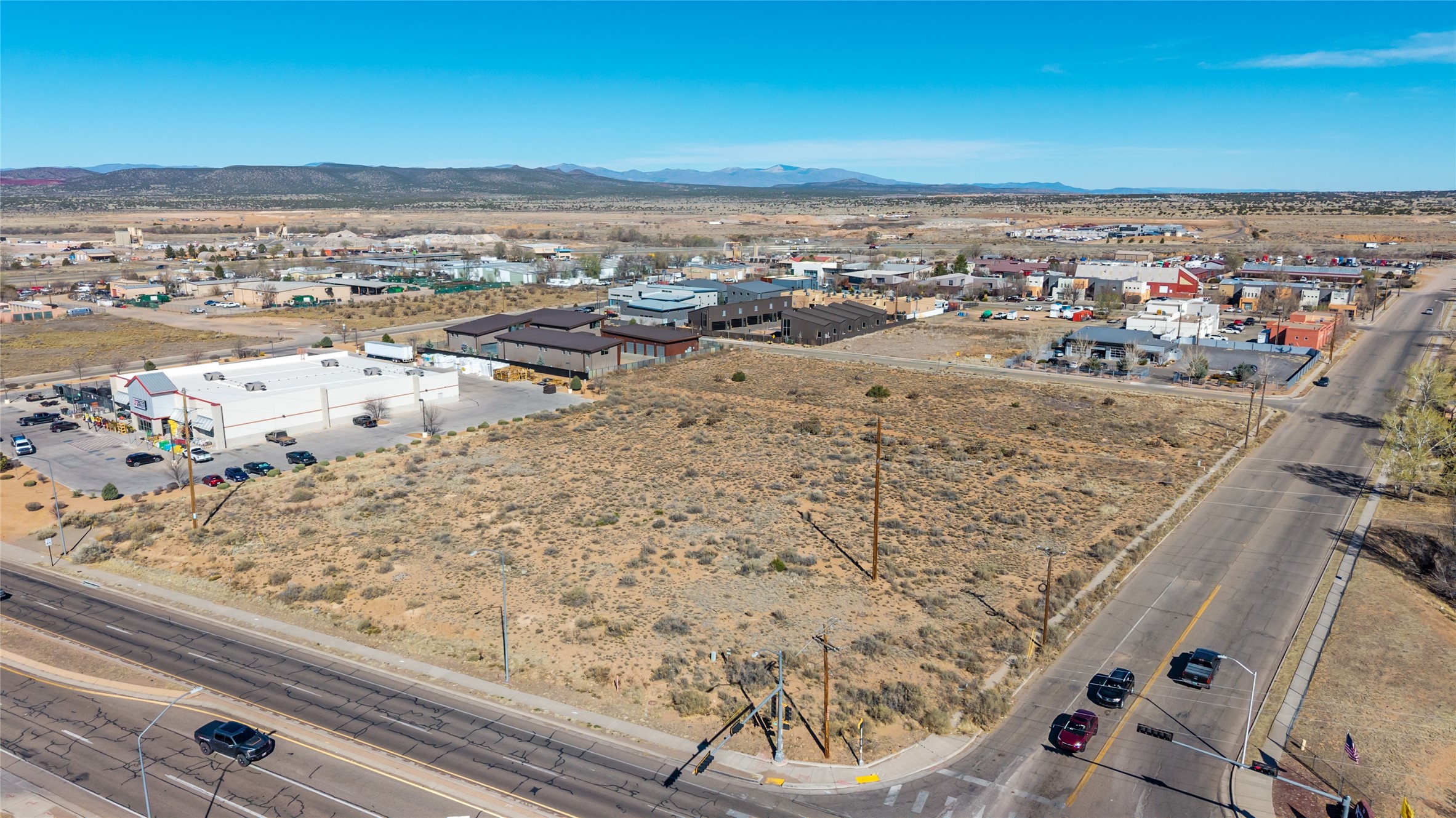 Fantastic industrial-zoned parcel with I-1 zoning in the City of Santa Fe. Ideally located with convenient access to NM-599 and Airport Road, this site offers excellent connectivity for a wide range of business or development opportunities. I-1 zoning is a rarity within Santa Fe and allows for a diverse mix of uses including office-warehouse, light manufacturing, storage, barber and hair salons, food production, and more.The surrounding area is well established and features some of Santa Fe's most architecturally appealing flex-use metal buildings, including luxury car storage facilities, offices, and other commercial uses--creating a strong, design-forward industrial environment. The property offers valuable Airport Road frontage, providing high visibility and exposure. Utilities are nearby for easy tie-in, and the lot is flat, making for a straightforward and cost-efficient development process. The neighborhood is also subject to covenants, helping to maintain quality and cohesion throughout the area.The property can be purchased separately (7504 or 7512 GOONEY BIRD WAY, SANTA FE, NM 87507 & 3900 CONSTELLATION DR, SANTA FE, NM 87507).