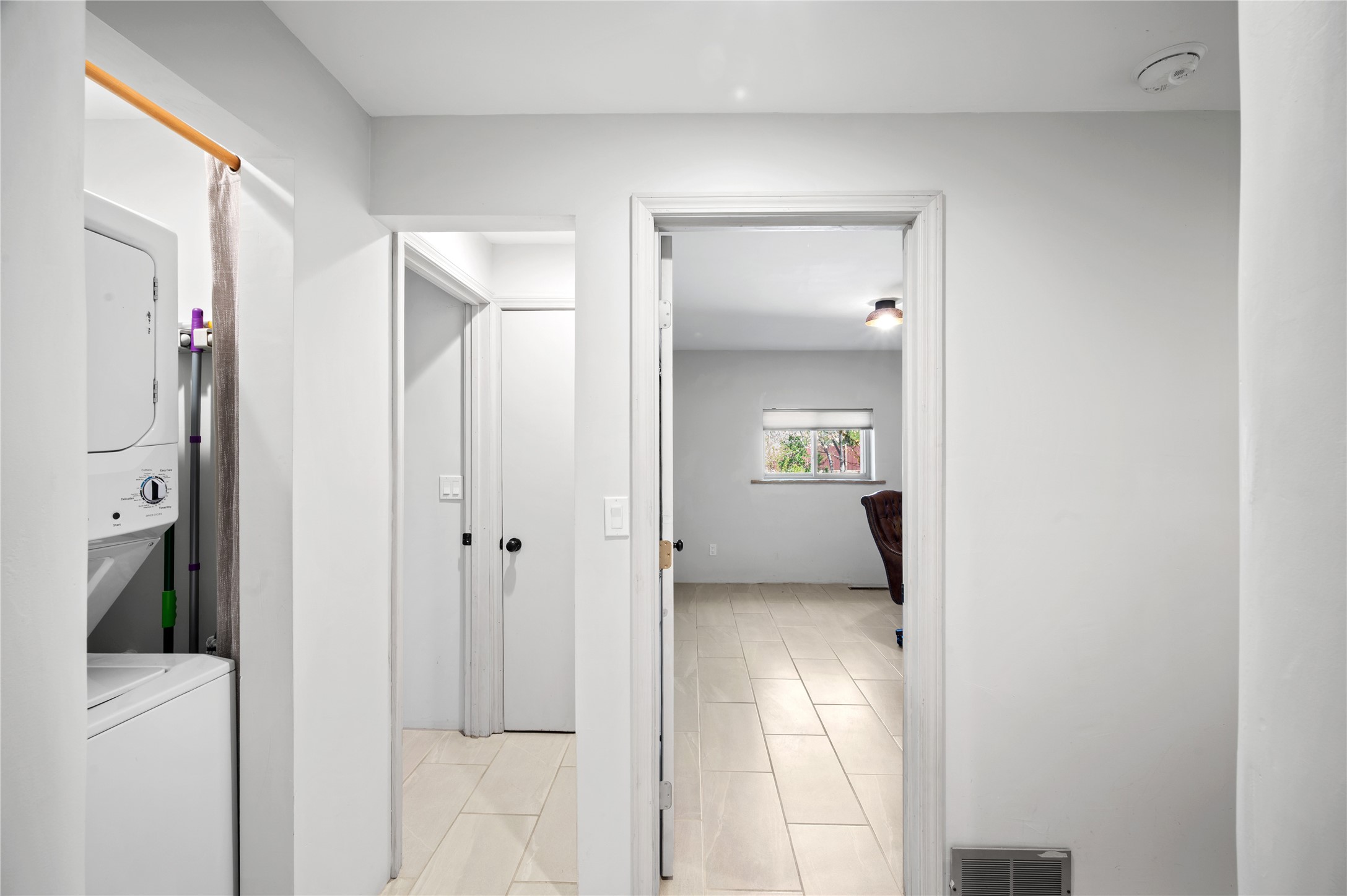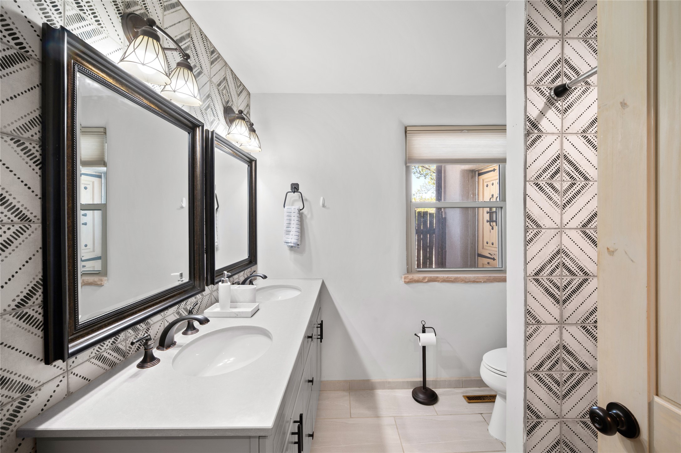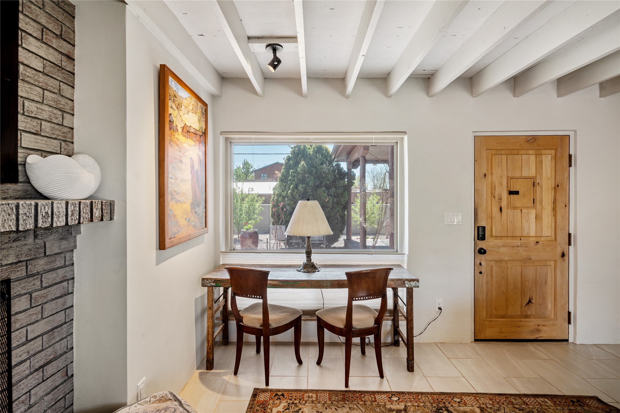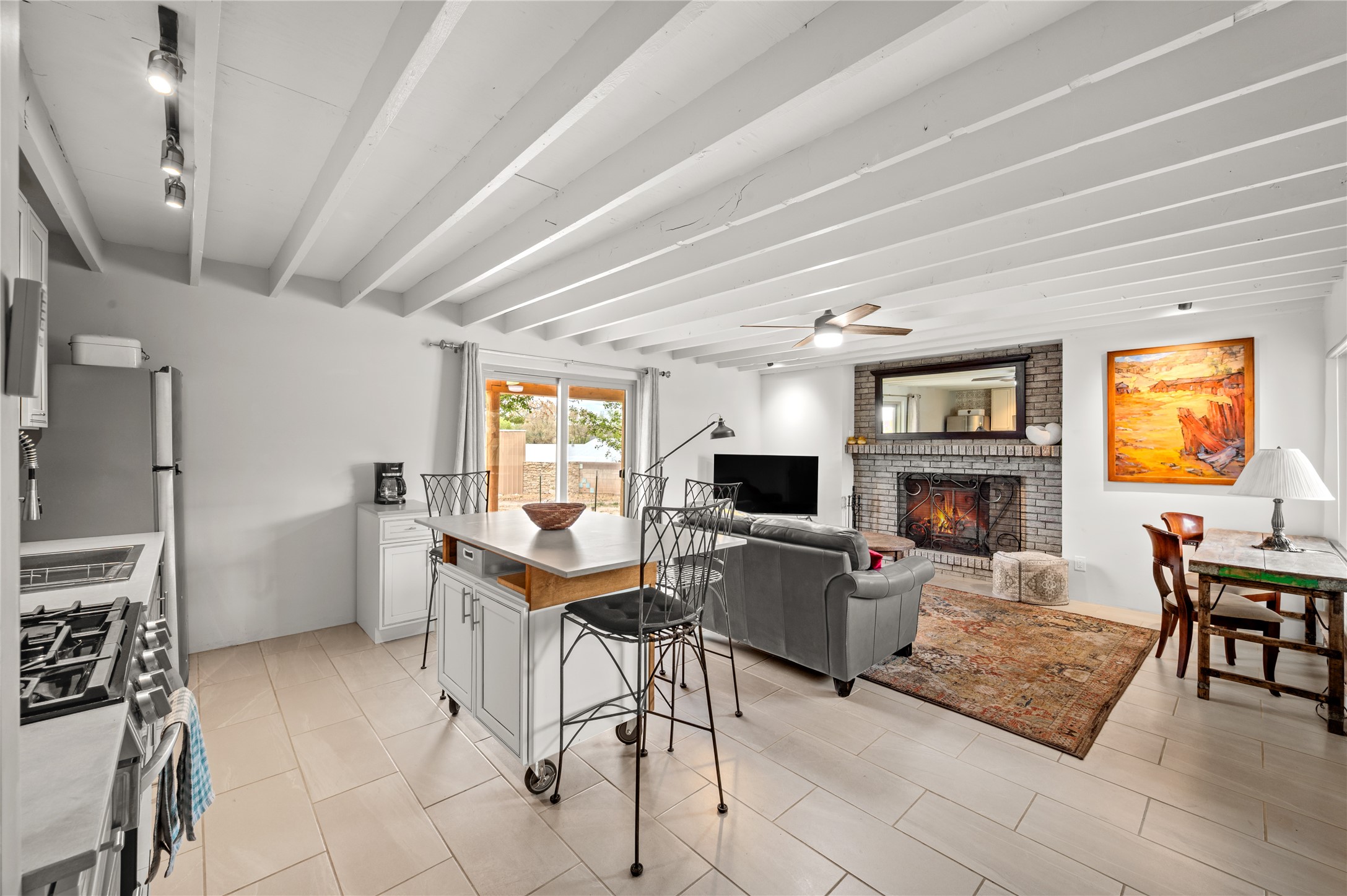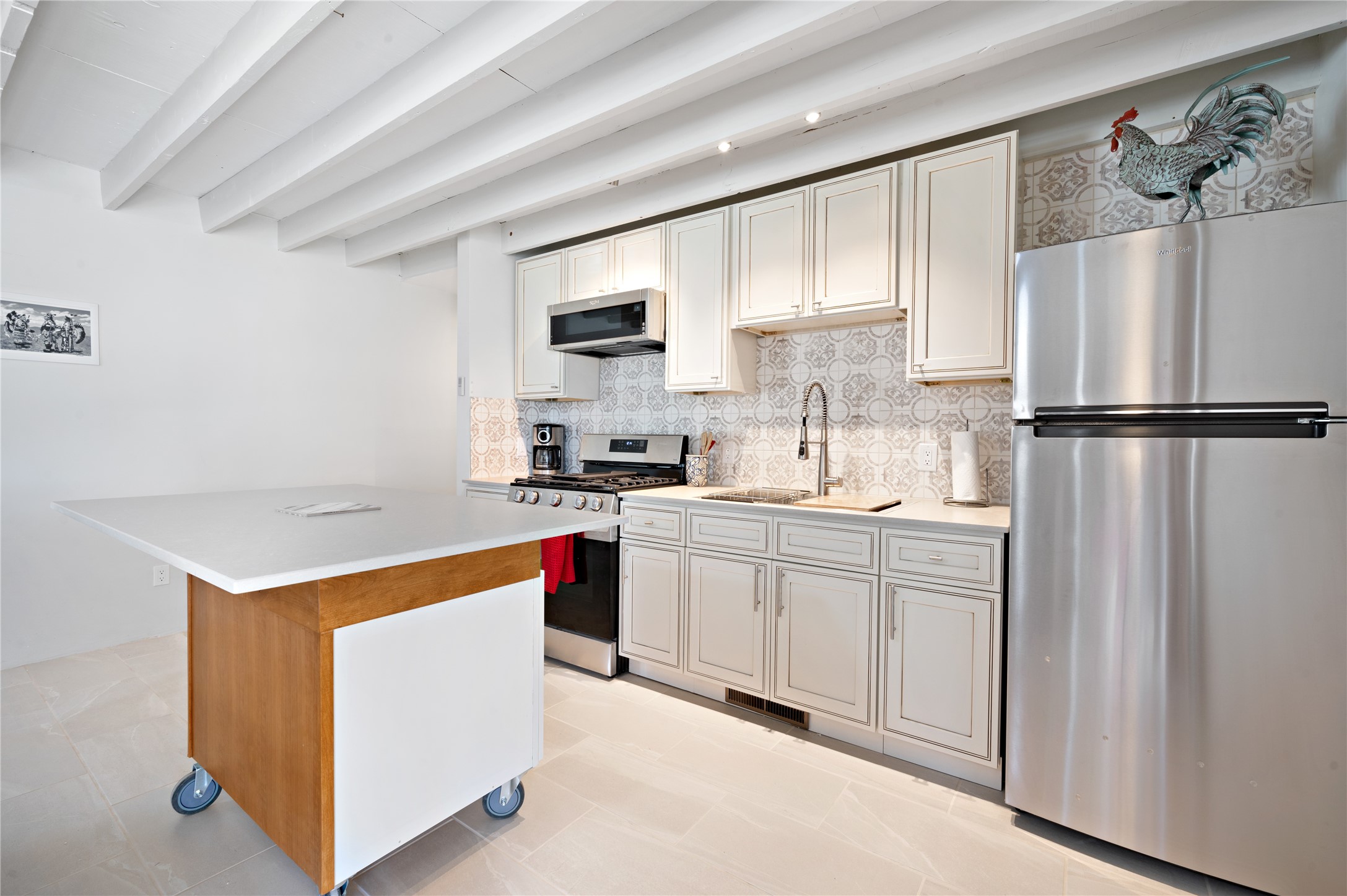 Remodeled with love and options. Single home, second home, duplex, multi generational easily done by opening/closing one interior door. Everything was completely updated 2023 including electric, plumbing, roof, stucco, windows, doors, insulation, 2 new fully equipped kitchens, baths, finishes and landscaping. The lot is large enough for adding a guest house or studio. Other features include privacy walls, abundant parking, edible landscaping like fruit and nut trees, storage, and a partial basement. There is a very good rental history as a furnished duplex. Furniture and amenities are included for a turnkey property. This location is ideal for walking and biking with near by parks, the Santa Fe River trail, restaurants and shops near by and .9 of a mile walk to the railyard for Farmers Market, restaurants, or the movies. Other businesses are within a couple blocks.